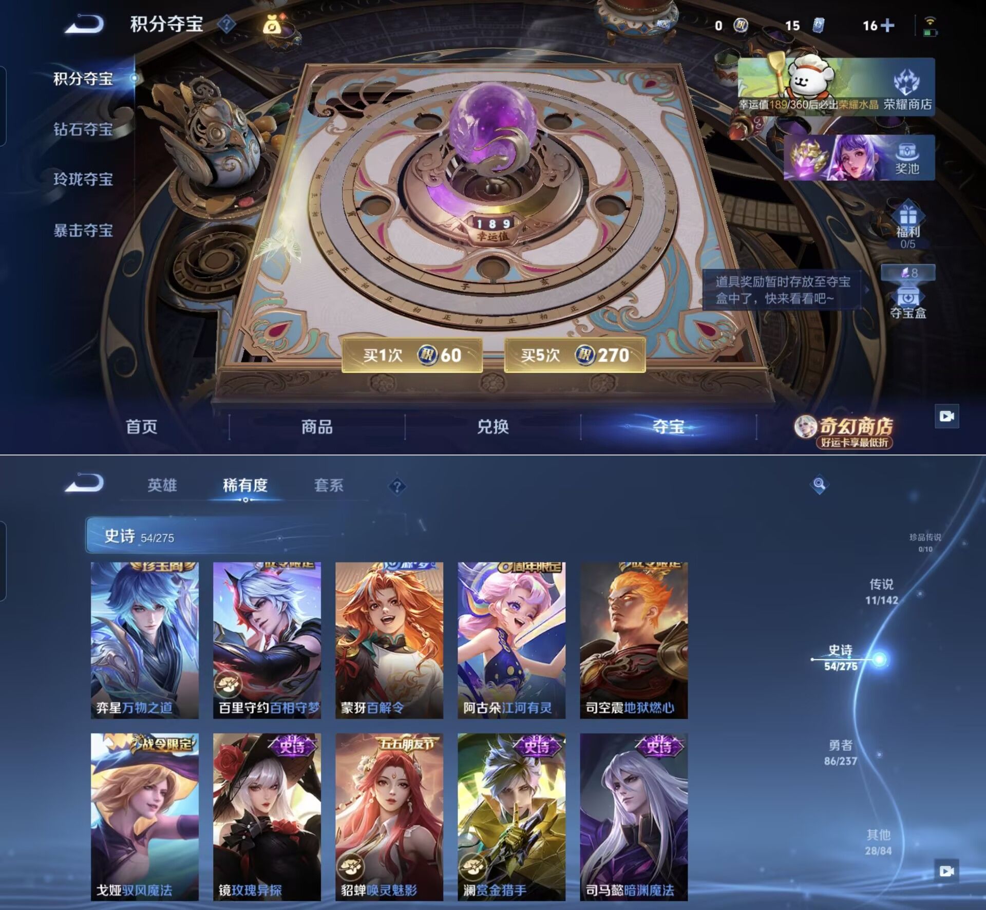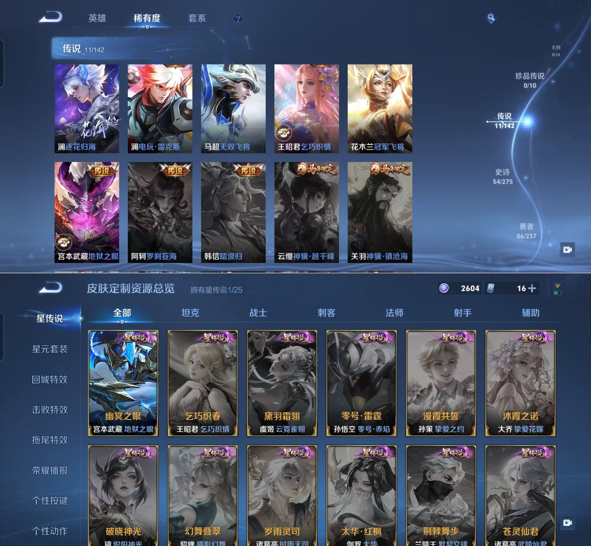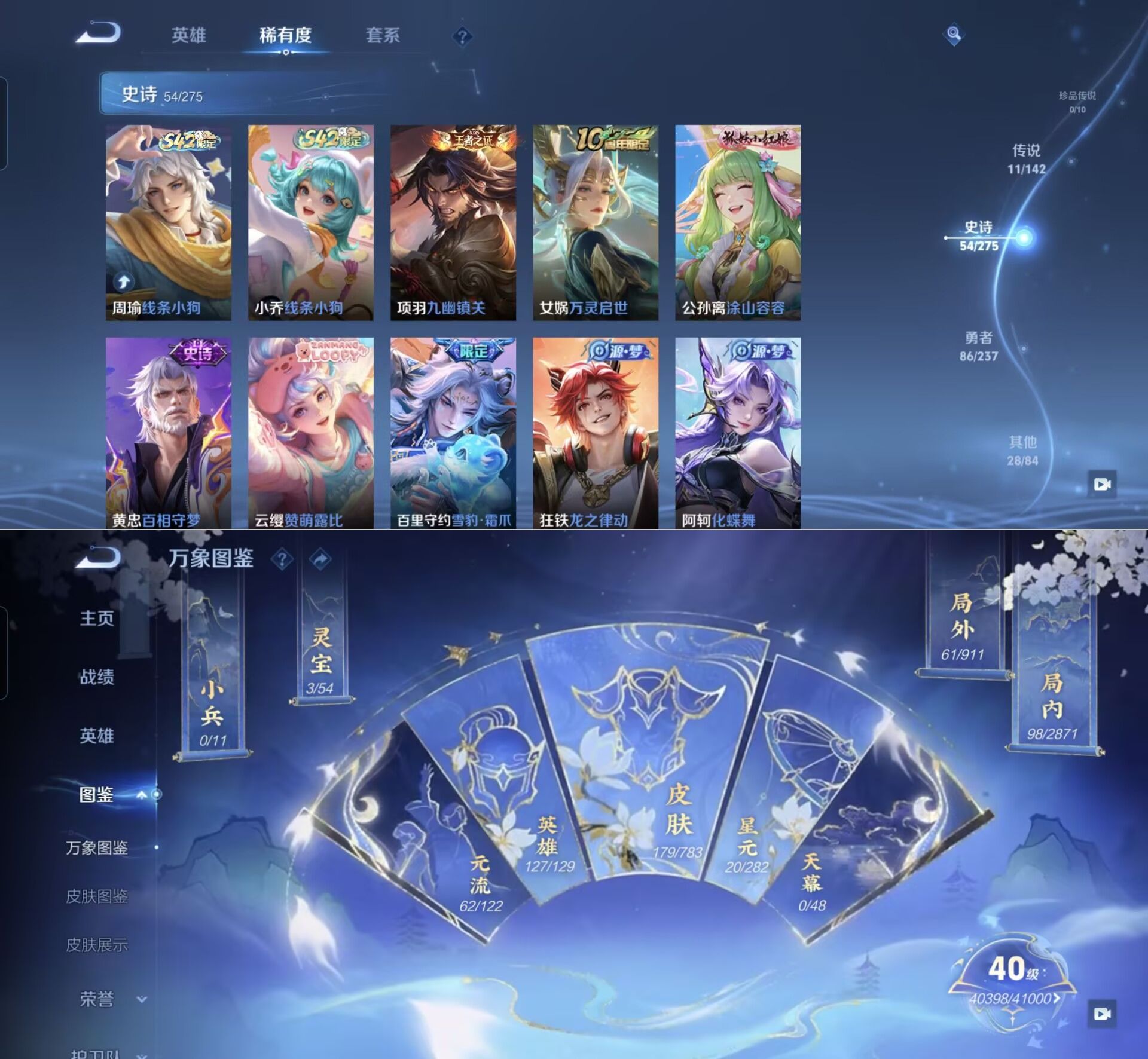 贵族等级:v7皮肤数:179传说品质11 生肖限定2 英雄数:127