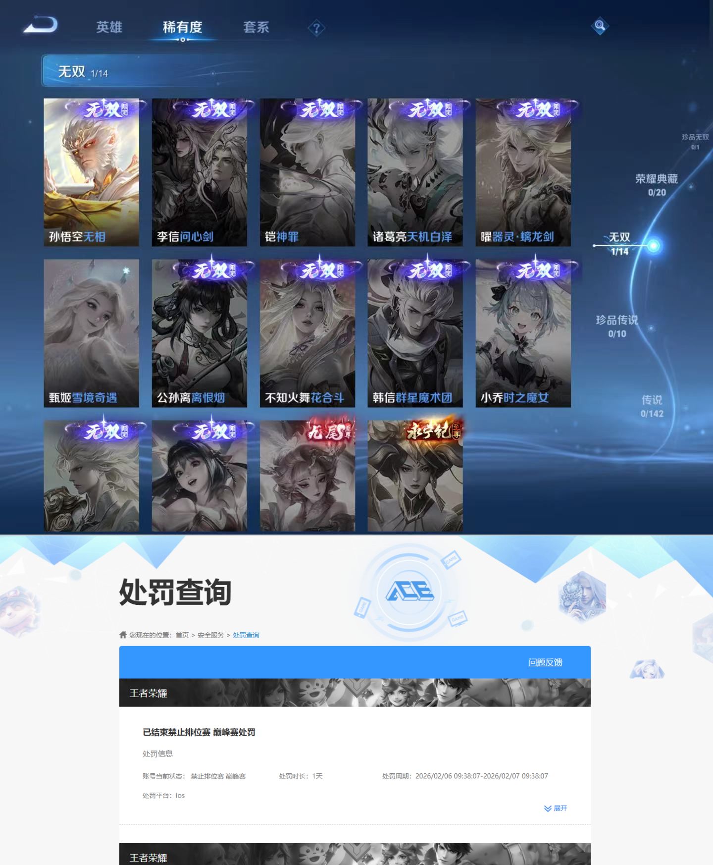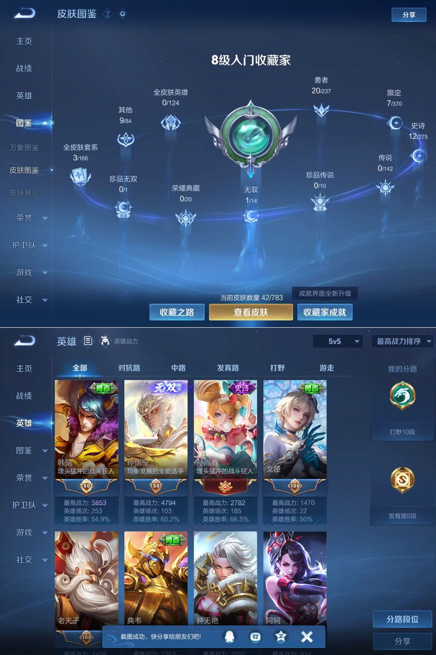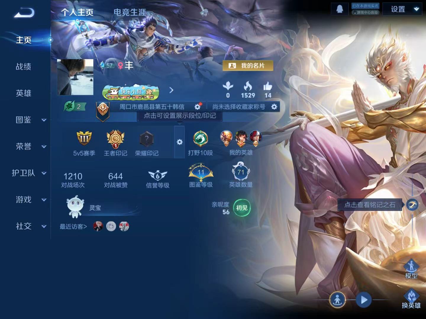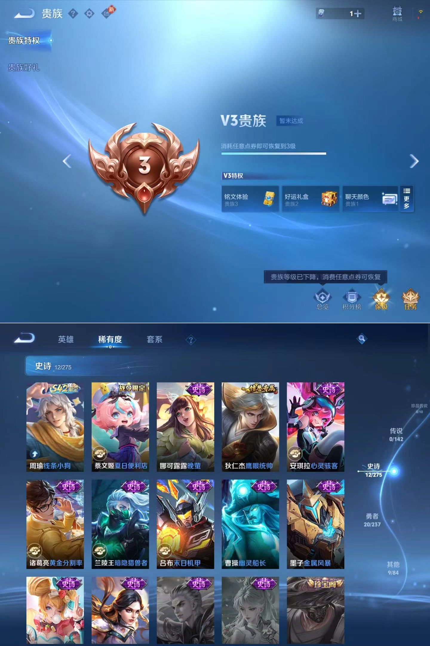 贵族等级:v3皮肤数:42无双1 英雄数:71