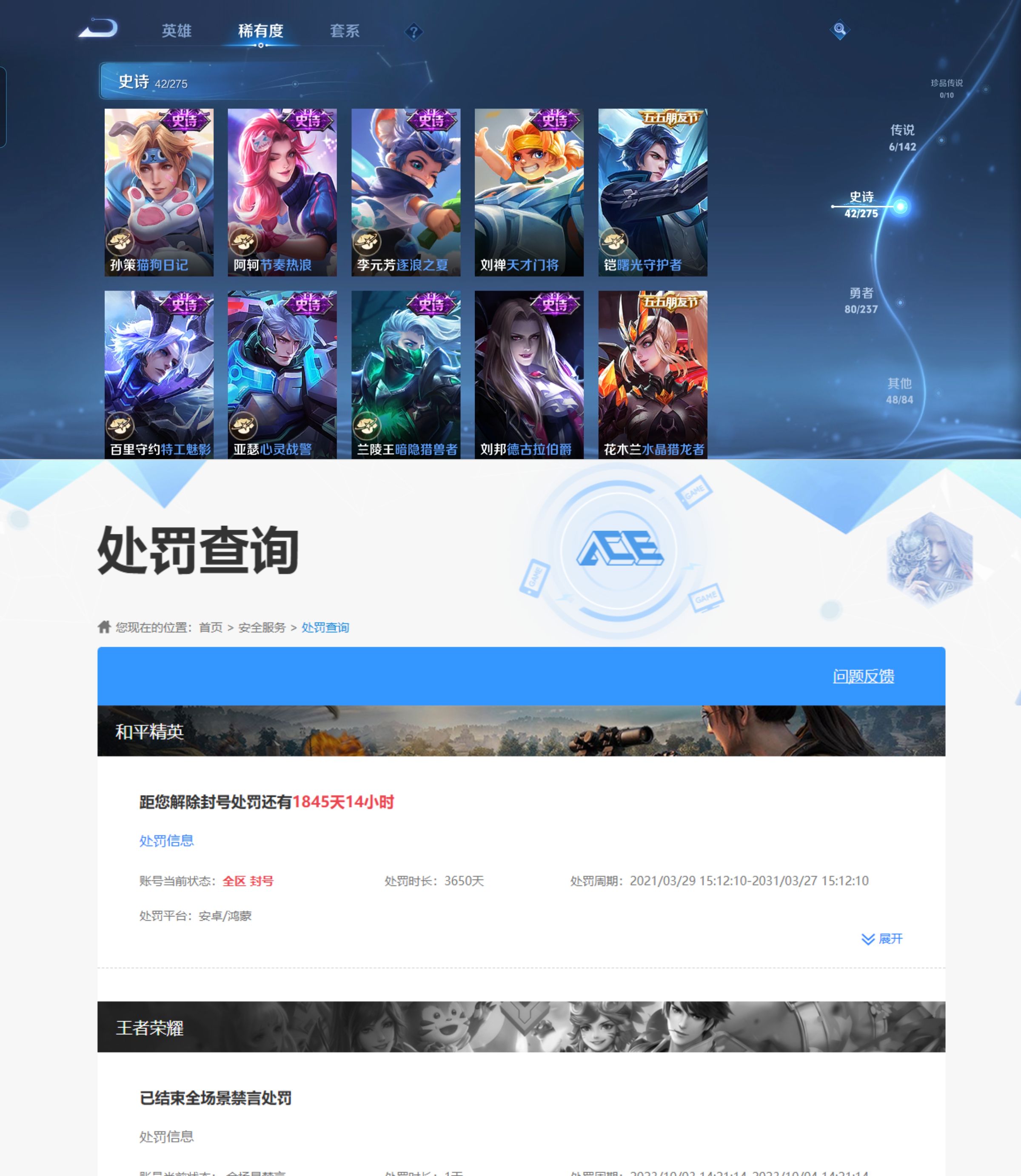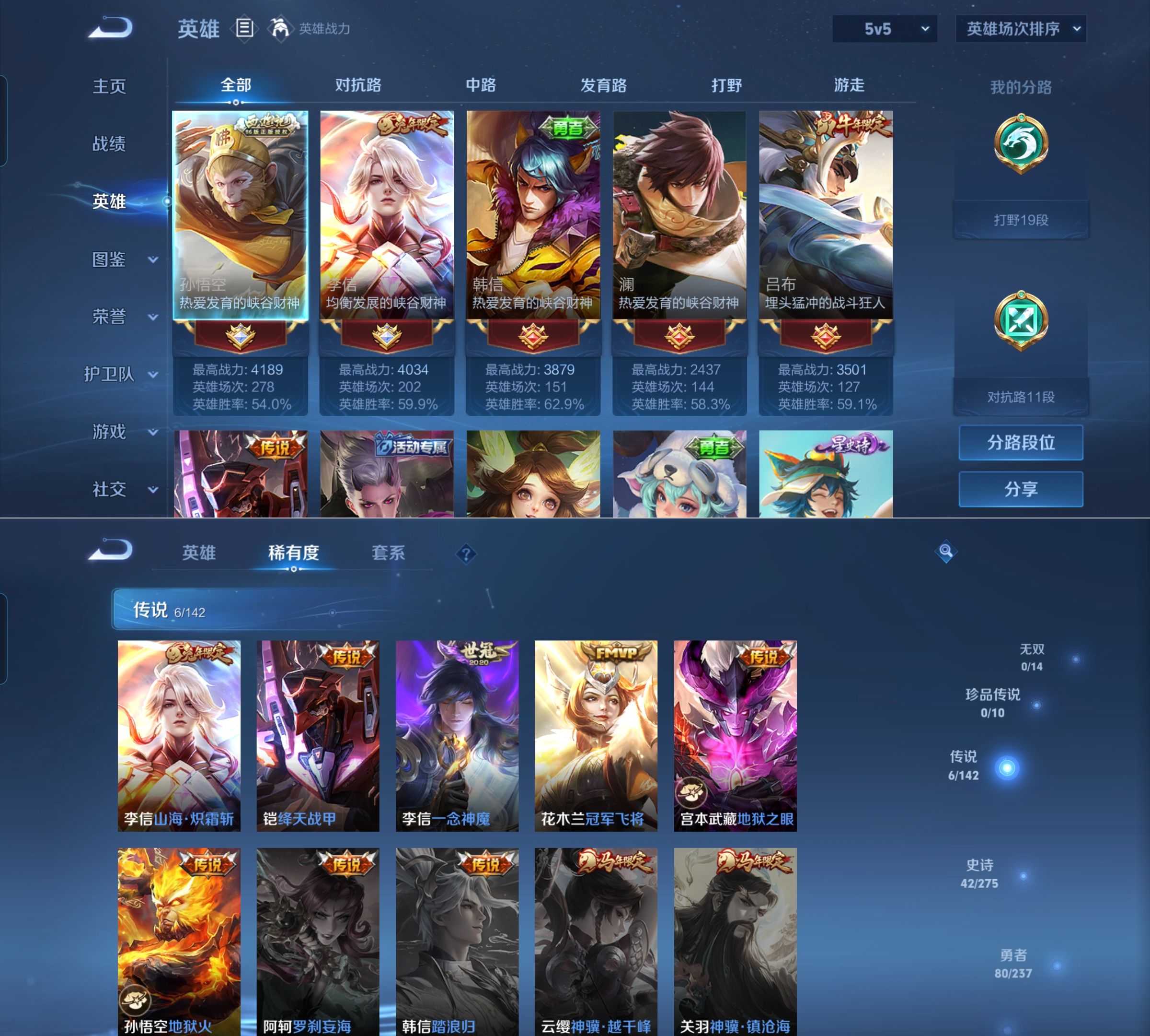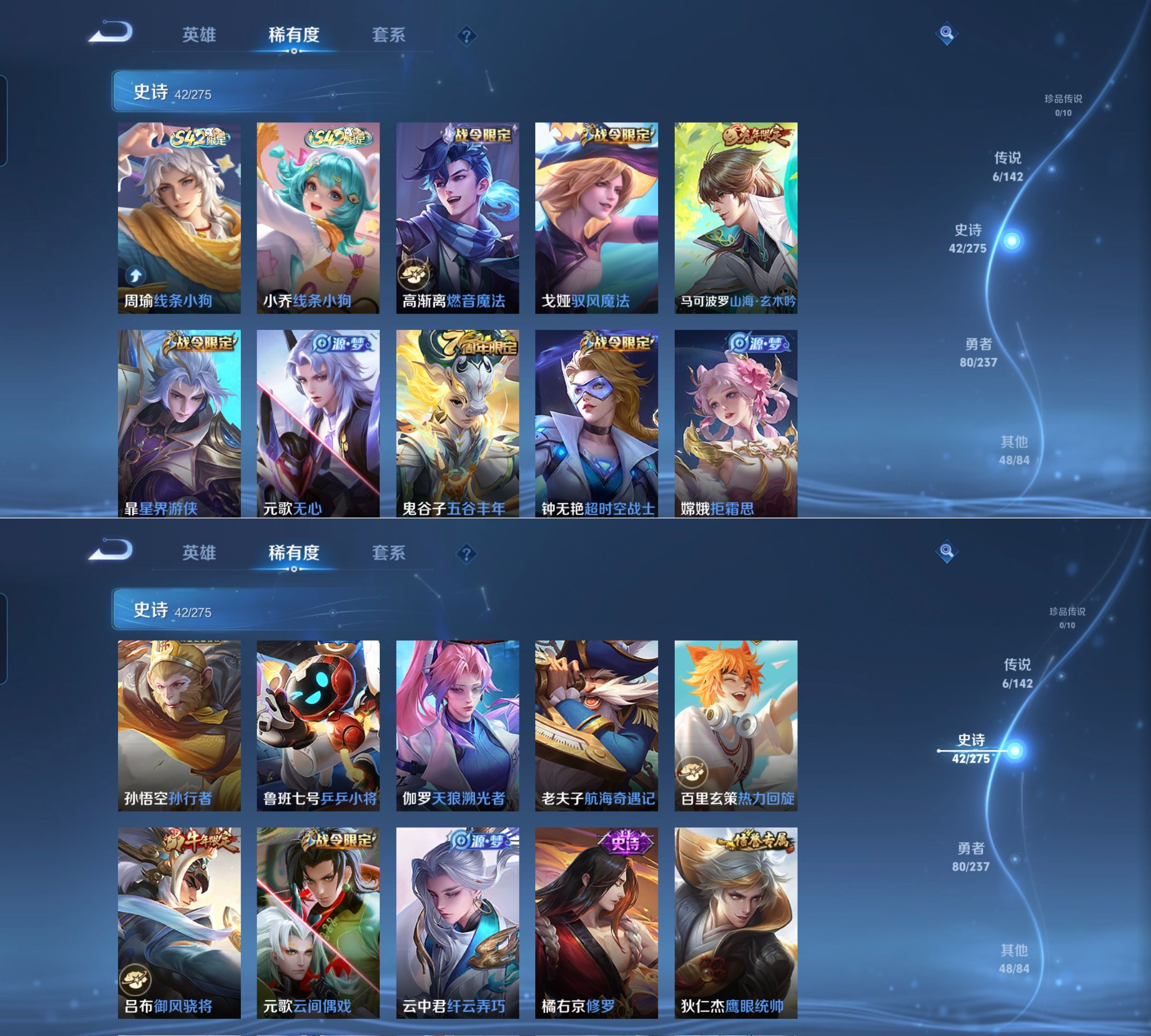 贵族等级:v7皮肤数:176传说品质6 生肖限定3 英雄数:128