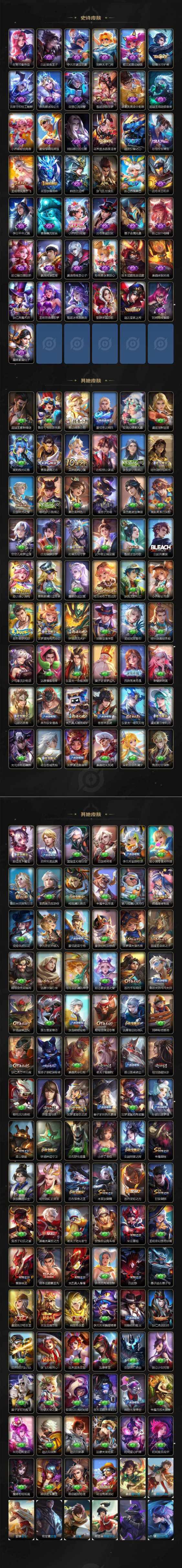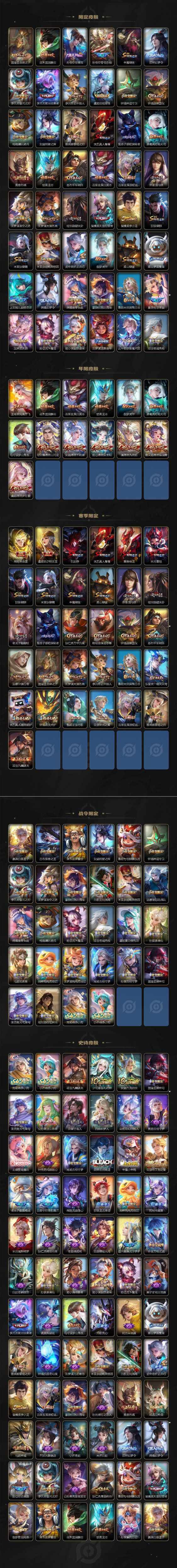 生肖限定_司空震_愿照·山河定生肖限定_澜_愿照·九州拓生肖限定_诸葛亮_时雨天司生肖限定_花木兰_瑞麟志生肖限定_王昭君_凤凰于飞生肖限定_女娲_愿照·千秋盛生肖限定_马可波罗_山海·玄木吟生肖限定_妲己_愿照·众生和生肖限定_蔡文姬_愿照·福禄聚生肖限定_伽罗_太华生肖限定_狄仁杰_神骥·赴朔漠生肖限定_铠_青龙志生肖限定_虞姬_愿照·岁时盈生肖限定_百里玄策_白虎志