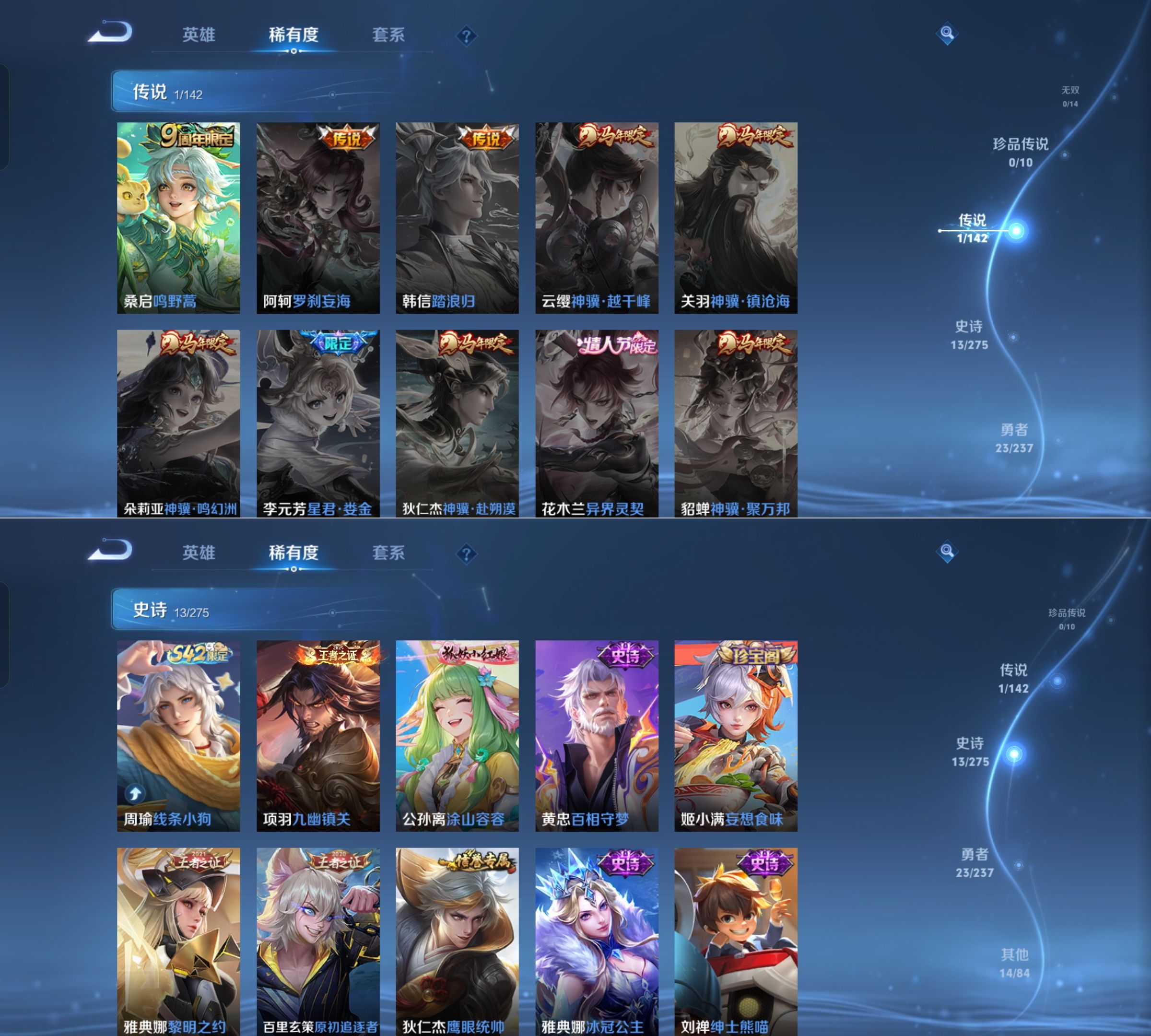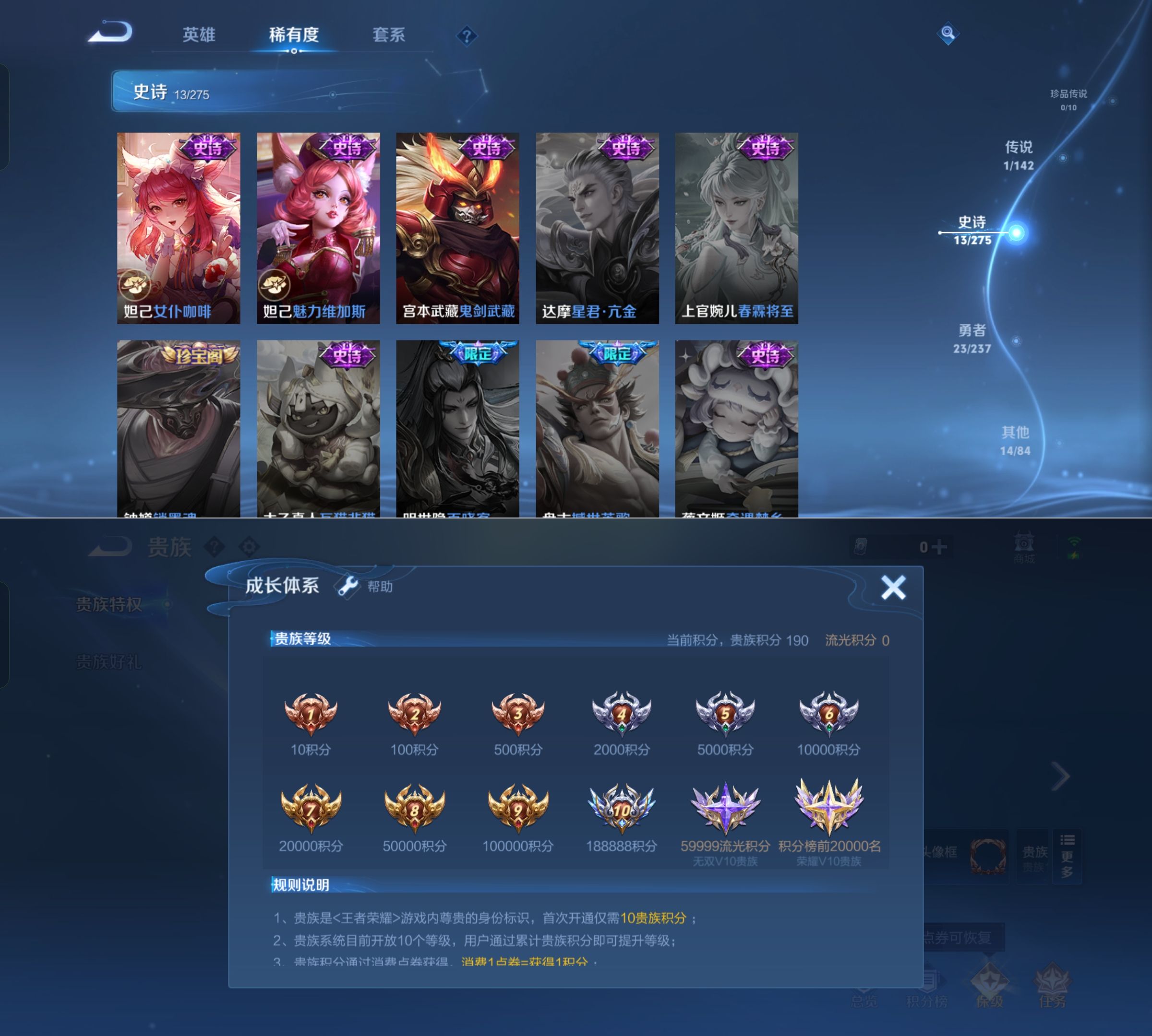 贵族等级:v2皮肤数:51传说品质1 英雄数:94