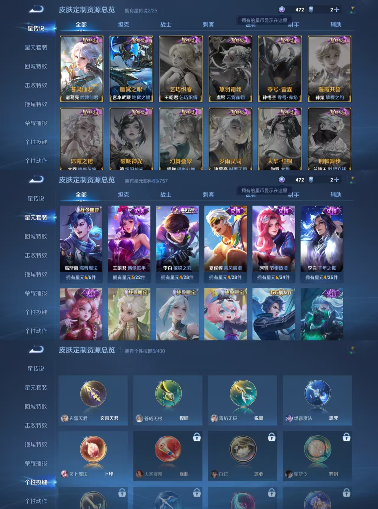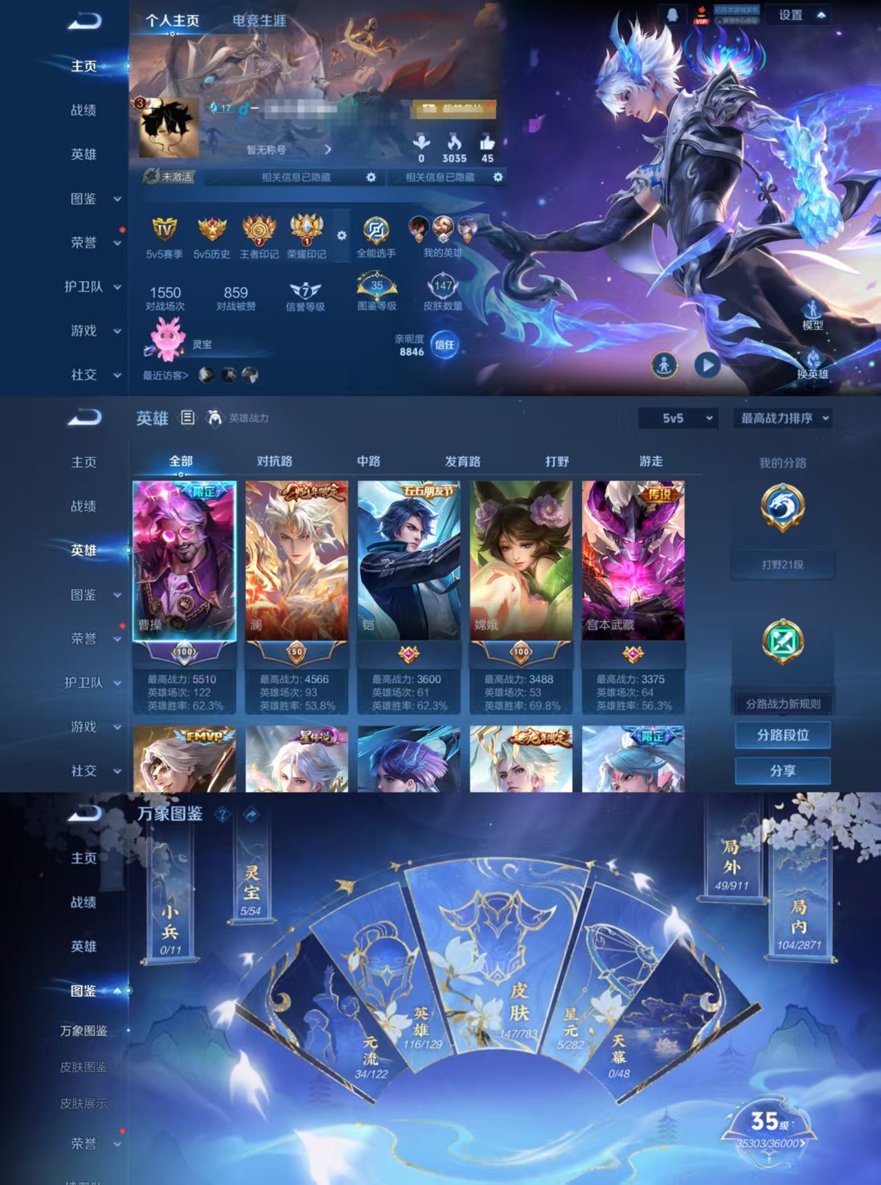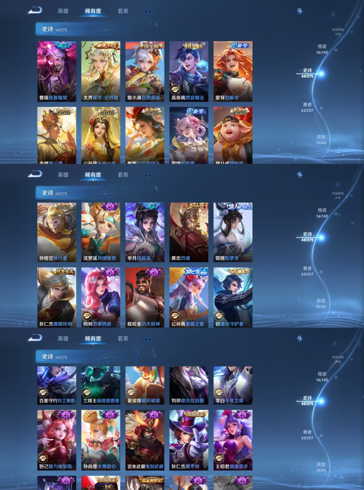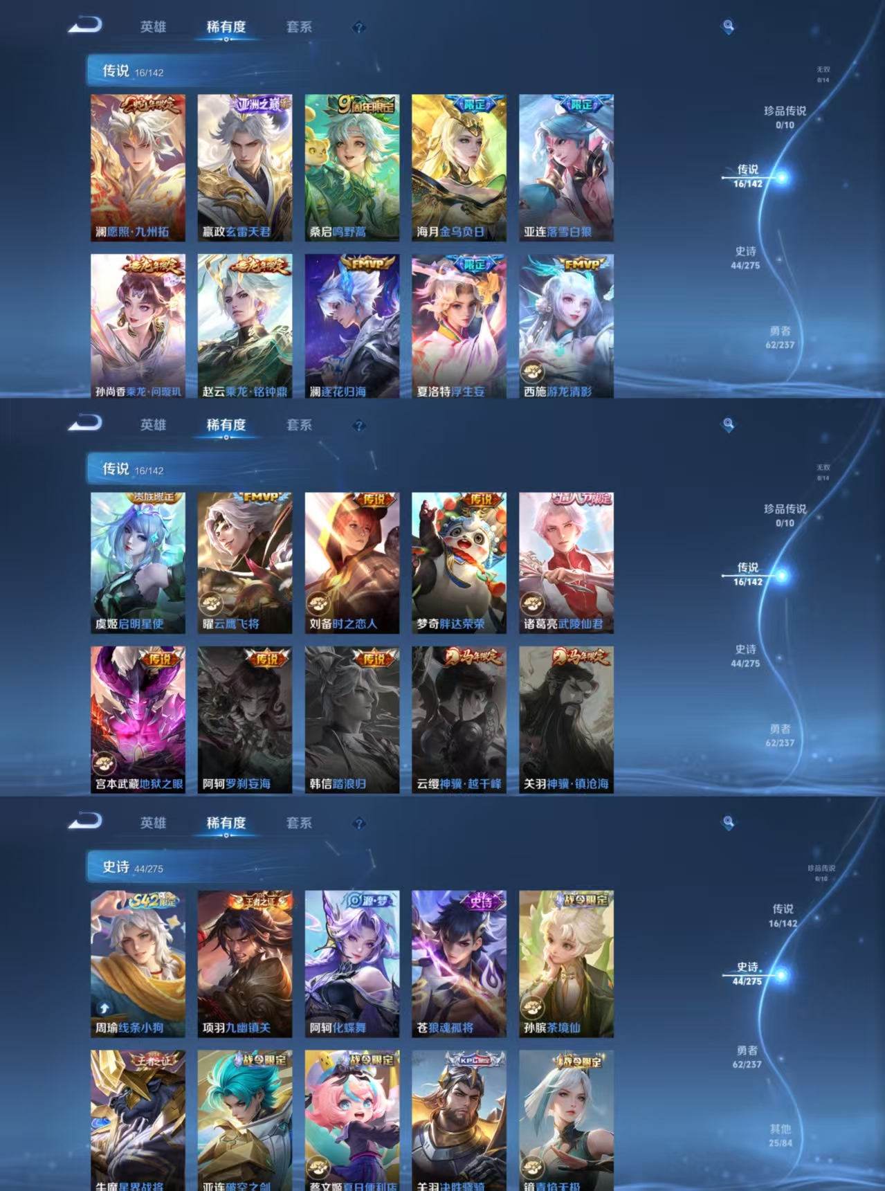 贵族等级:v8皮肤数:147传说品质16 生肖限定4 情人节限定2 英雄数:116