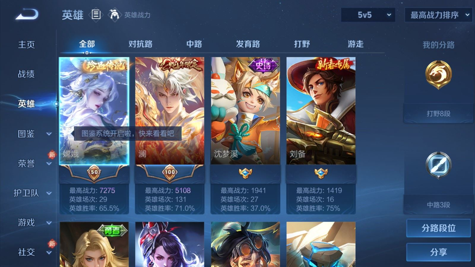 贵族等级:v5皮肤数:37传说品质1 生肖限定1 珍品传说1 无双1 英雄数:53