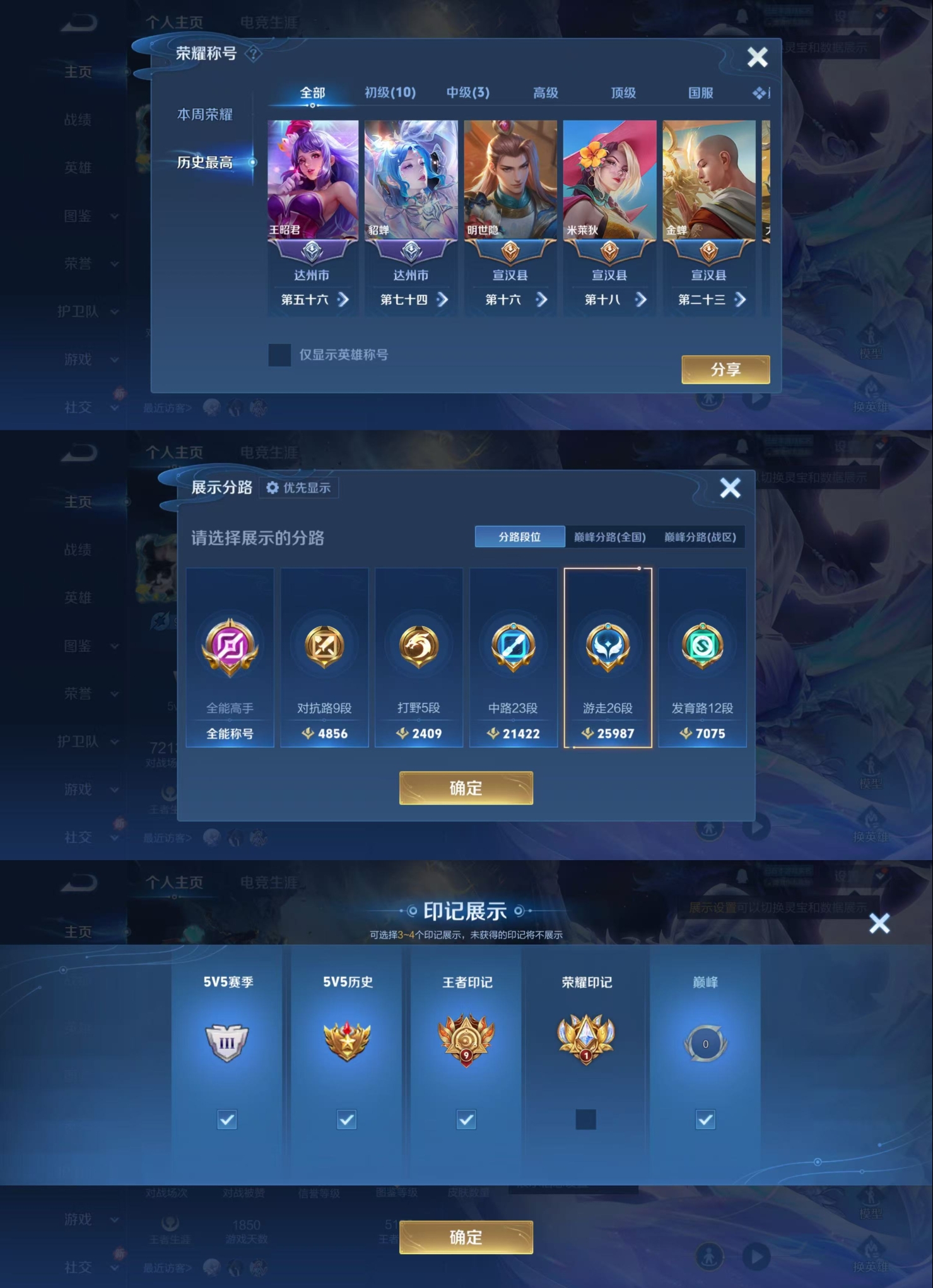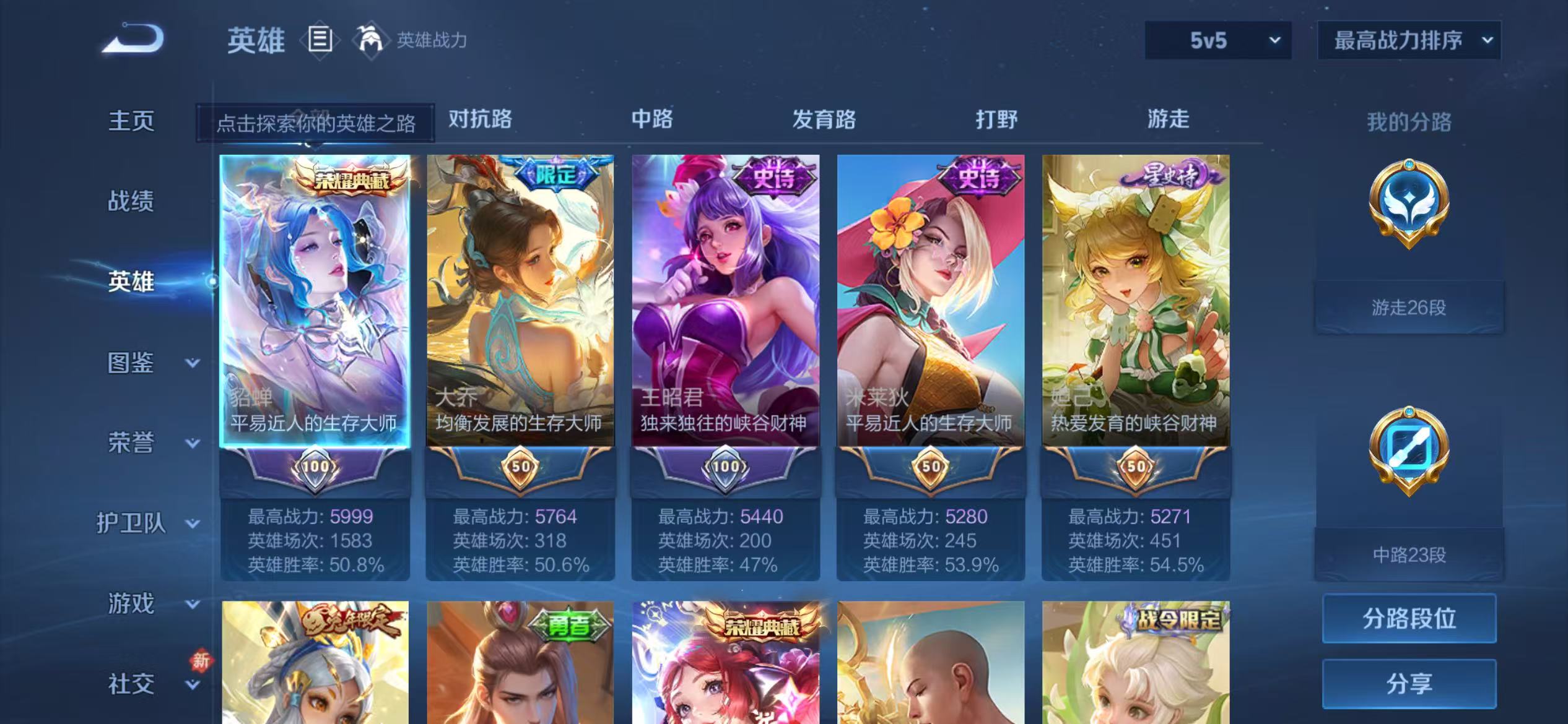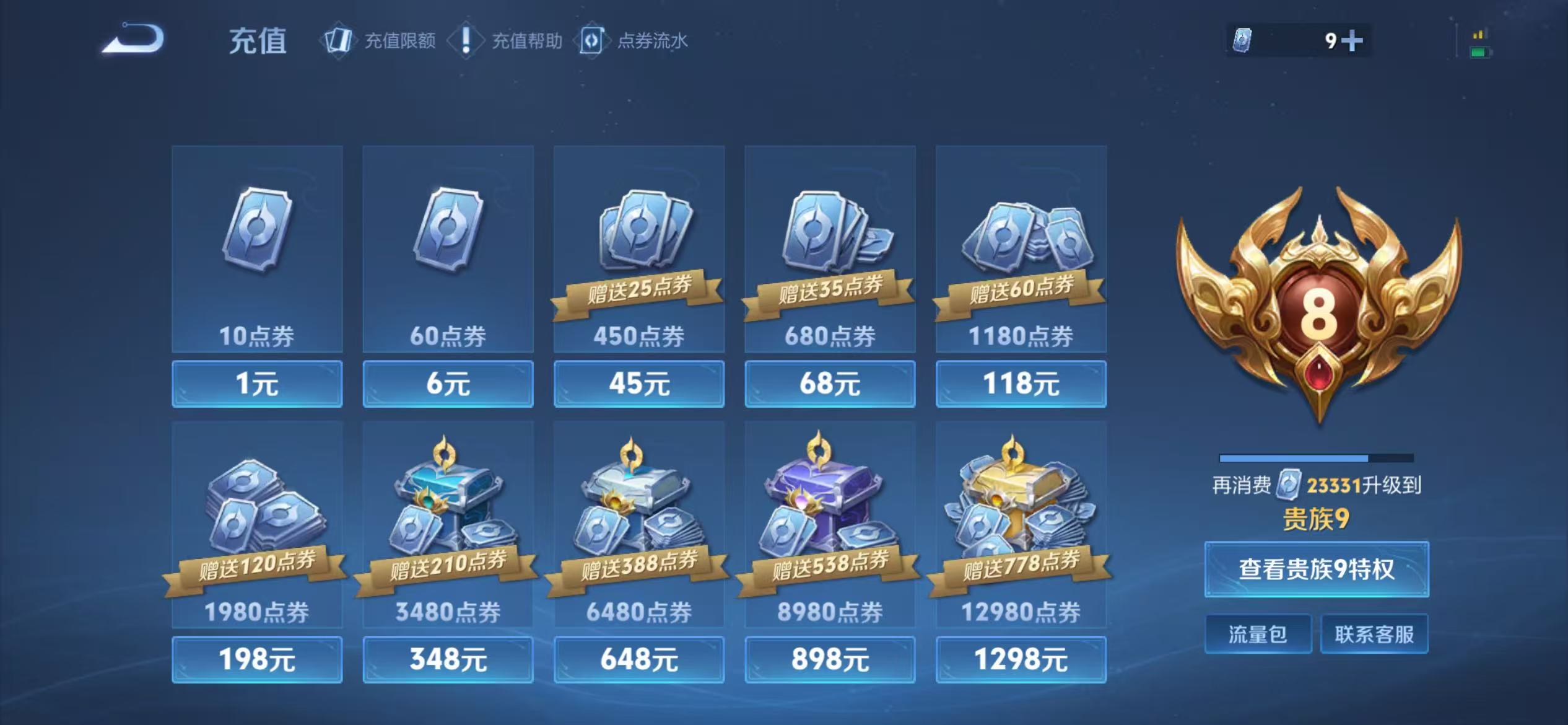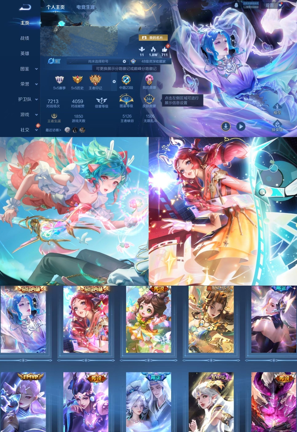 贵族等级:v8皮肤数:244传说品质18 荣耀典藏2 生肖限定3 情人节限定1 英雄数:124