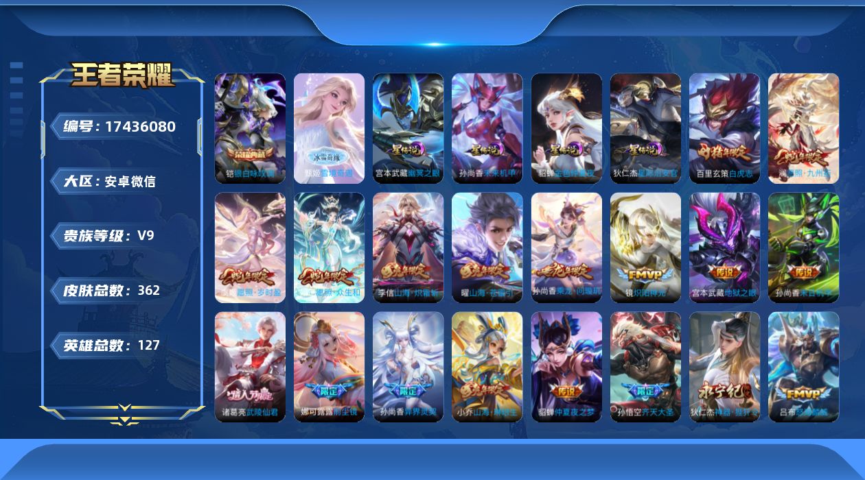 传说品质_后羿_黄金射手座传说品质_娜可露露_前尘镜传说品质_澜_愿照·九州拓传说品质_诸葛亮_武陵仙君传说品质_孙悟空_零号·赤焰传说品质_孙悟空_齐天大圣传说品质_吕布_怒海麟威传说品质_宫本武藏_地狱之眼传说品质_镜_炽阳神光传说品质_貂蝉_仲夏夜之梦传说品质_李信_山海·炽霜斩传说品质_孙尚香_末日机甲传说品质_孙尚香_乘龙·问璇玑传说品质_孙尚香_音你闪耀传说品质_孙尚香_异界灵契传说品质_小乔_山海·琳琅生传说品质_东皇太一_灼幽烈阳传说品质_妲己_愿照·众生和传说品质_伽罗_炽翼辉光传说品质_曜_山海·苍雷引传说品质_狄仁杰_超时空战士传说品质_狄仁杰_神器·狴犴令传说品质_虞姬_云霓雀翎传说品质_虞姬_愿照·岁时盈传说品质_虞姬_启明星使传说品质_嬴政_玄雷天君传说品质_百里玄策_白虎志传说品质_赵云_淬星耀世