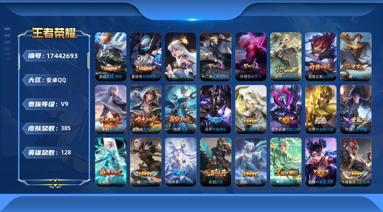 传说品质_后羿_神树通天传说品质_关羽_武圣传说品质_诸葛亮_时雨天司传说品质_孙悟空_地狱火传说品质_吕布_天魔缭乱传说品质_干将莫邪_久胜战神传说品质_宫本武藏_地狱之眼传说品质_西施_游龙清影传说品质_周瑜_音你心动传说品质_镜_炽阳神光传说品质_貂蝉_遇见胡旋传说品质_貂蝉_仲夏夜之梦传说品质_李信_一念神魔传说品质_孙尚香_异界灵契传说品质_梦奇_胖达荣荣传说品质_桑启_鸣野蒿传说品质_刘备_时之恋人传说品质_张良_黄金白羊座传说品质_李白_凤求凰传说品质_伽罗_太华传说品质_曜_云鹰飞将传说品质_曜_李逍遥 传说品质_狄仁杰_超时空战士传说品质_达摩_黄金狮子座传说品质_虞姬_云霓雀翎传说品质_虞姬_启明星使传说品质_百里玄策_白虎志传说品质_赵云_淬星耀世传说品质_裴擒虎_寅虎·赤拳传说品质_王昭君_乞巧织情