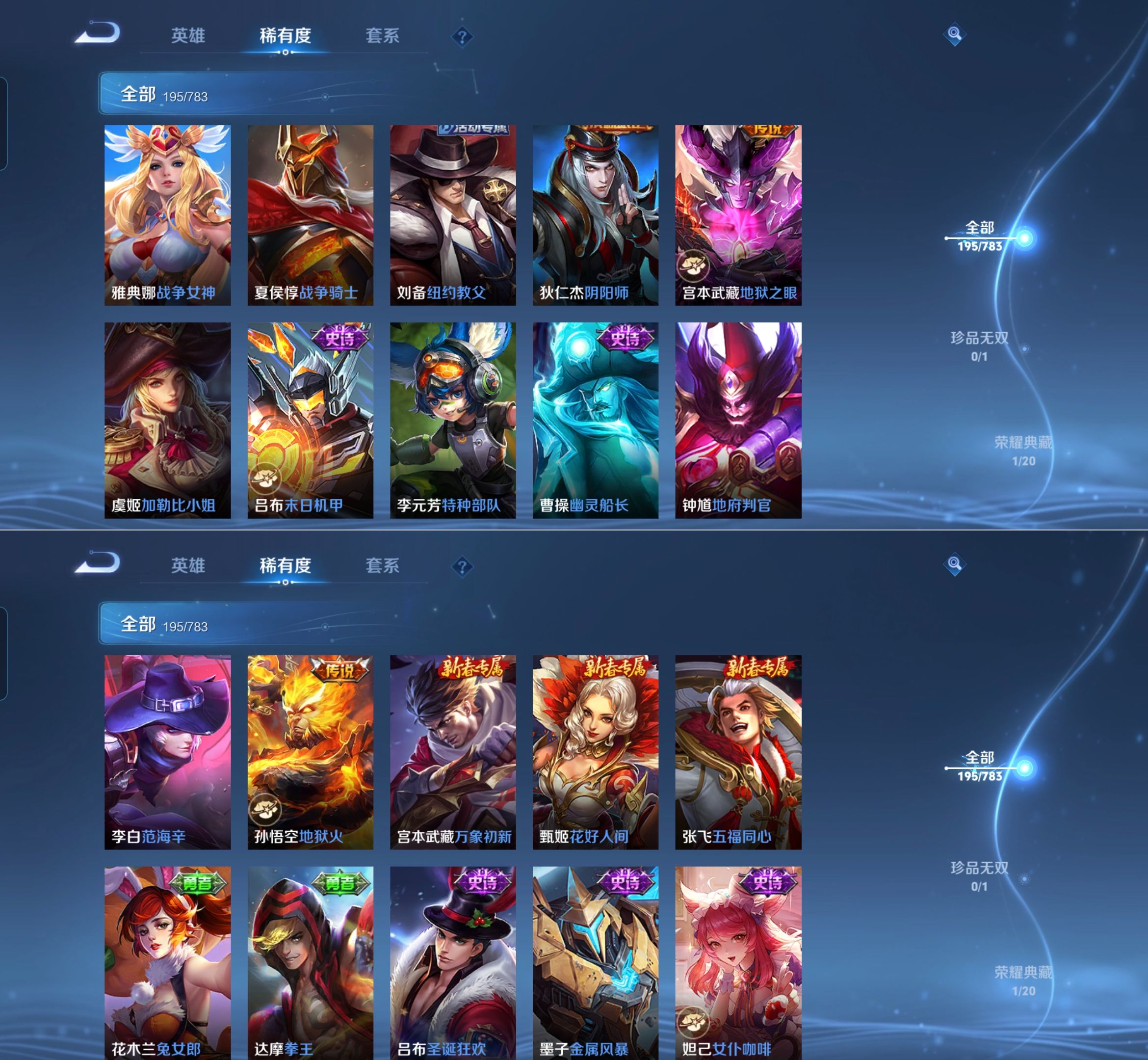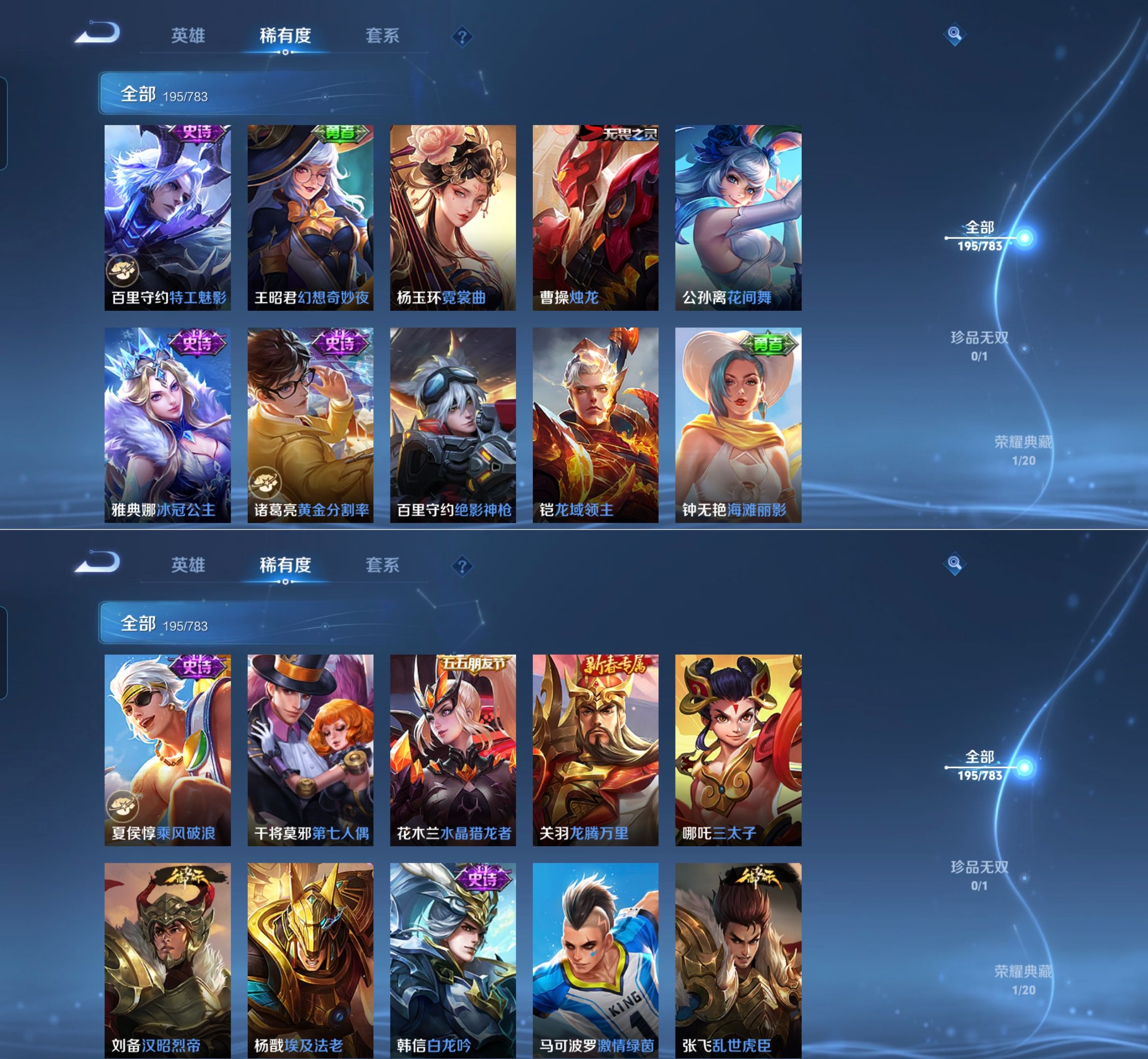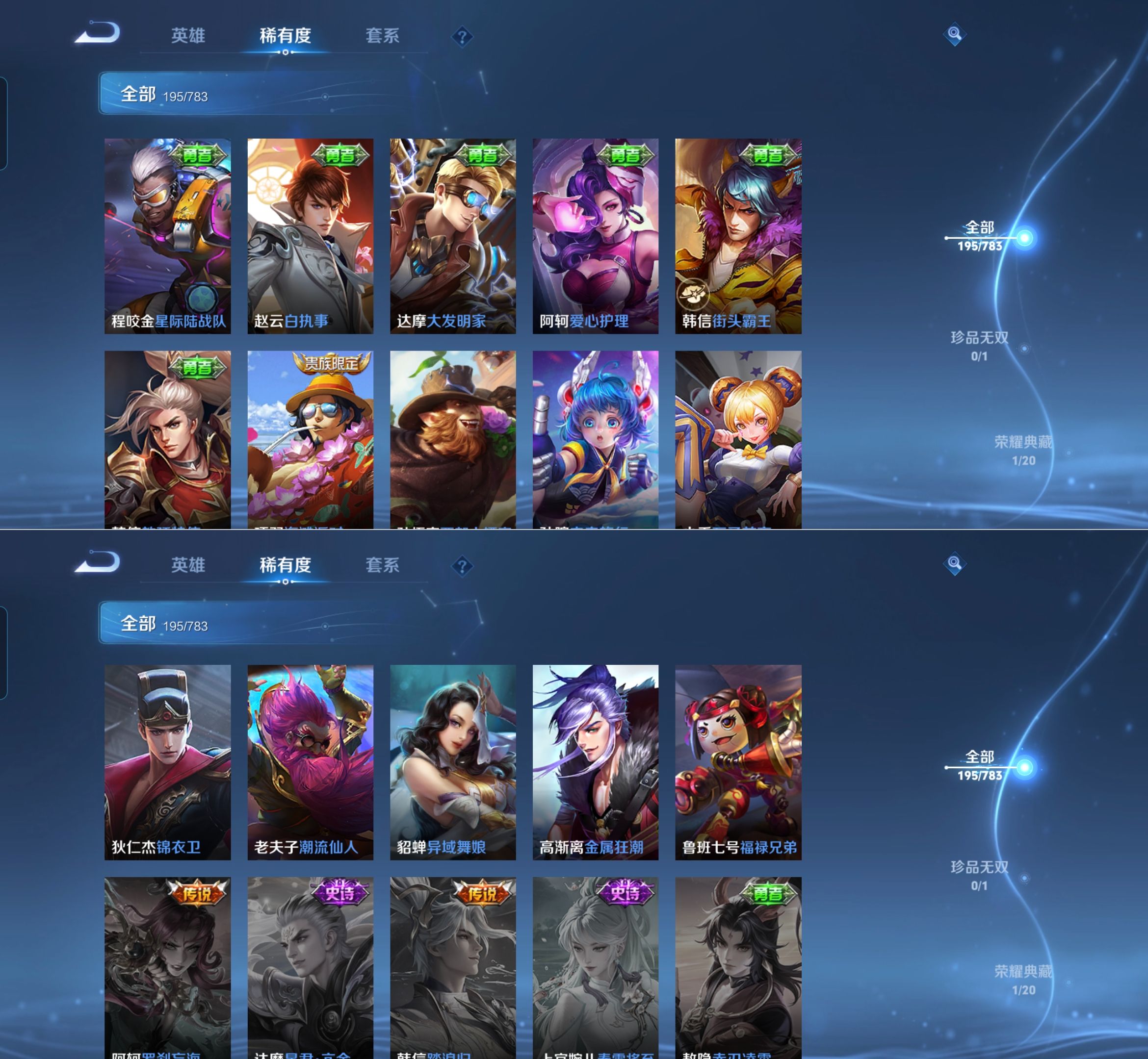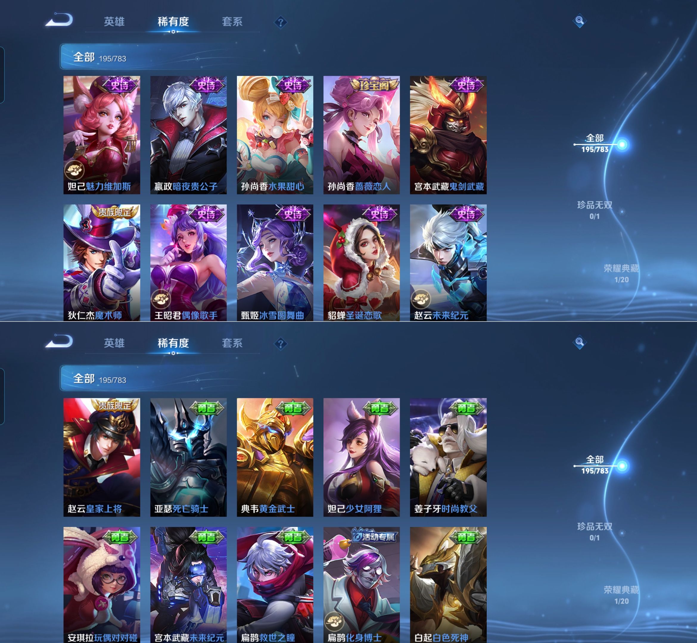 贵族等级:v7皮肤数:195传说品质9 荣耀典藏1 生肖限定1 英雄数:127