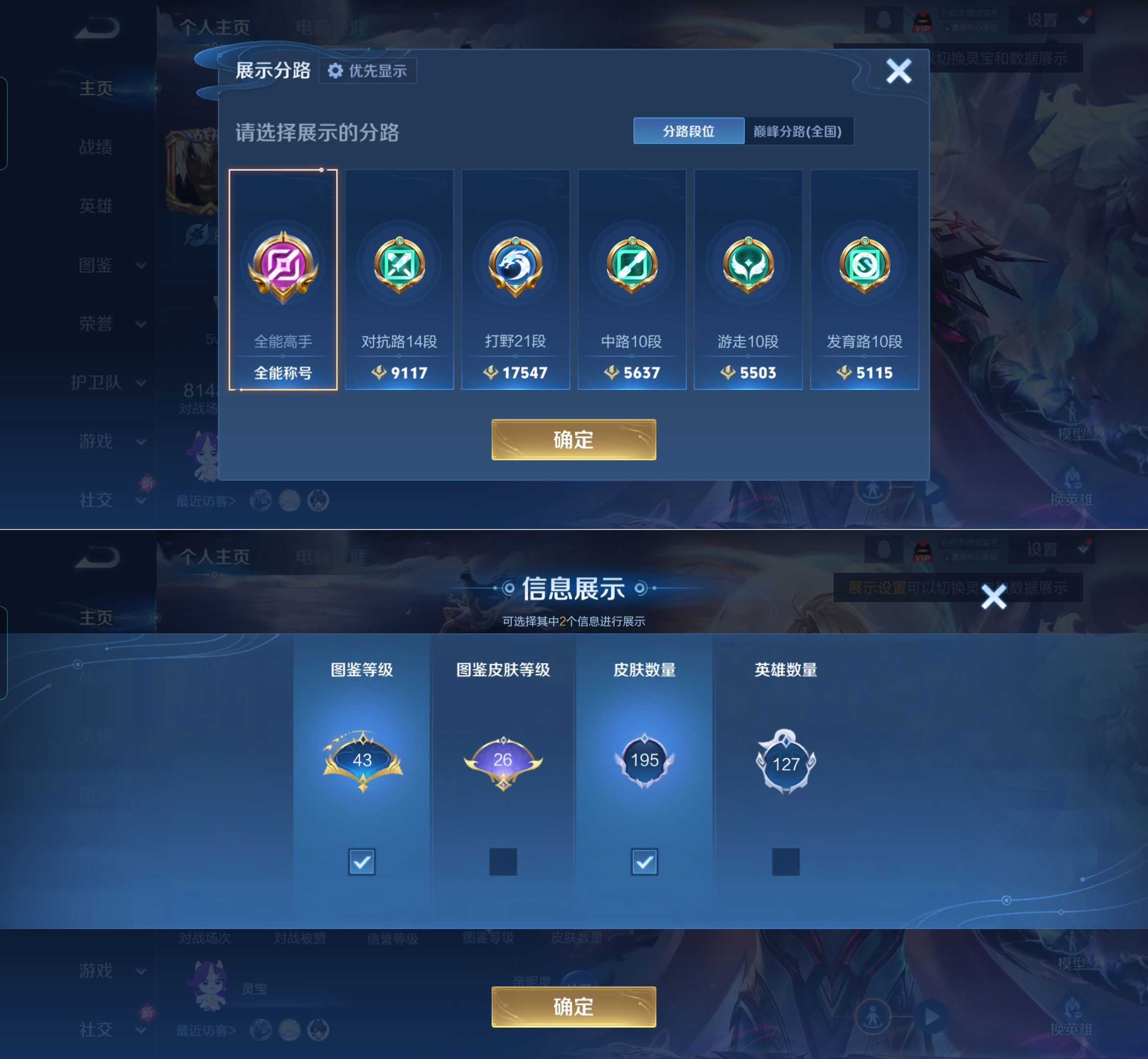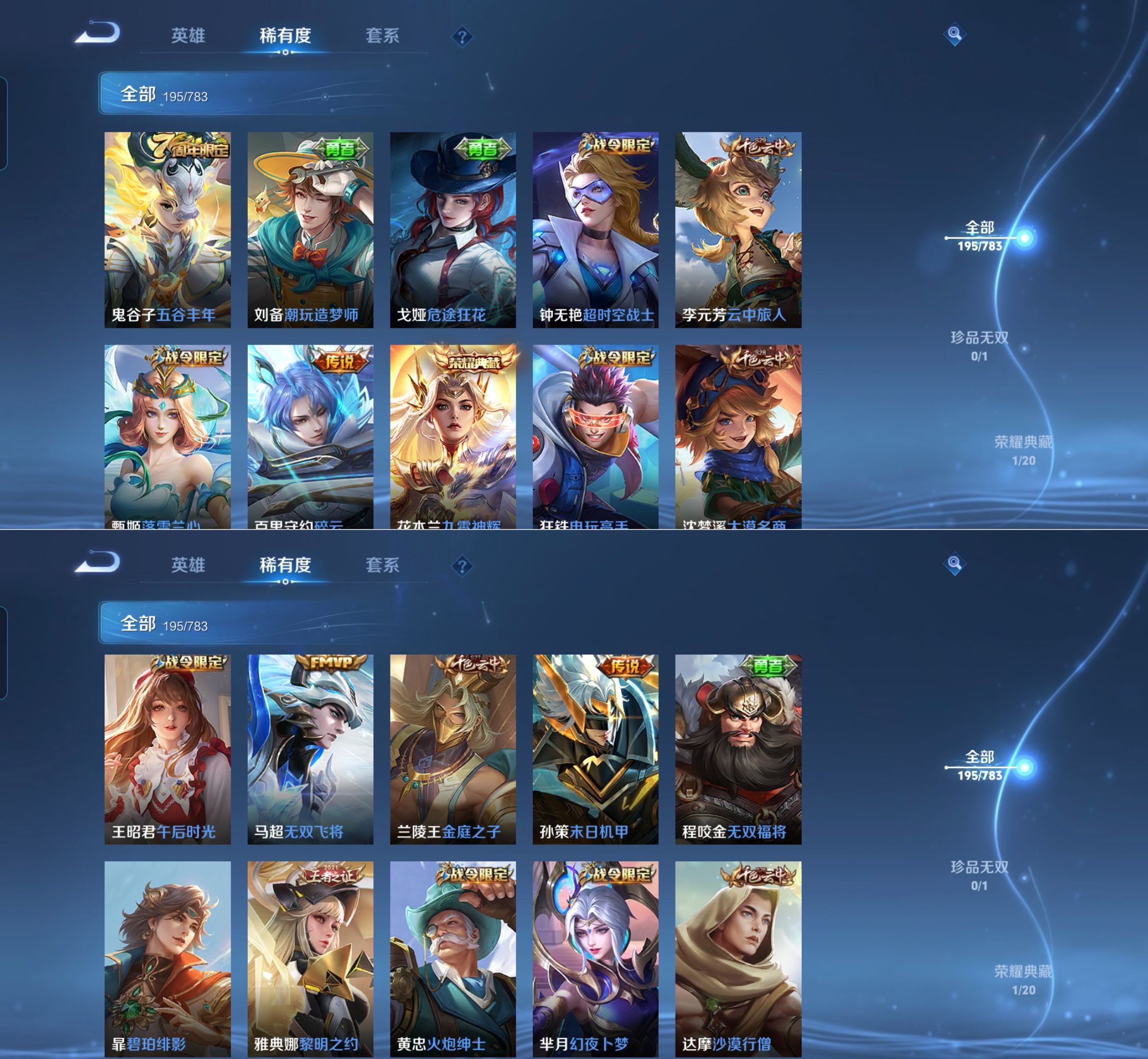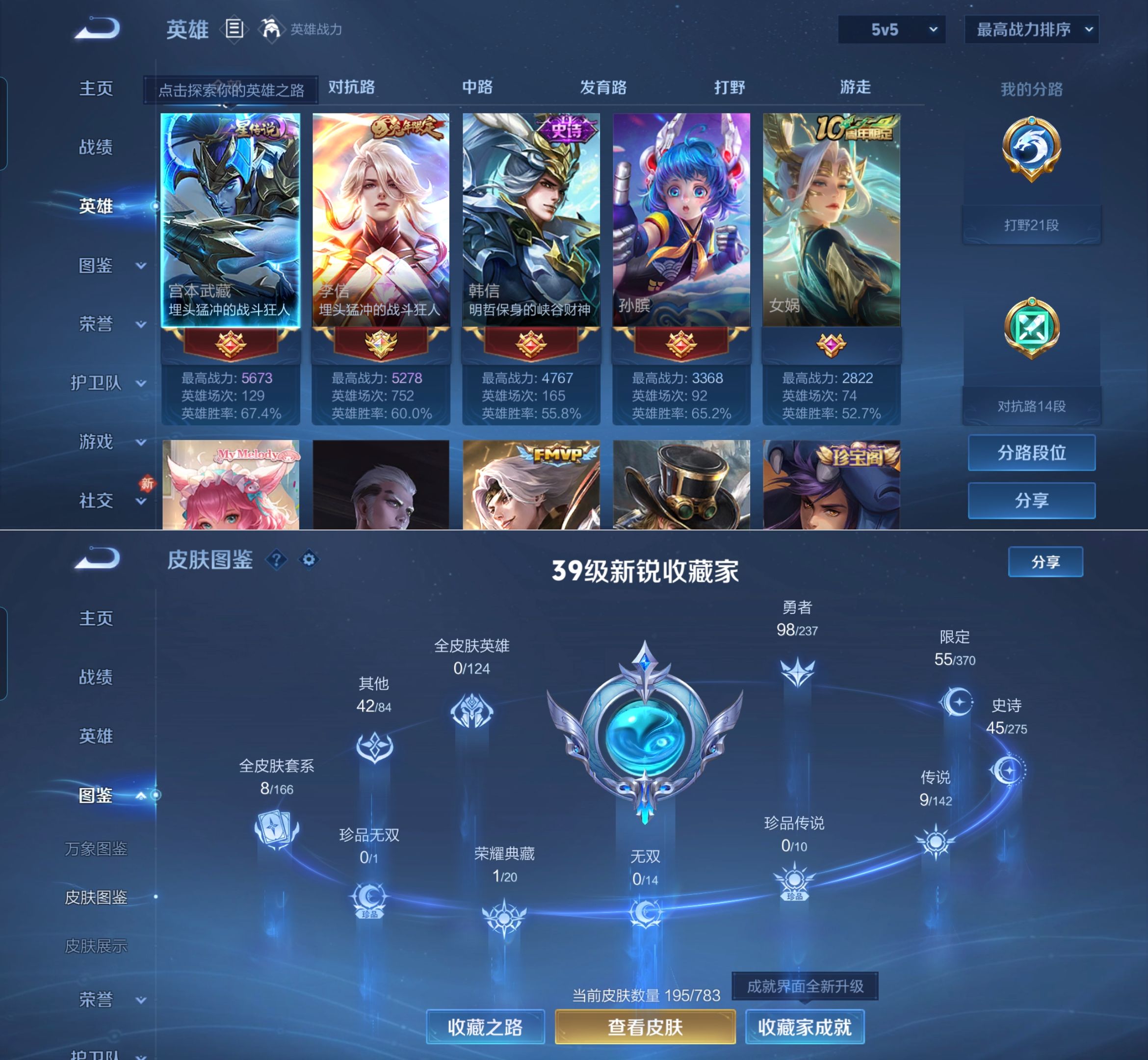 贵族等级:v7皮肤数:195传说品质9 荣耀典藏1 生肖限定1 英雄数:127