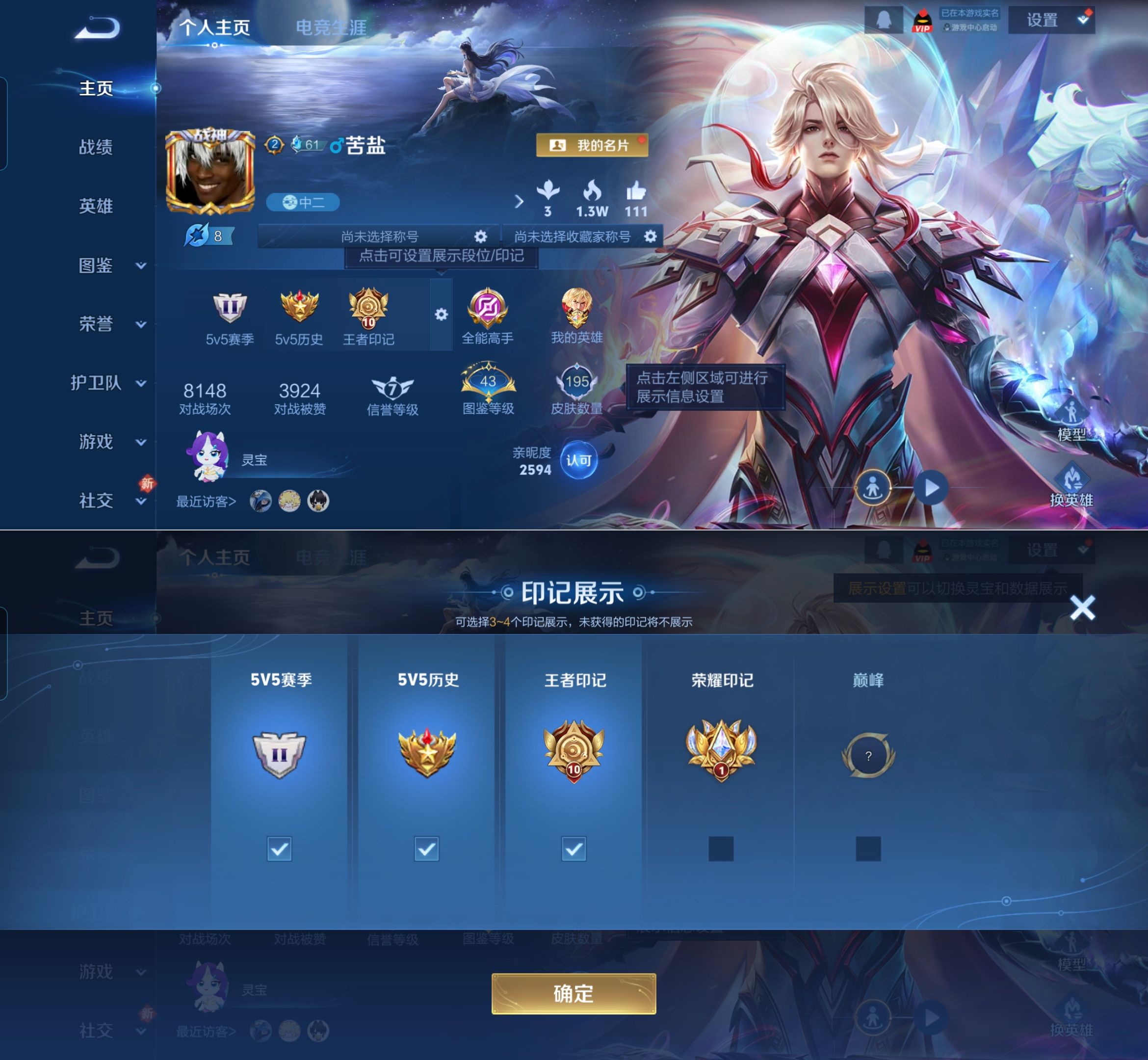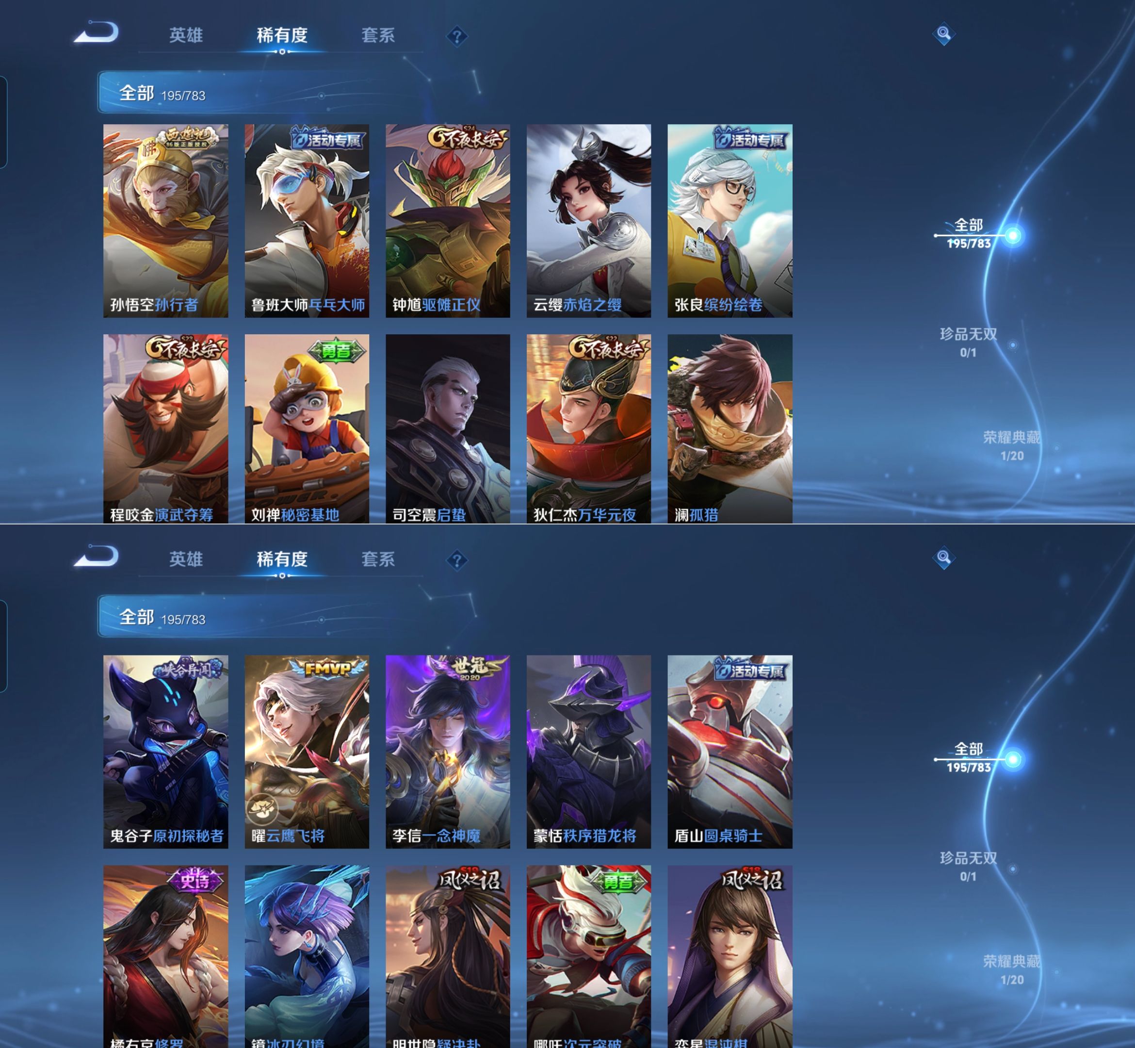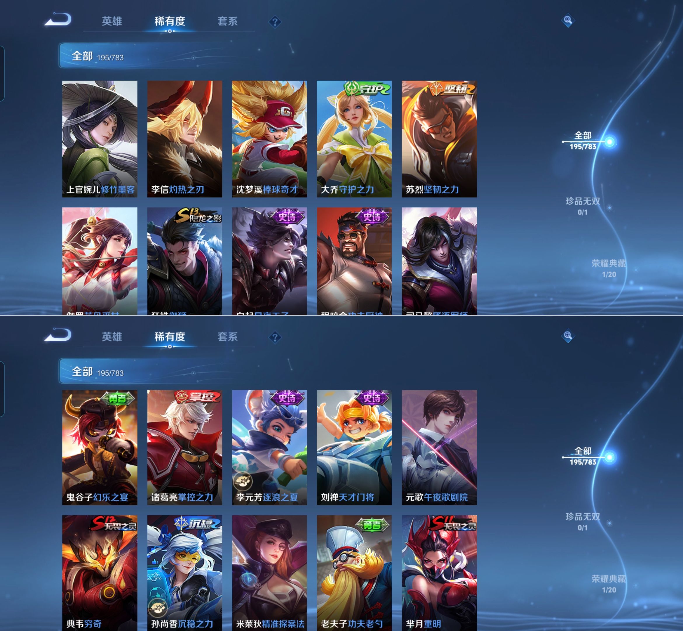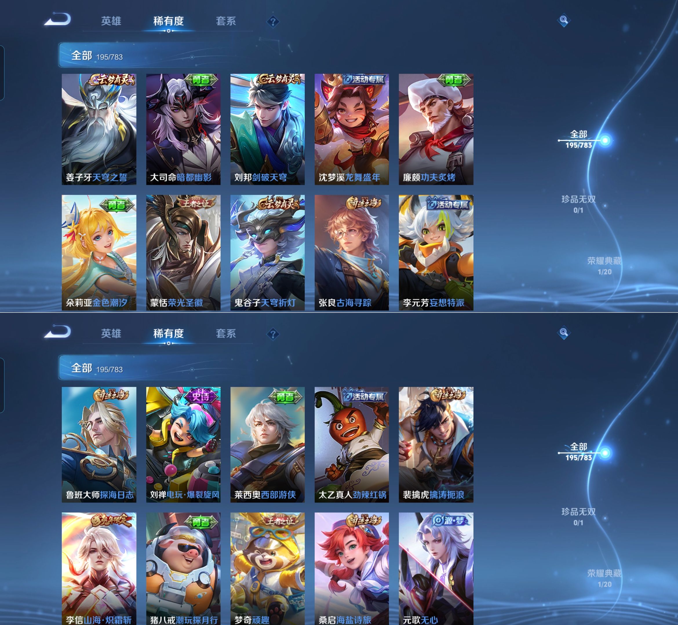 贵族等级:v7皮肤数:195传说品质9 荣耀典藏1 生肖限定1 英雄数:127