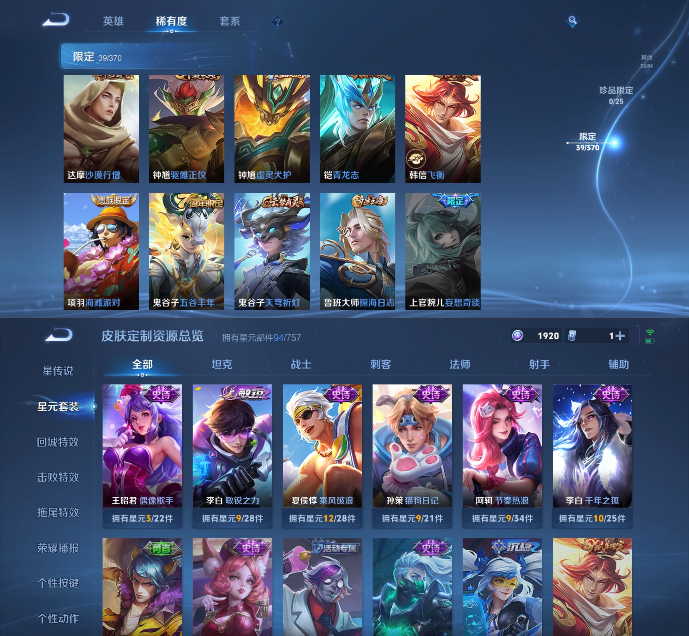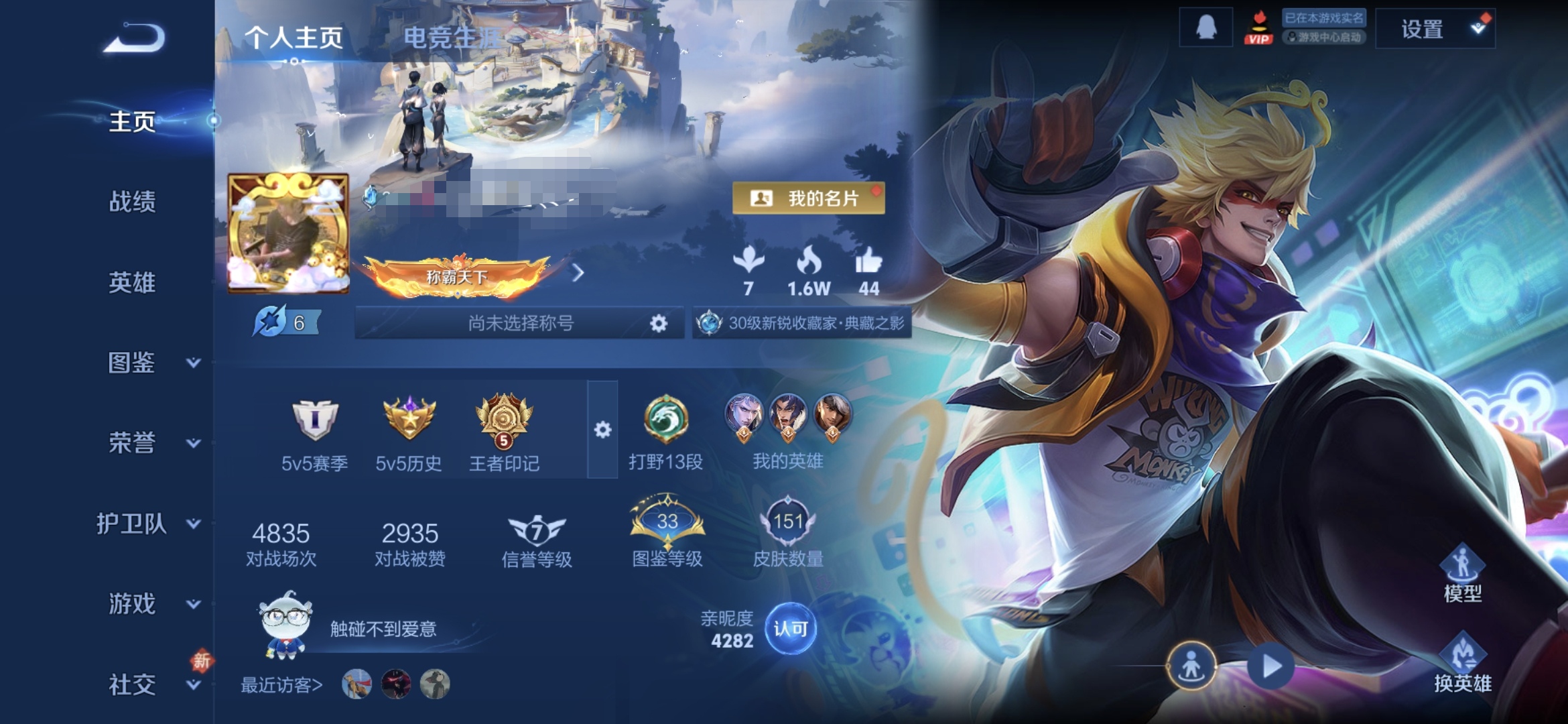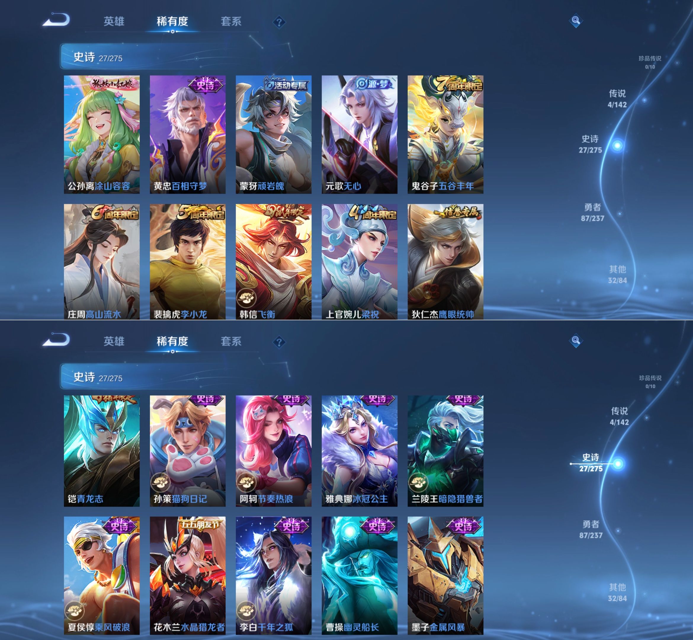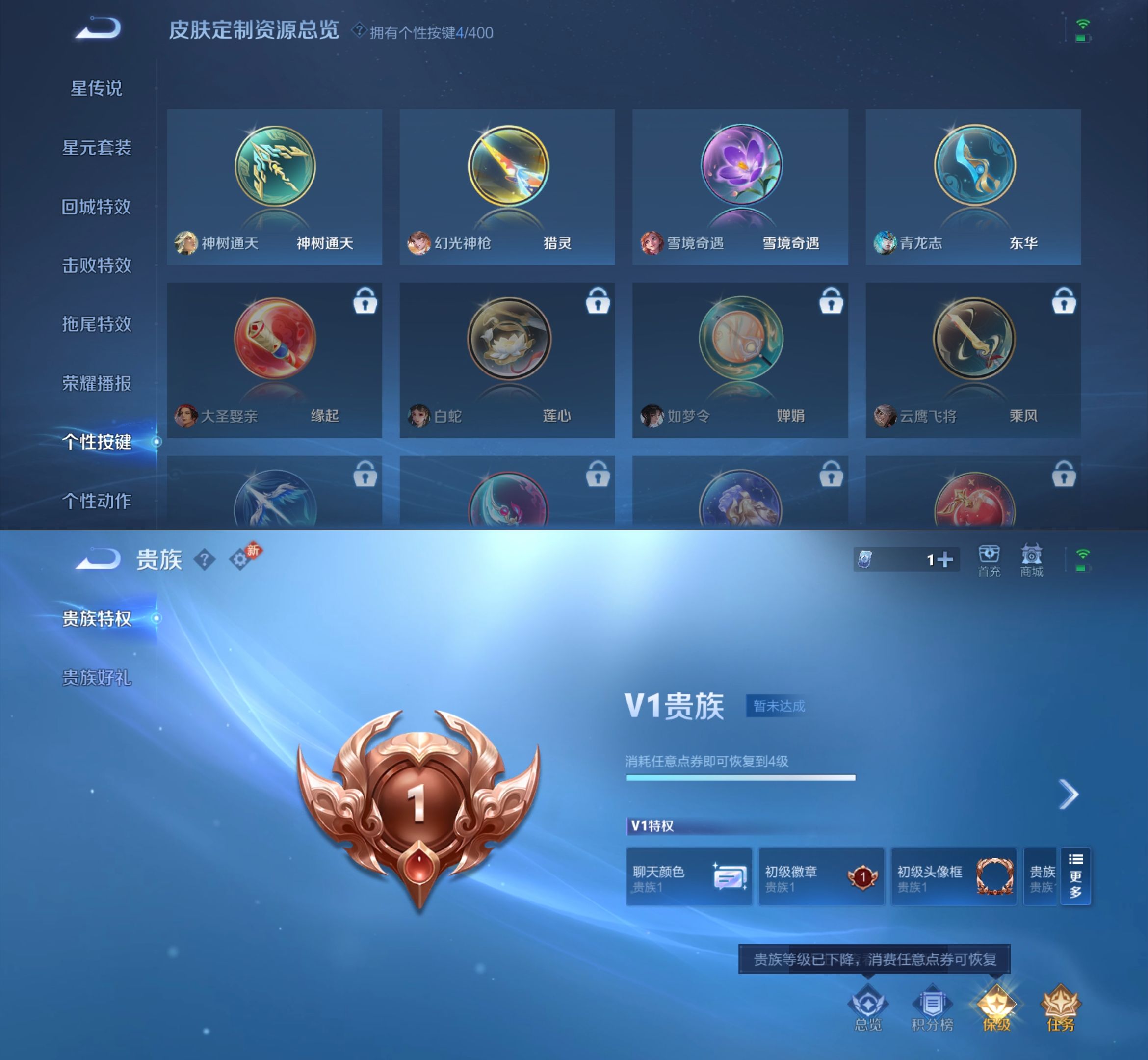 贵族等级:v4皮肤数:151传说品质4 荣耀典藏1 生肖限定2 英雄数:127