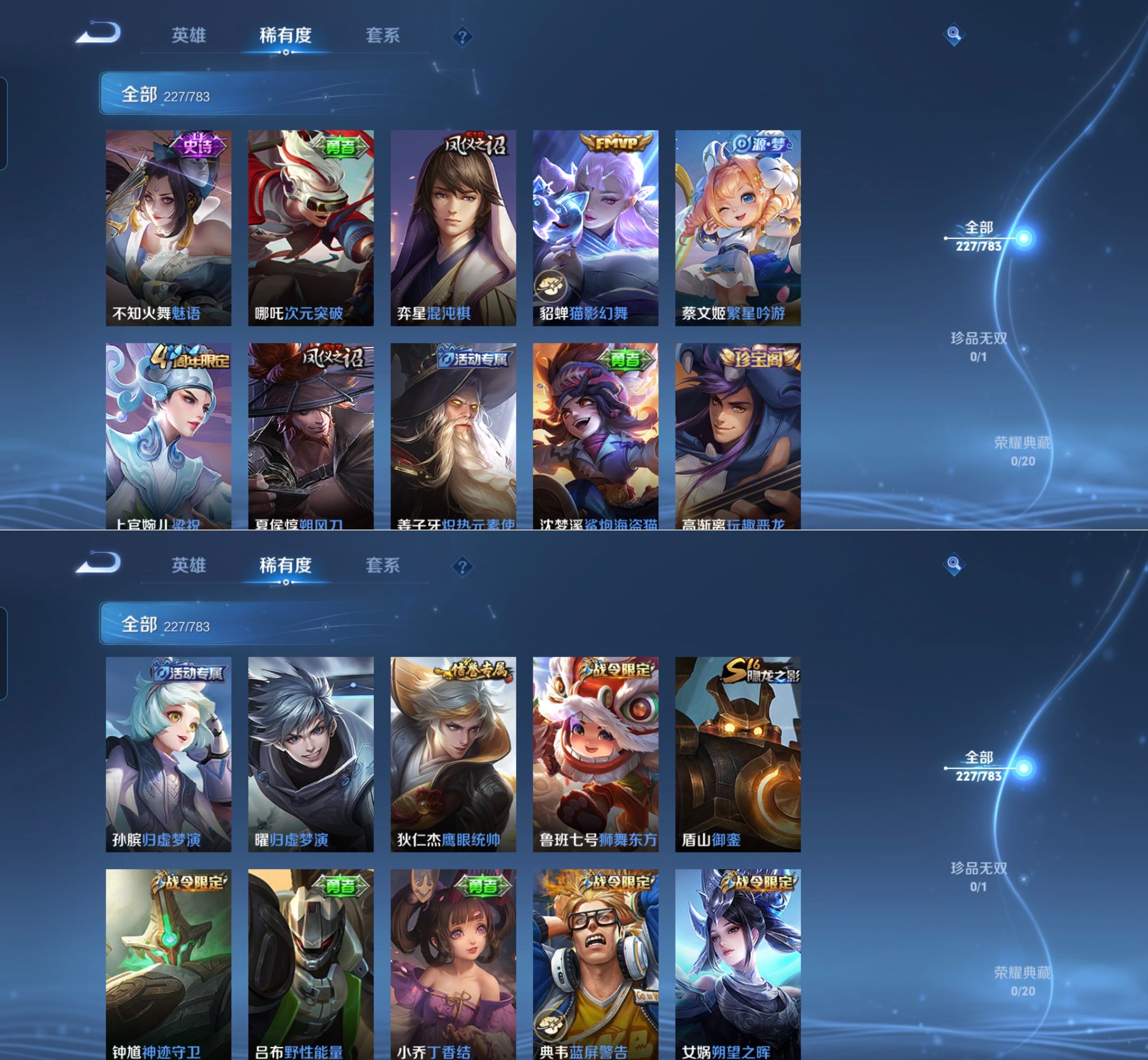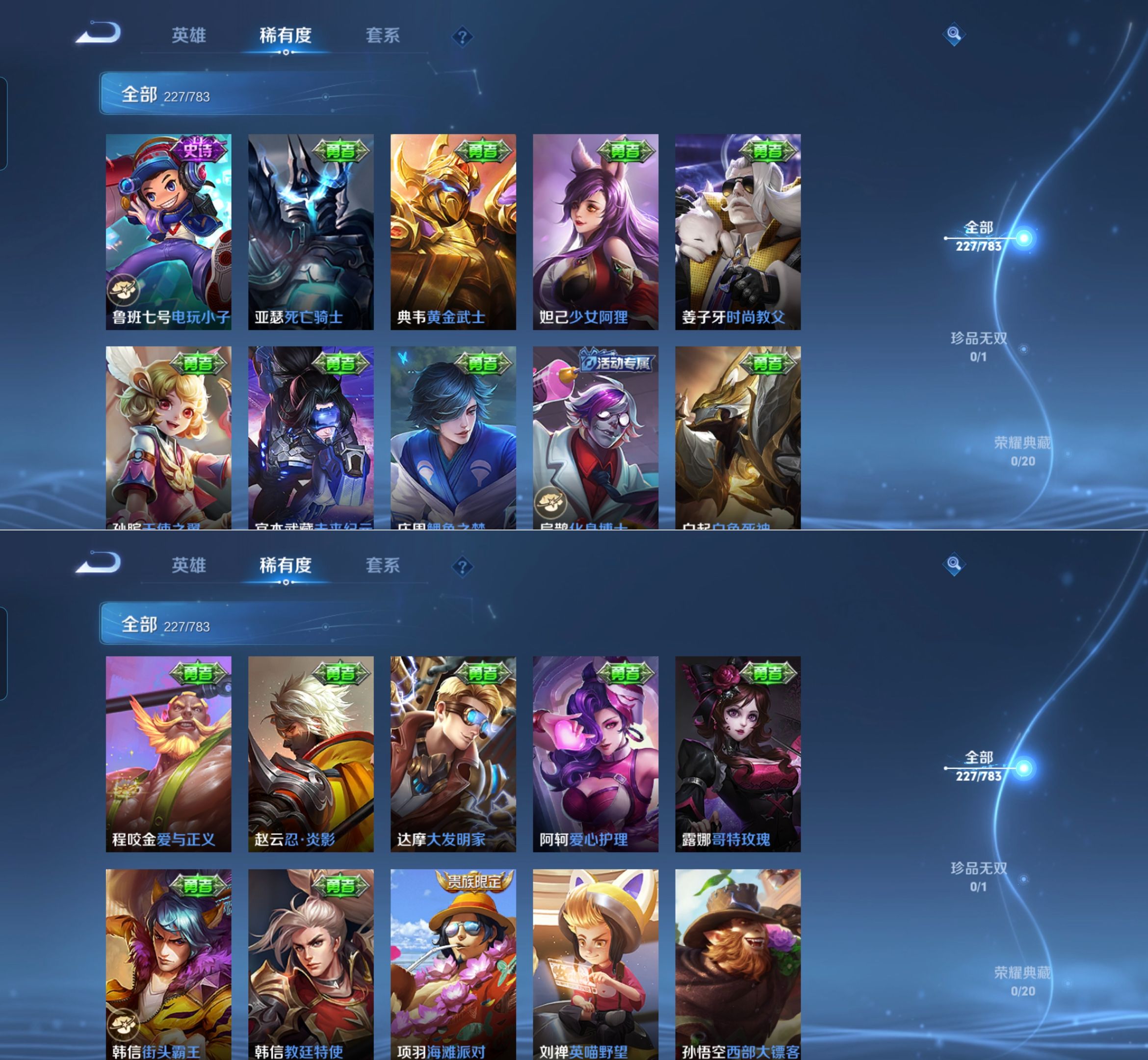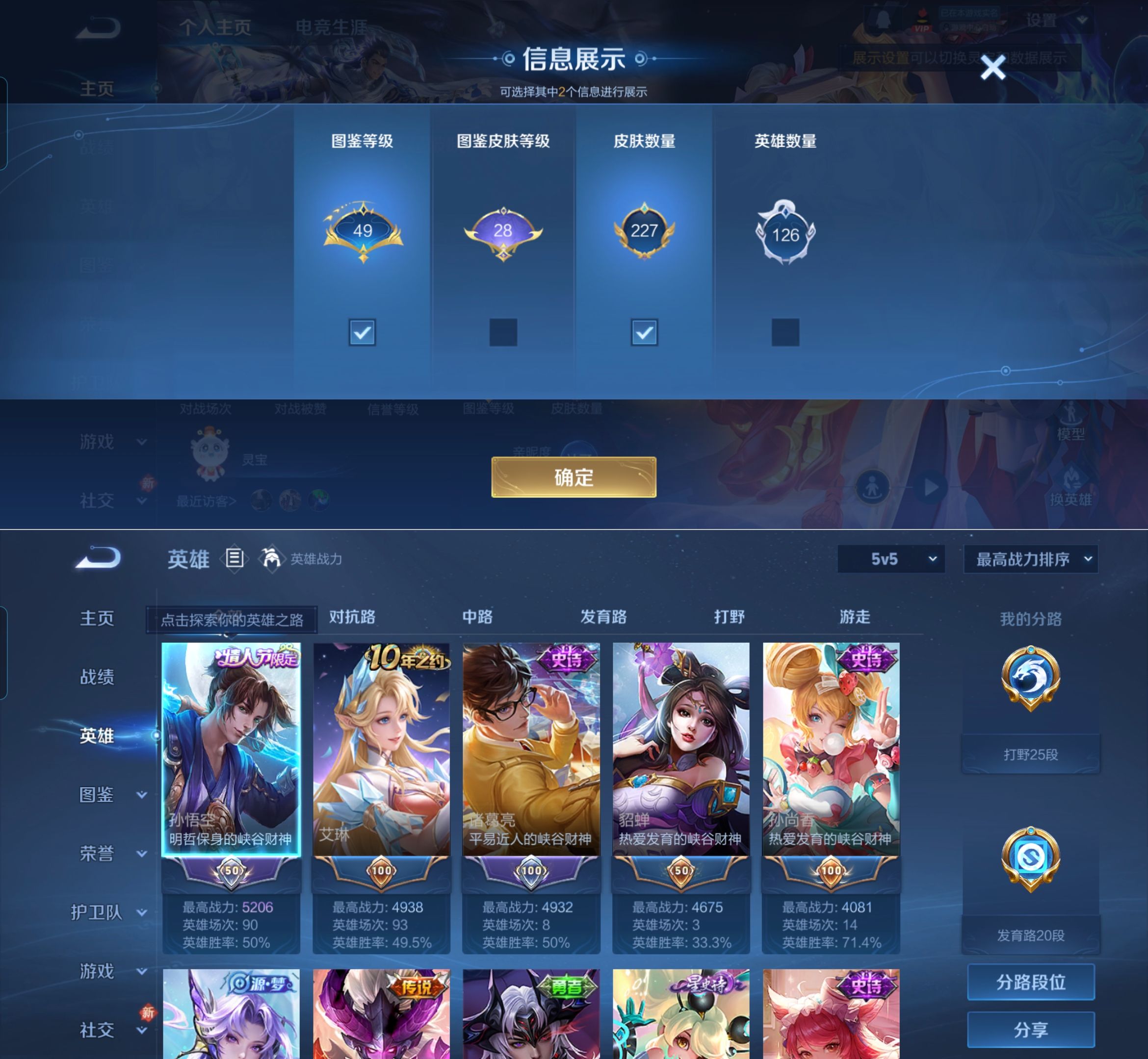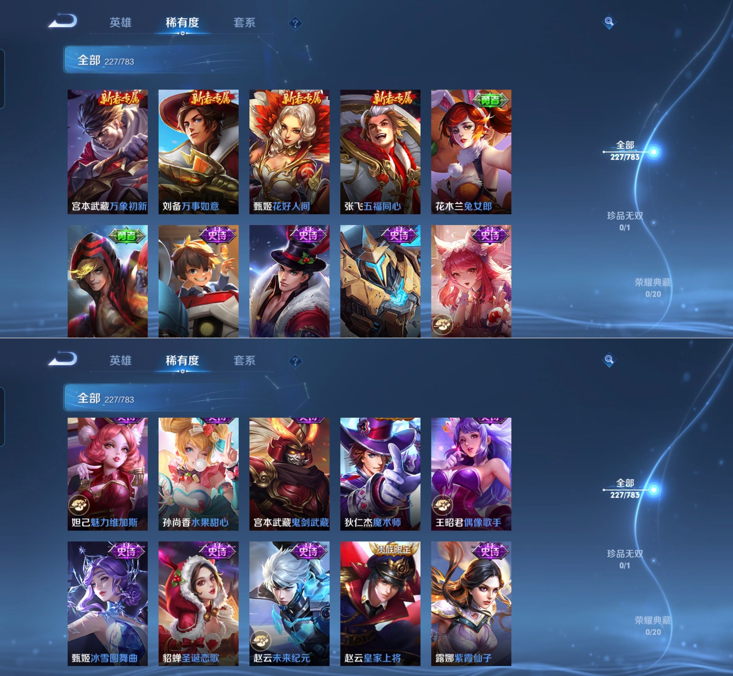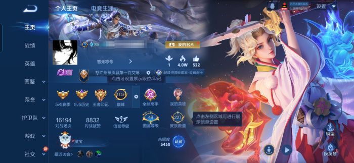 贵族等级:v7皮肤数:228情人节限定2 传说品质8 生肖限定2 英雄数:126