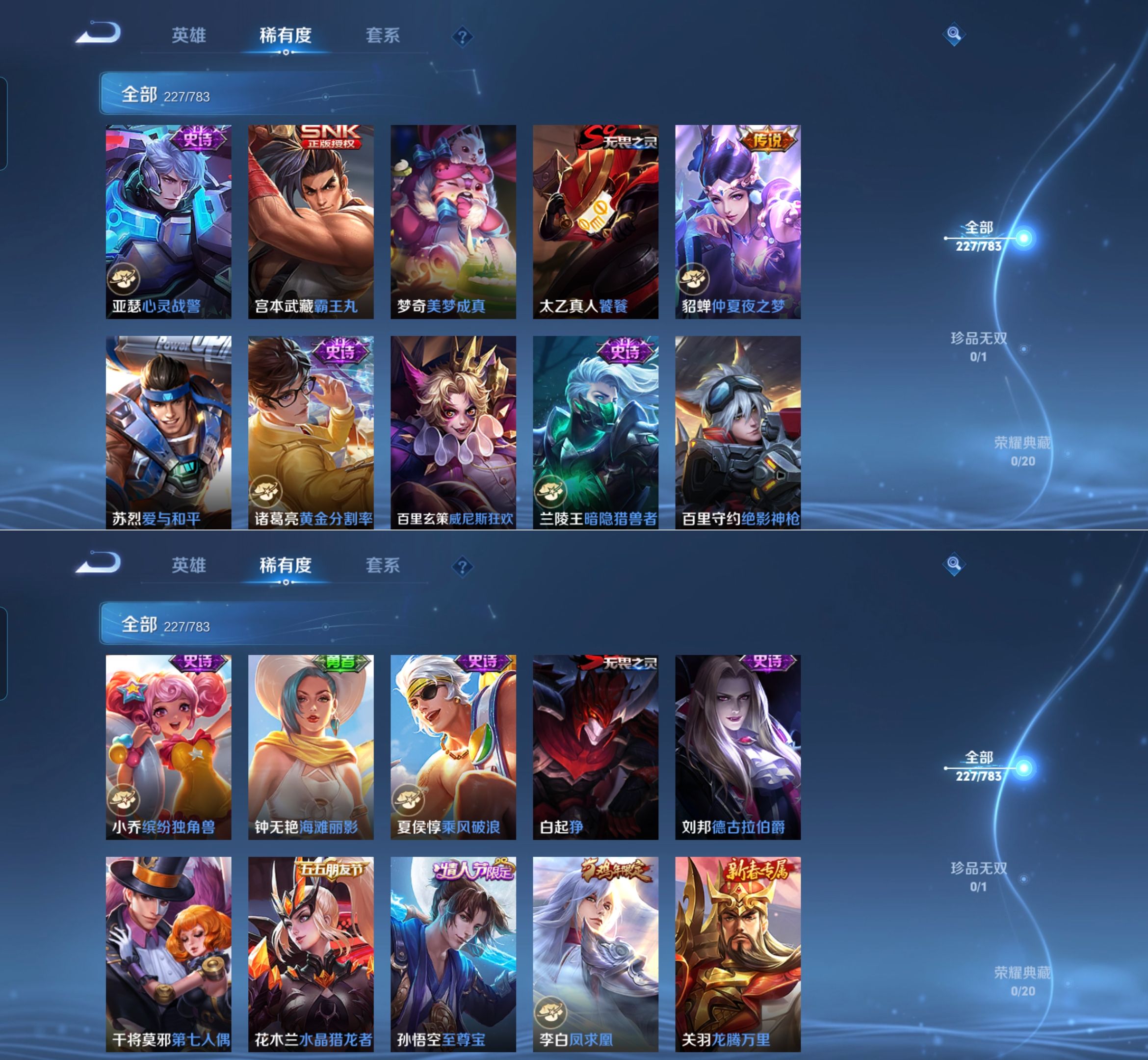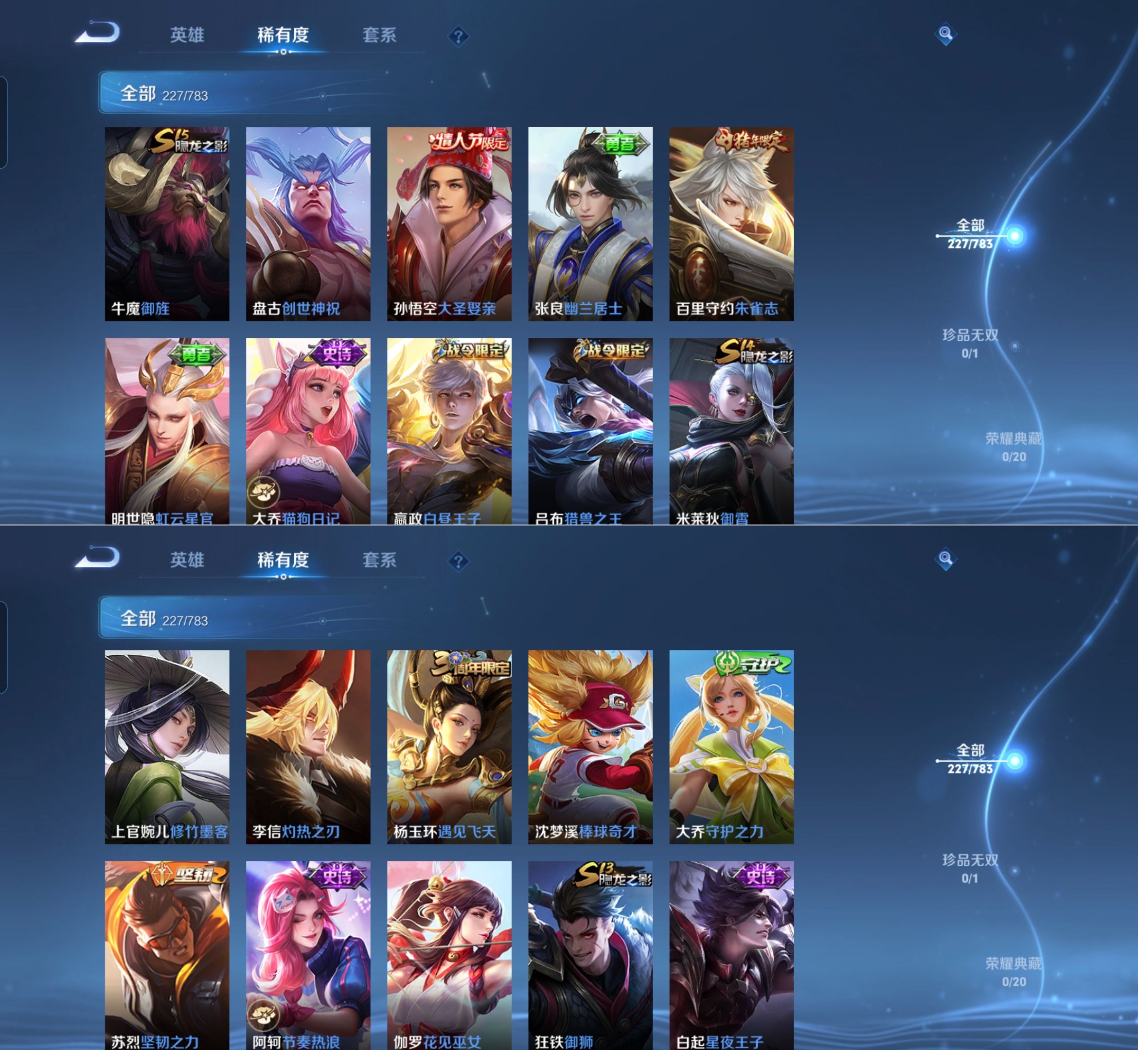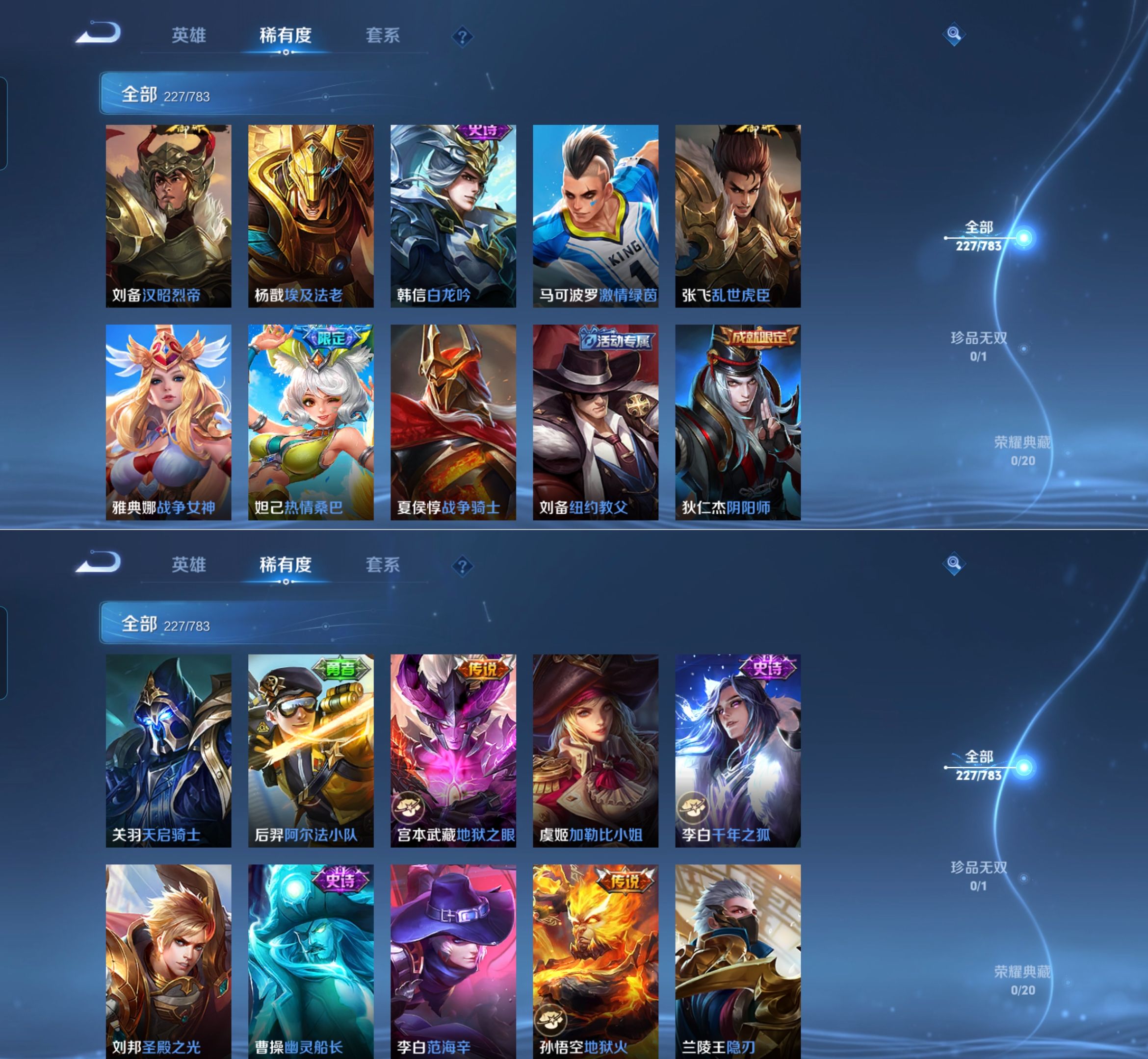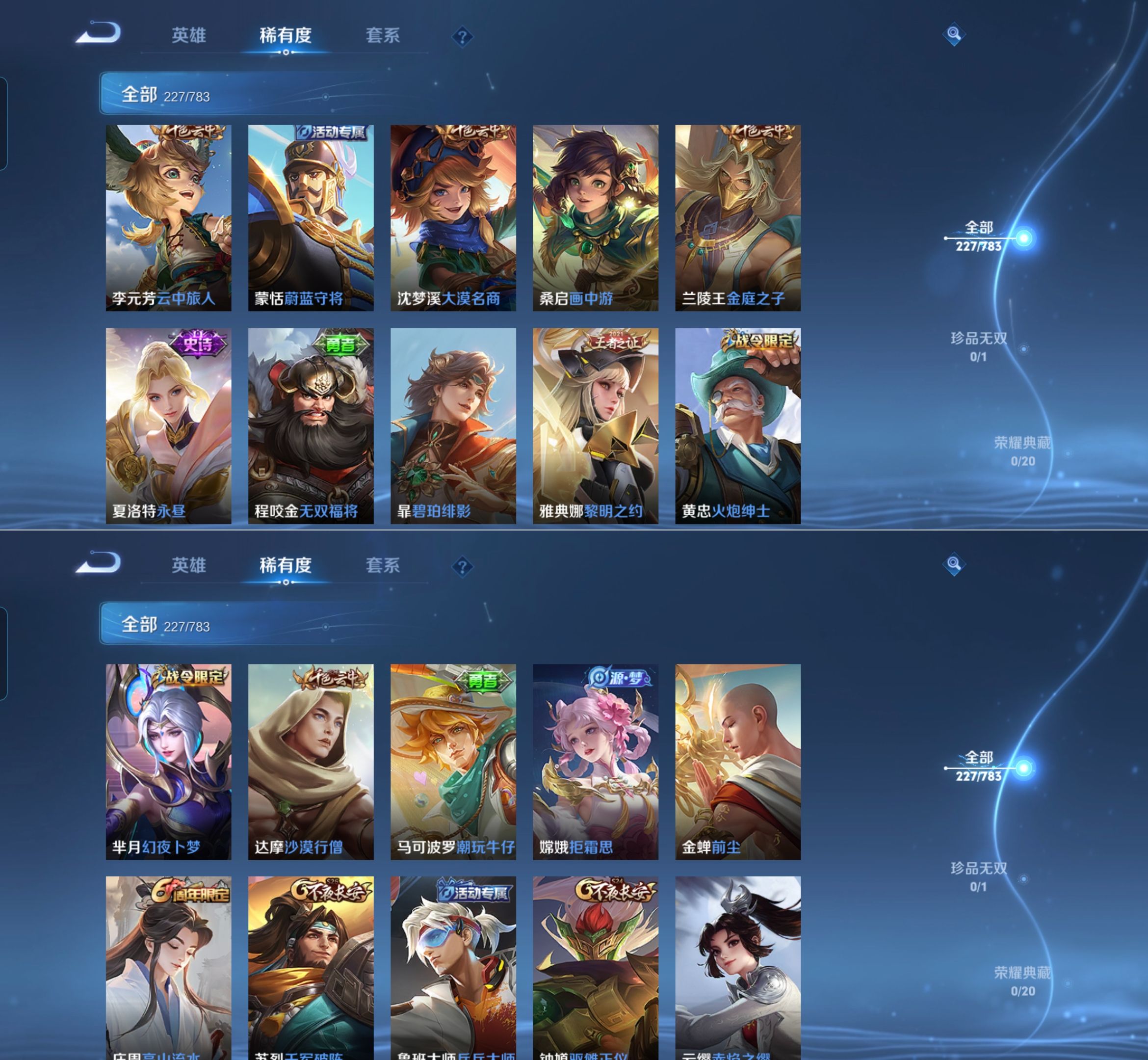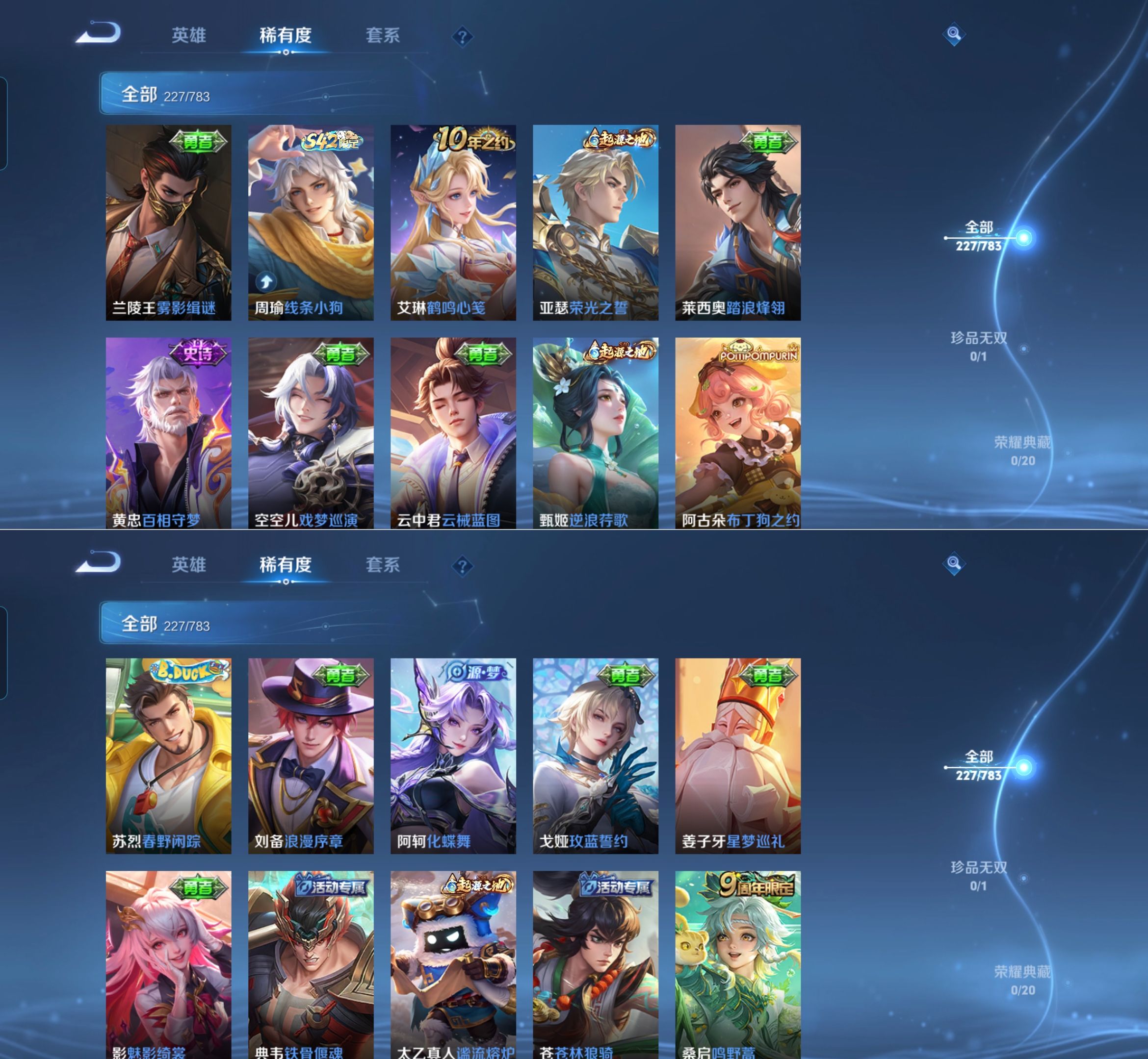 贵族等级:v7皮肤数:228情人节限定2 传说品质8 生肖限定2 英雄数:126