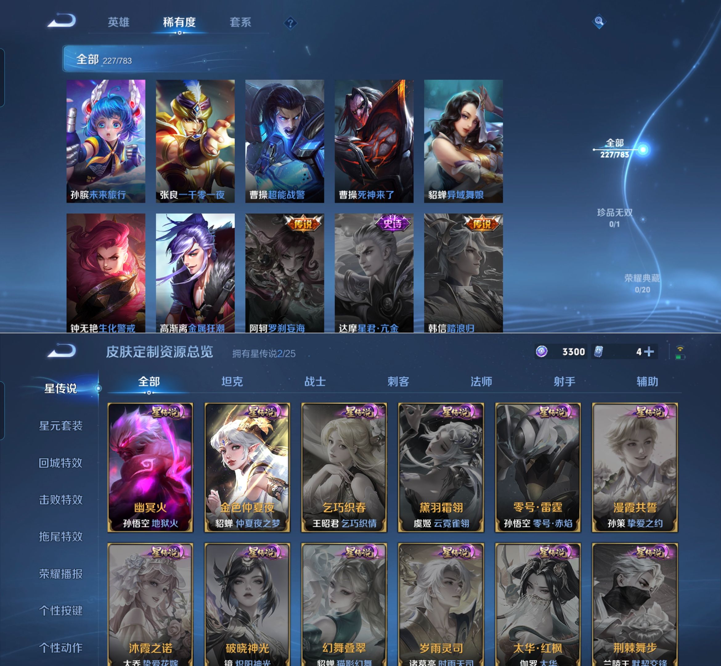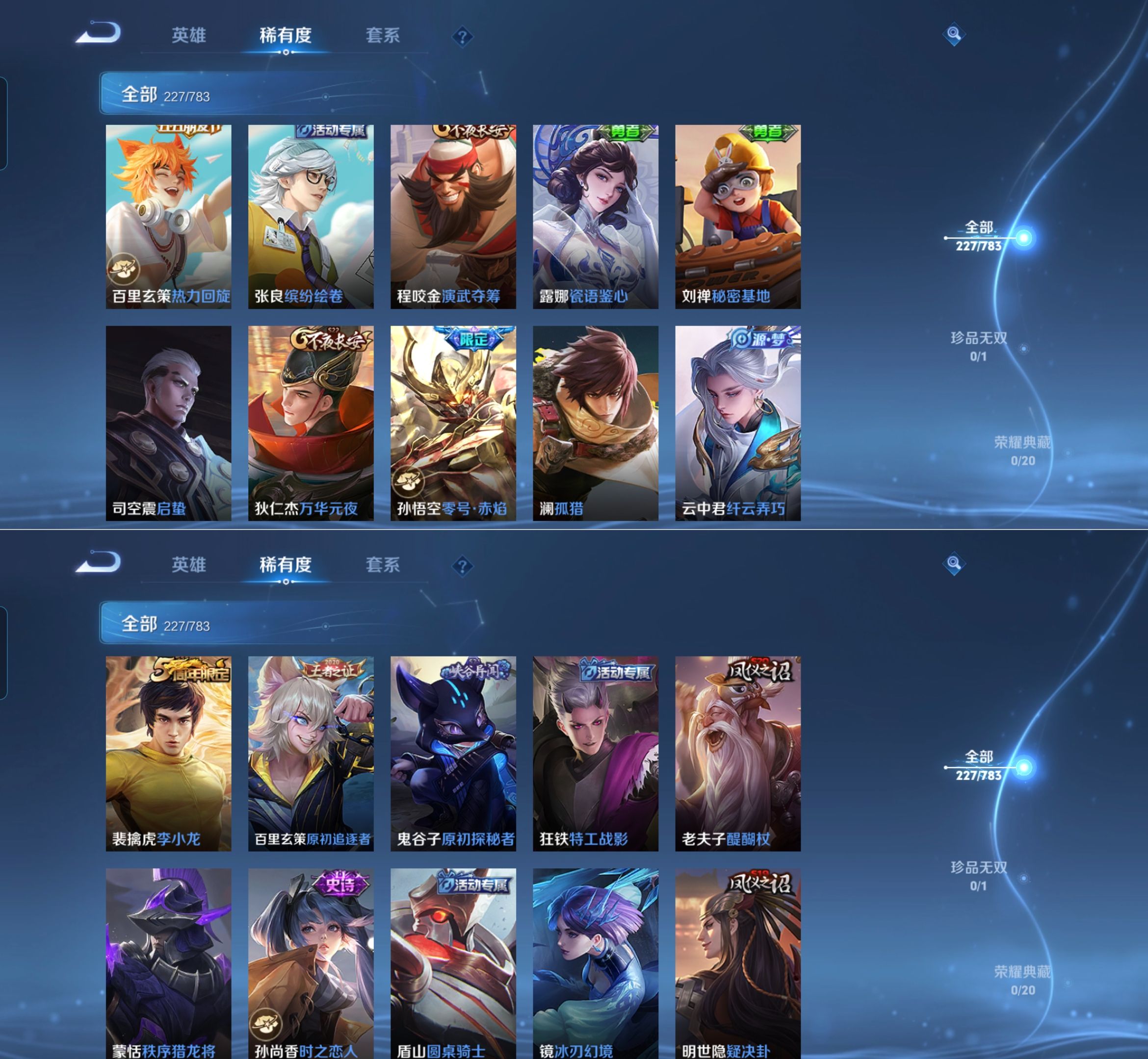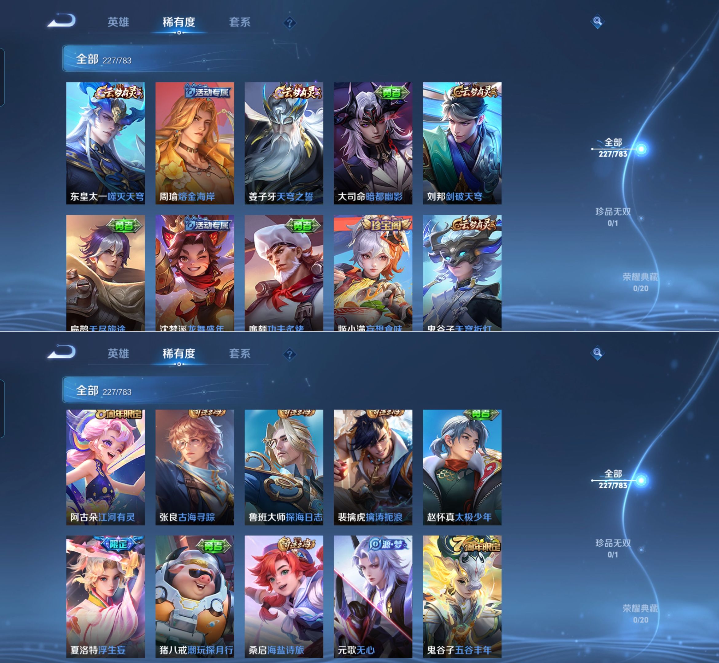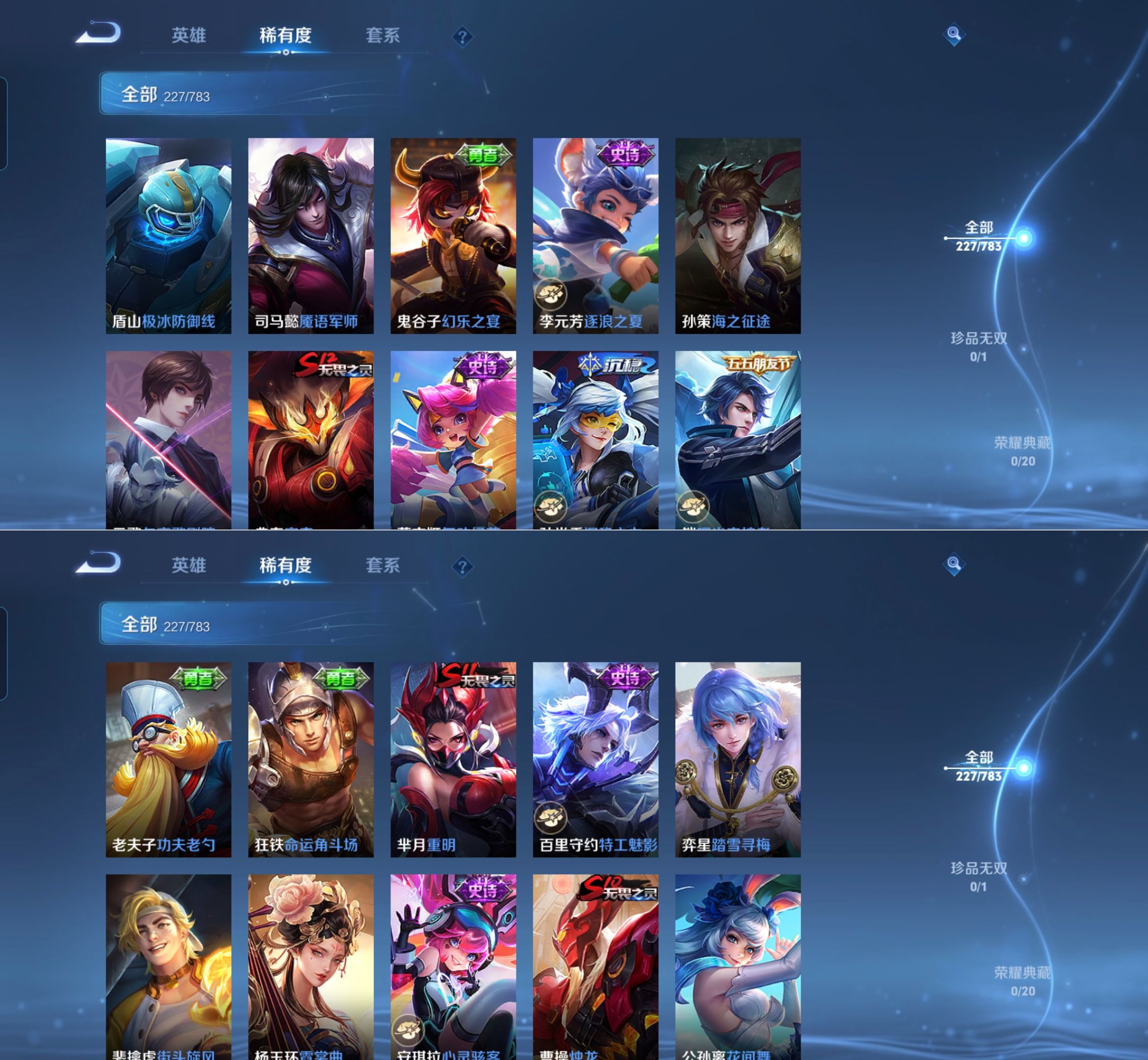贵族等级:v7皮肤数:228情人节限定2 传说品质8 生肖限定2 英雄数:126
