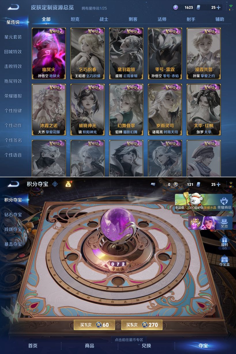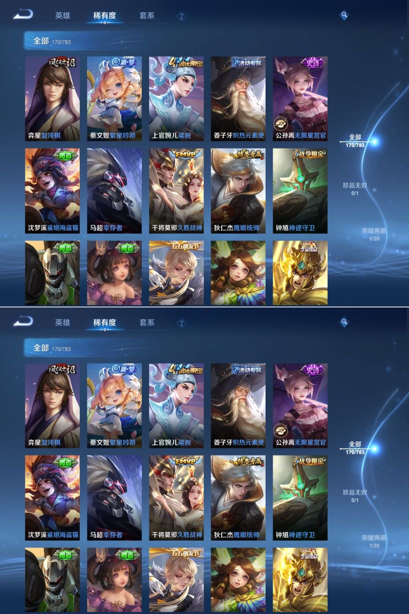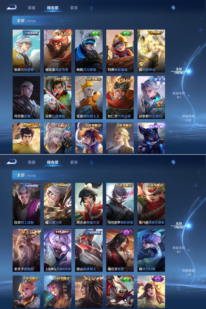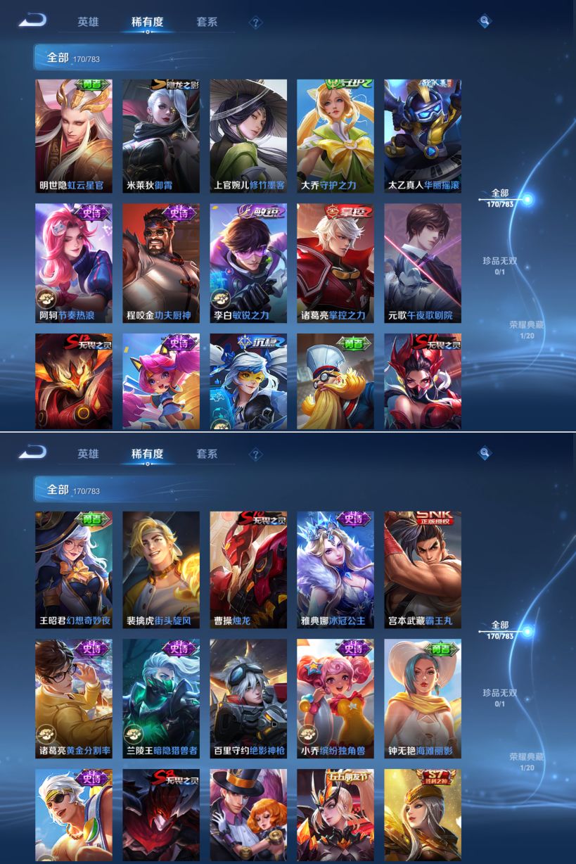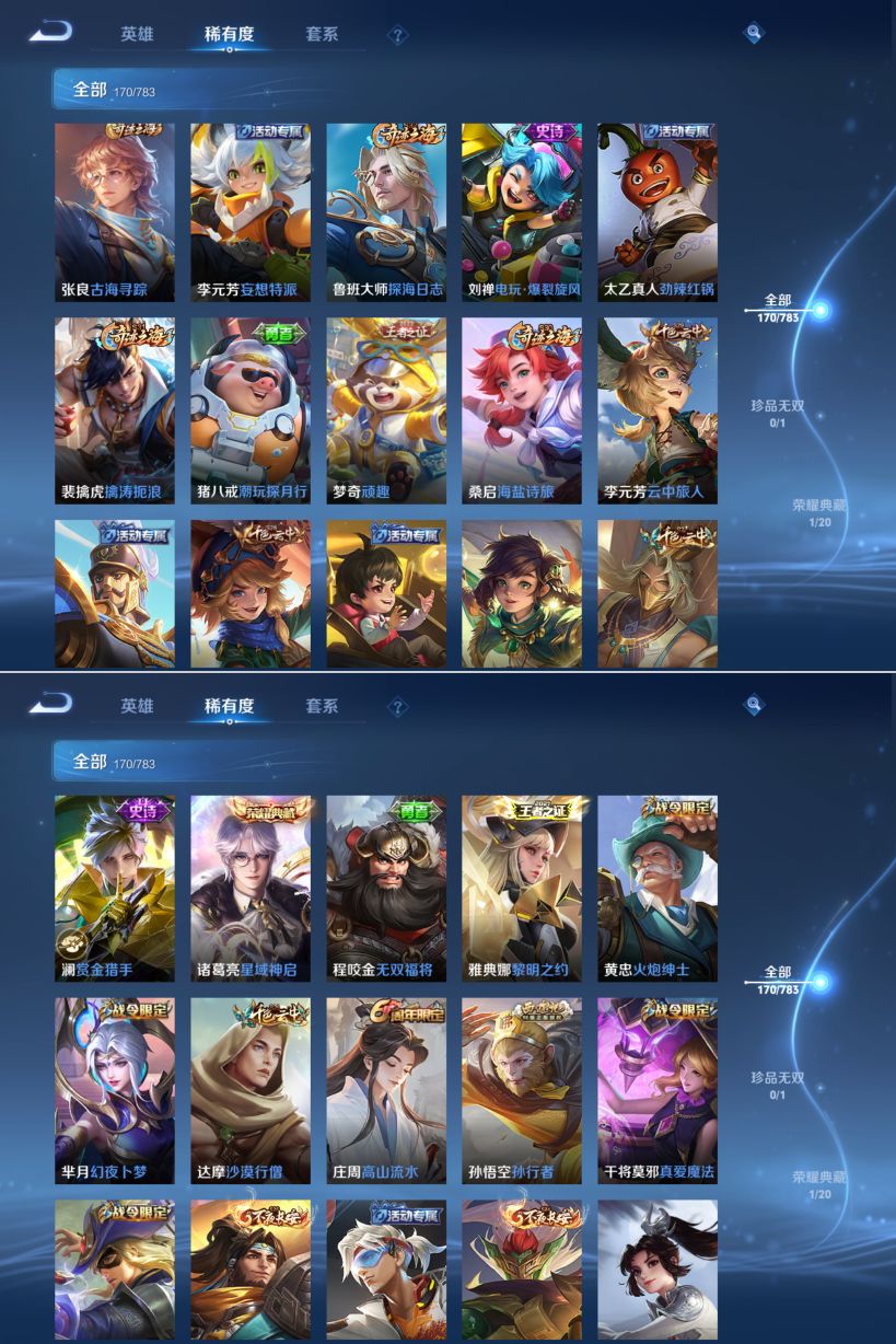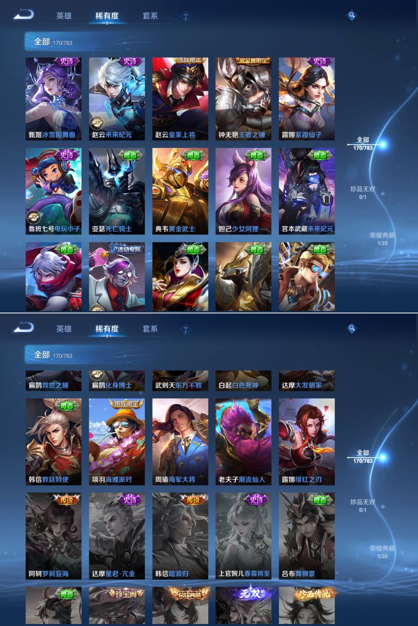 贵族等级:v7皮肤数:170荣耀典藏1 传说品质8 英雄数:124