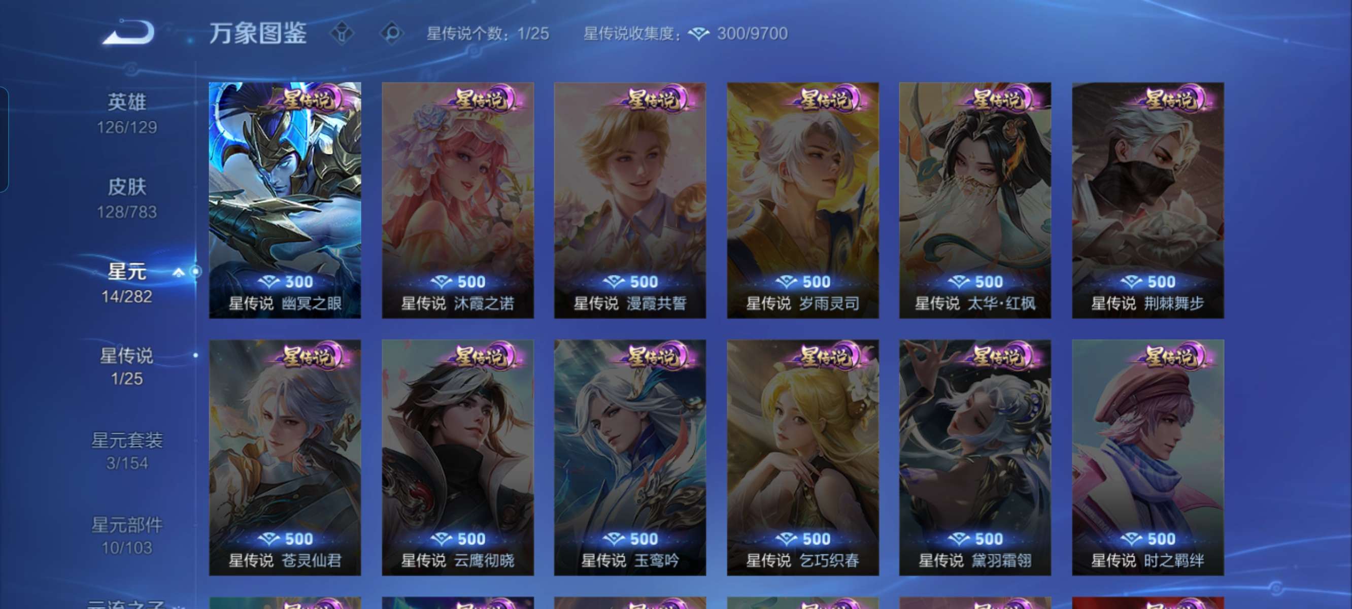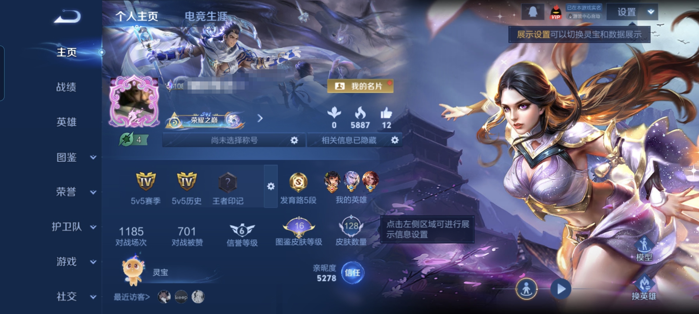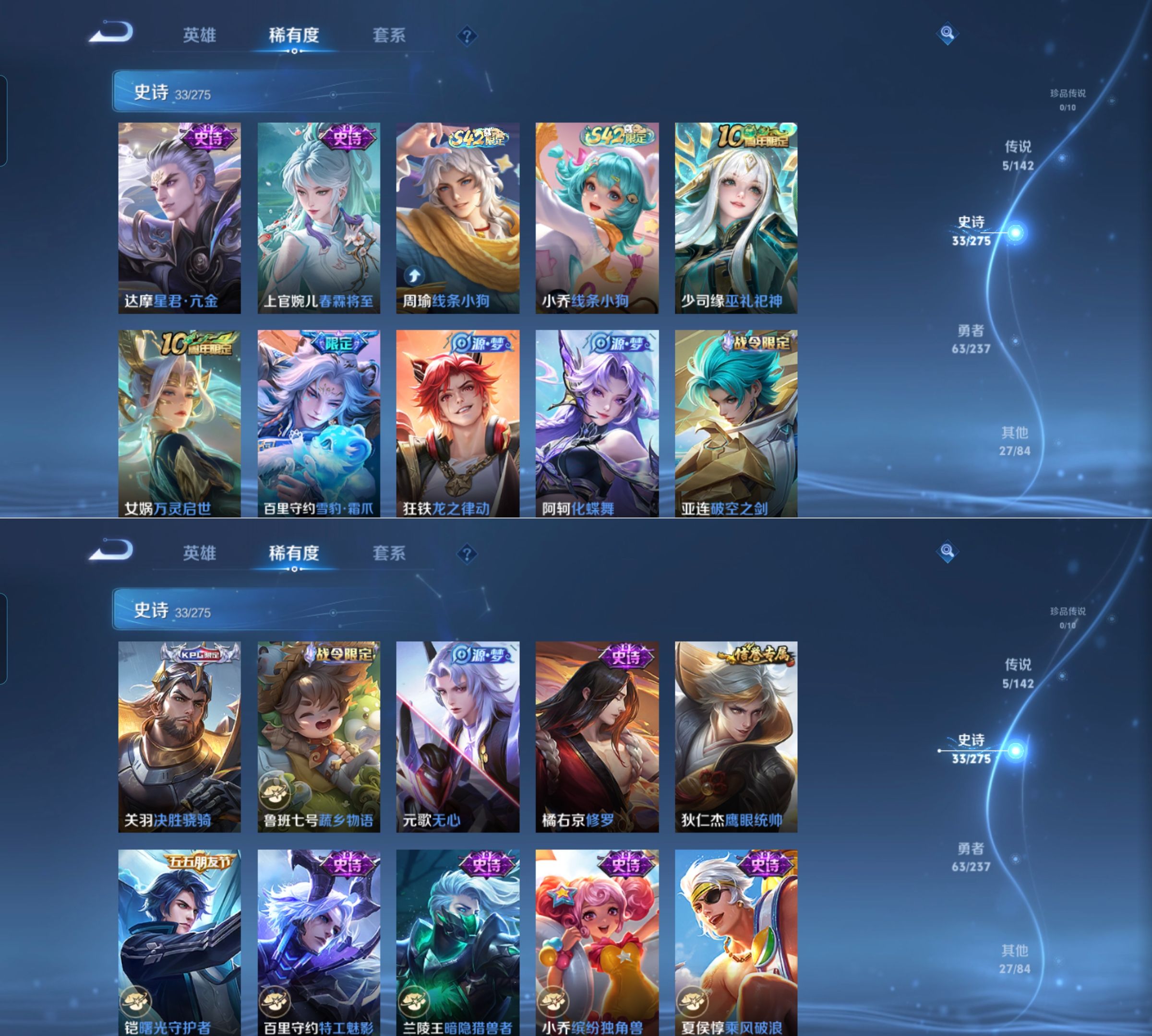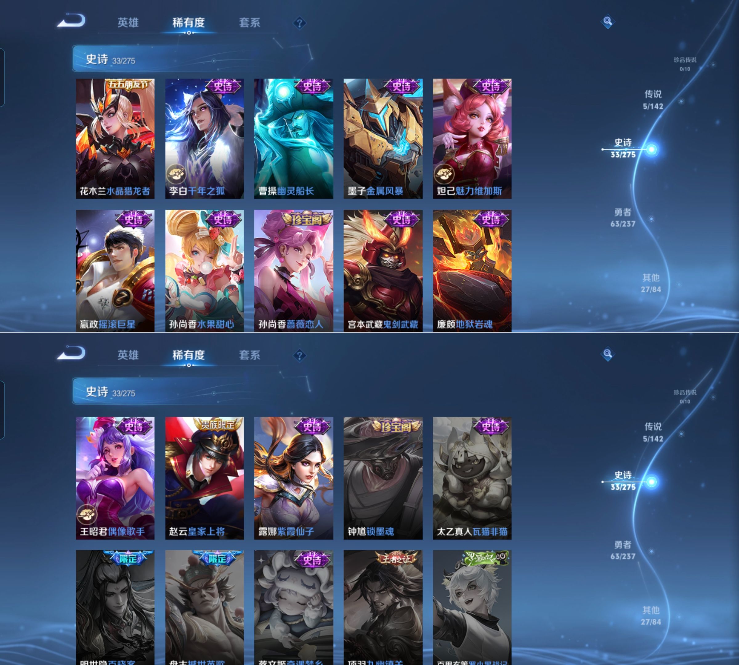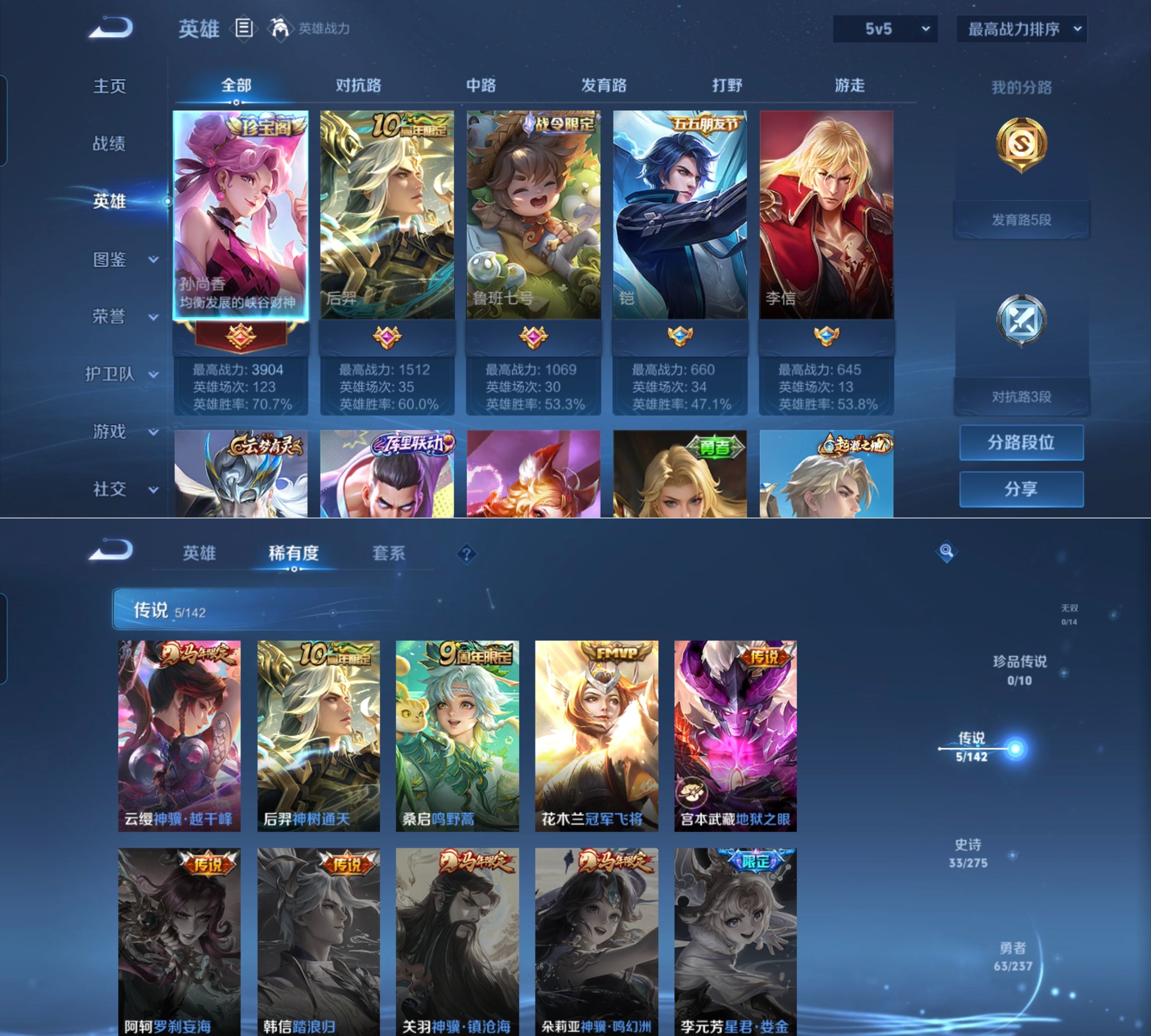 贵族等级:v5皮肤数:128传说品质5 生肖限定1 英雄数:126