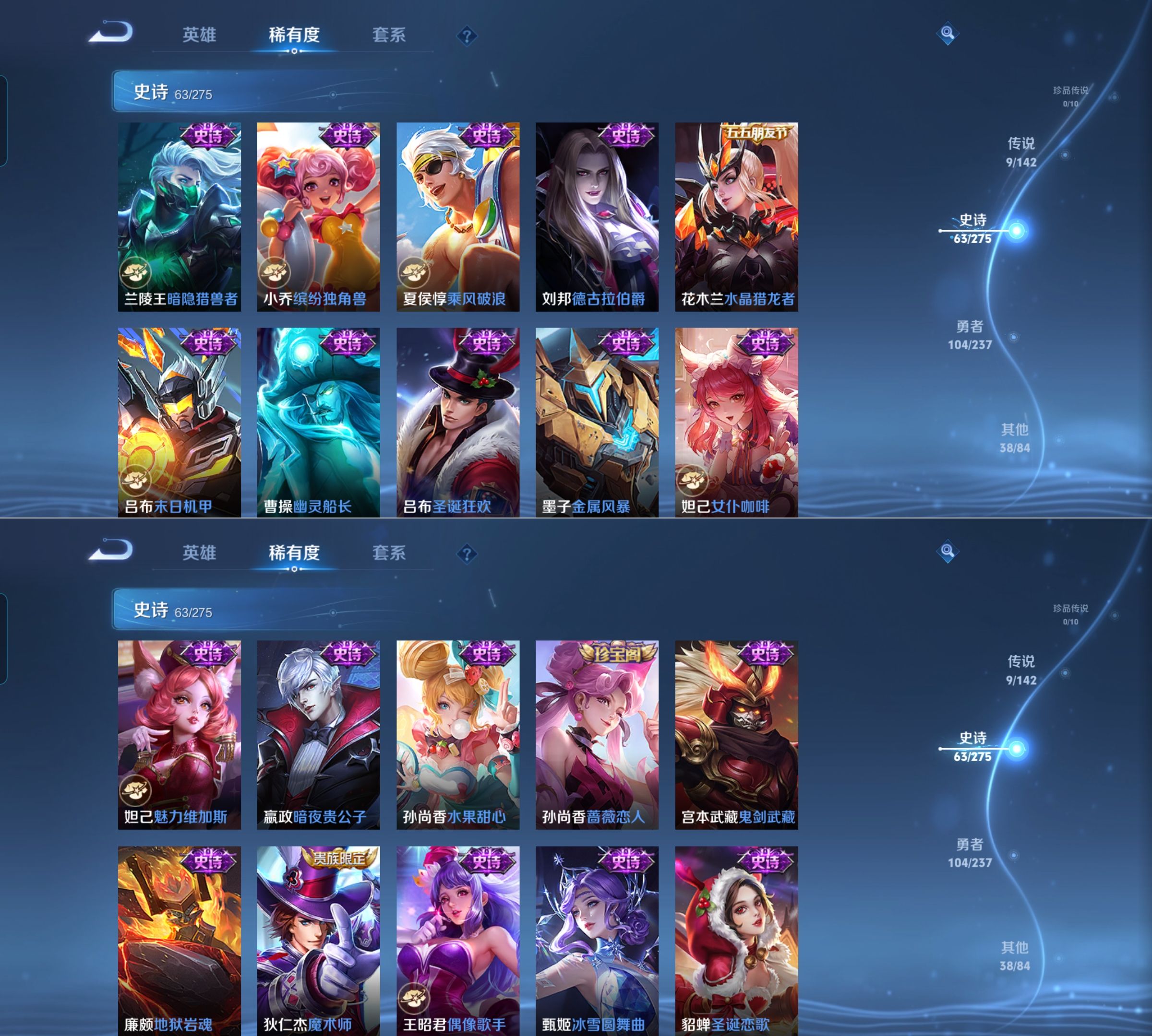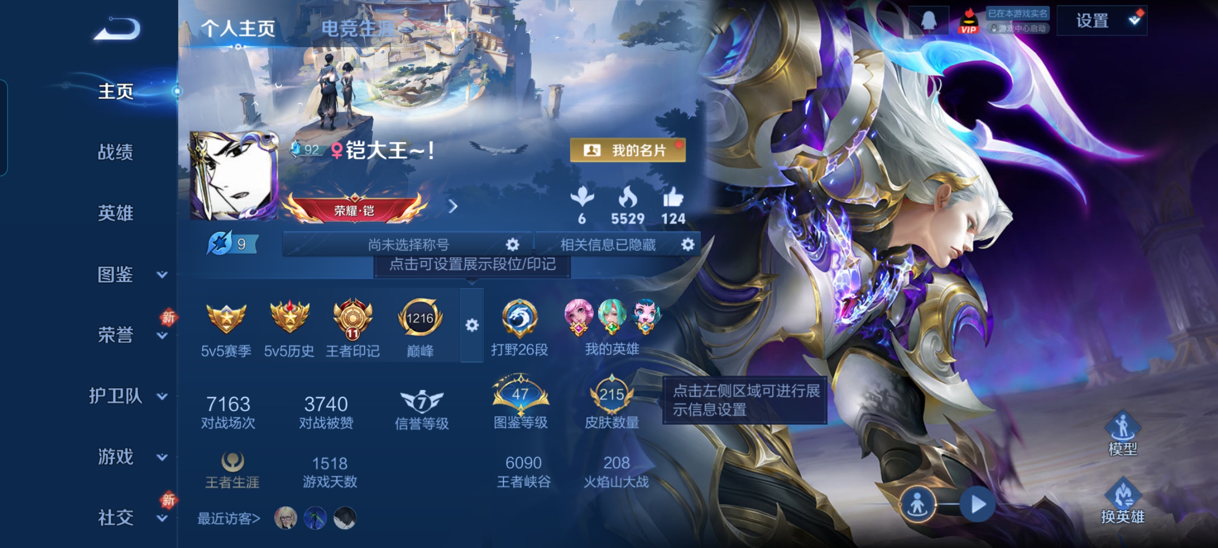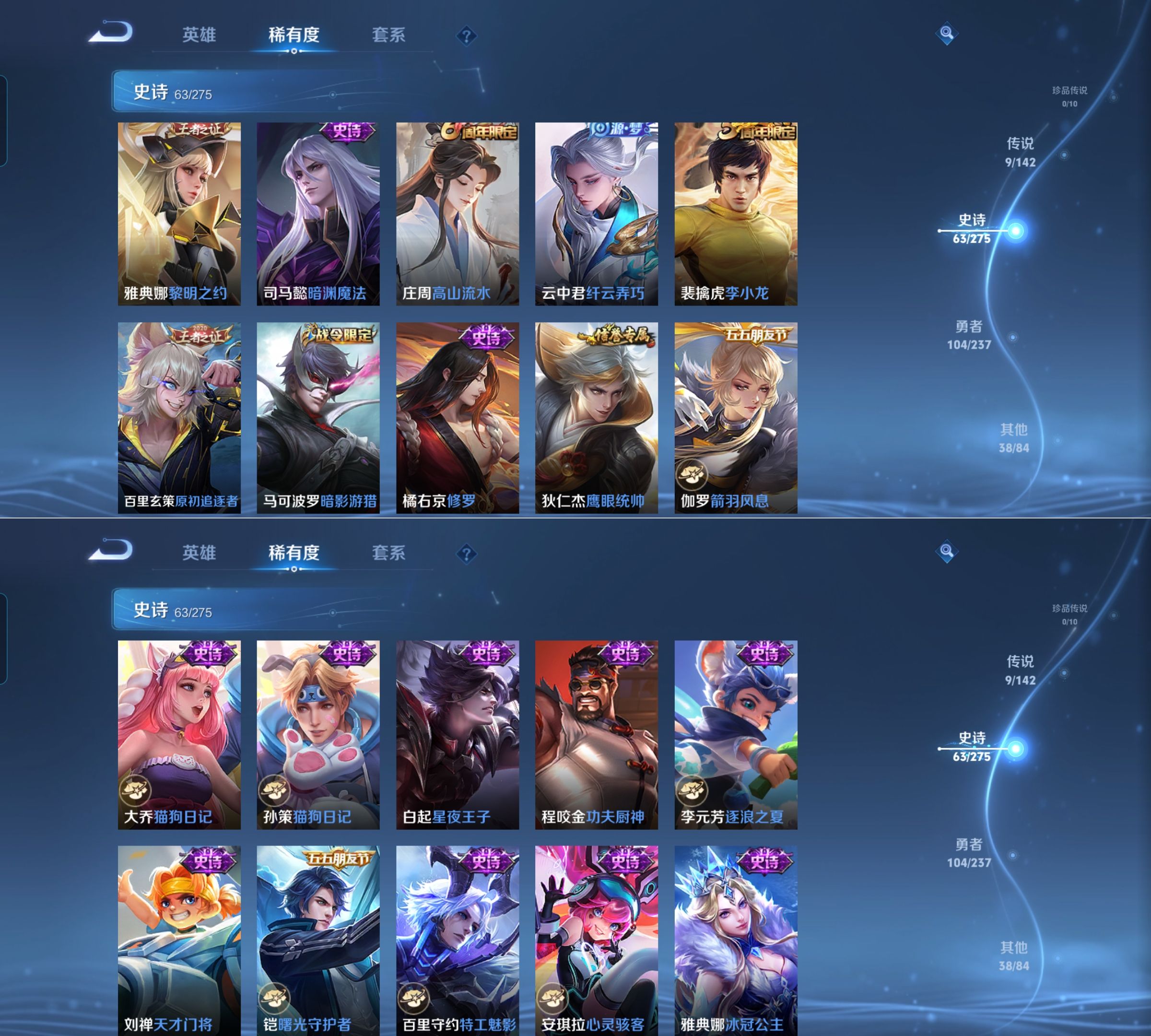 贵族等级:v6皮肤数:215传说品质9 生肖限定2 荣耀典藏1 英雄数:128