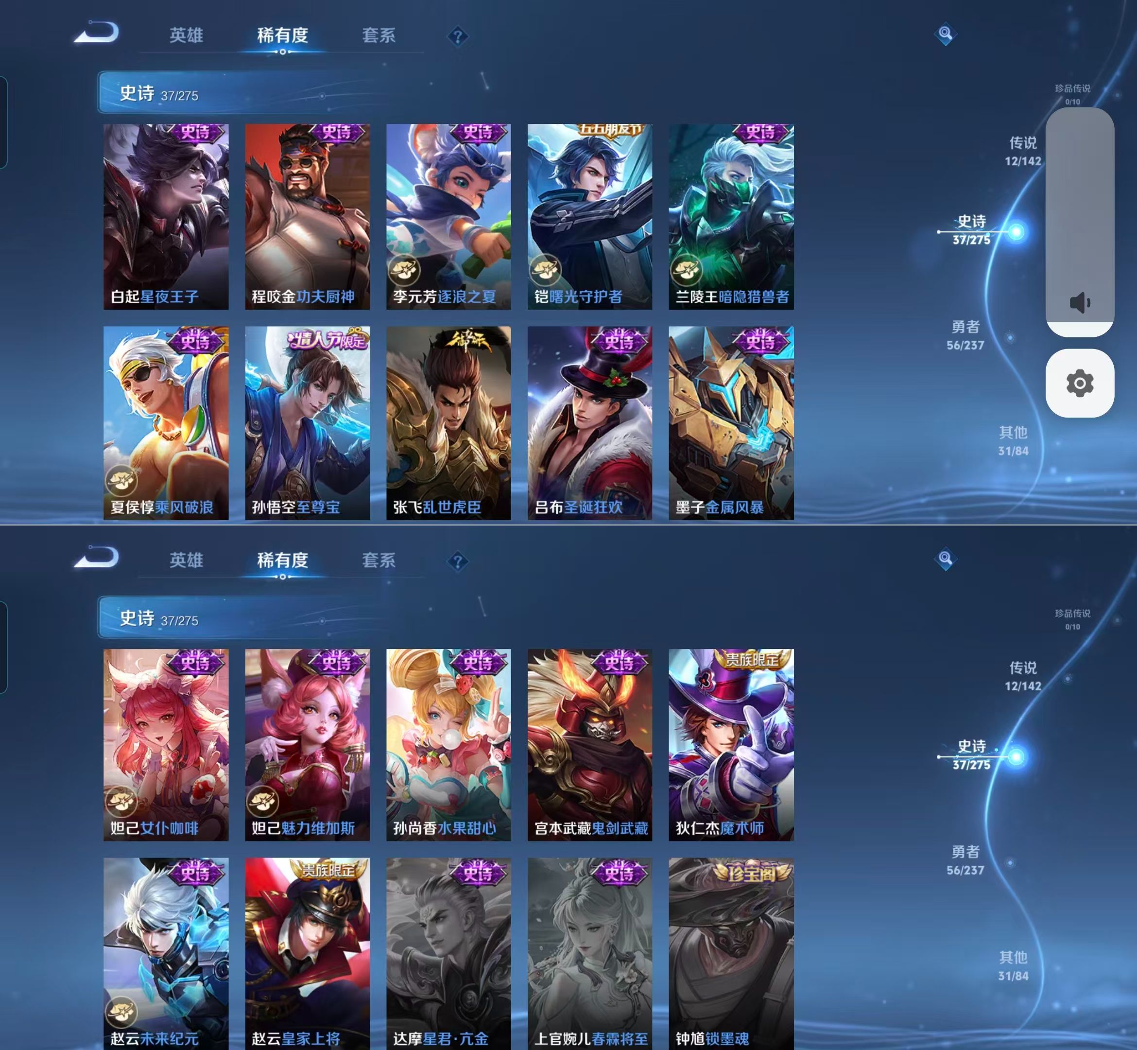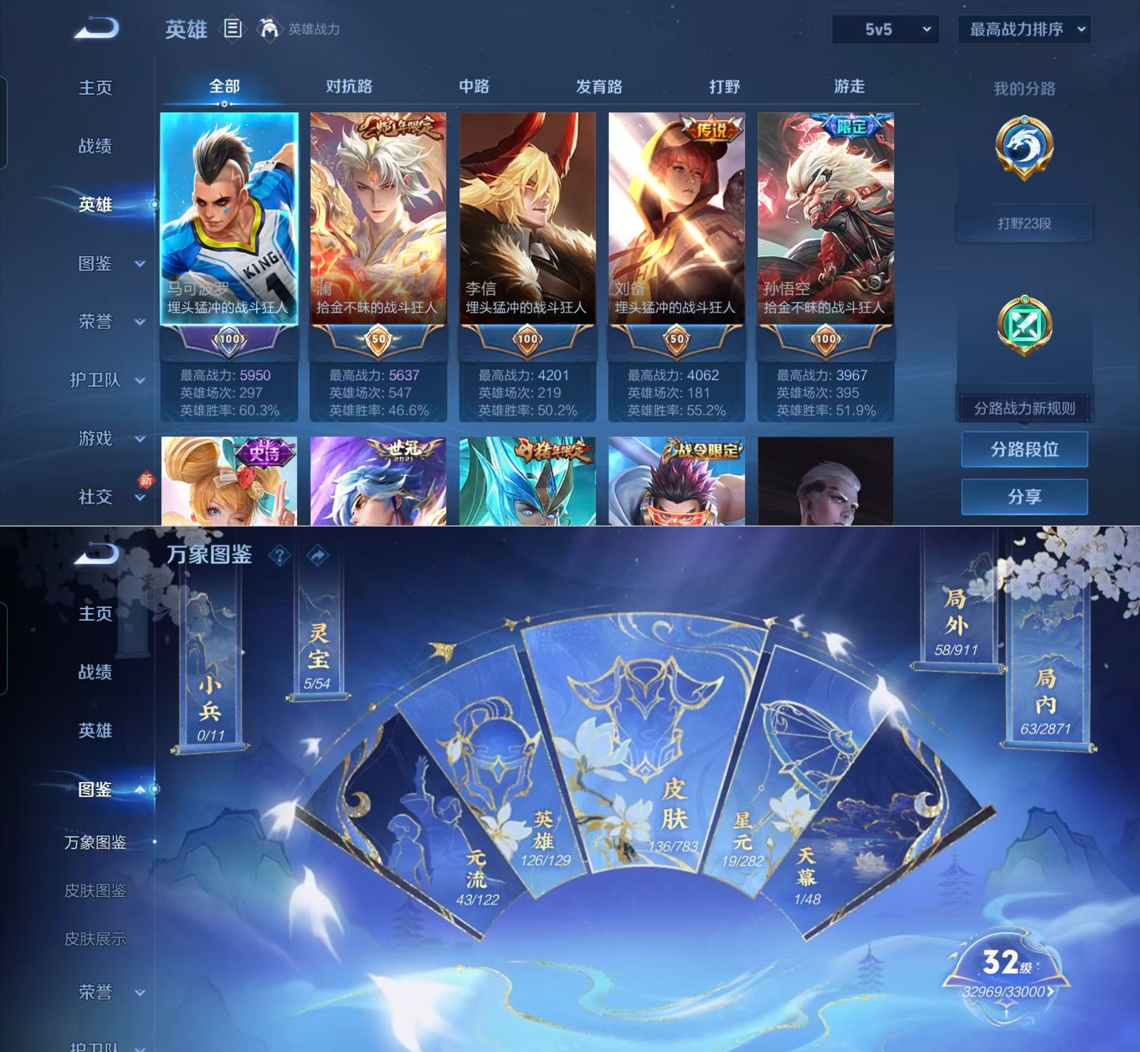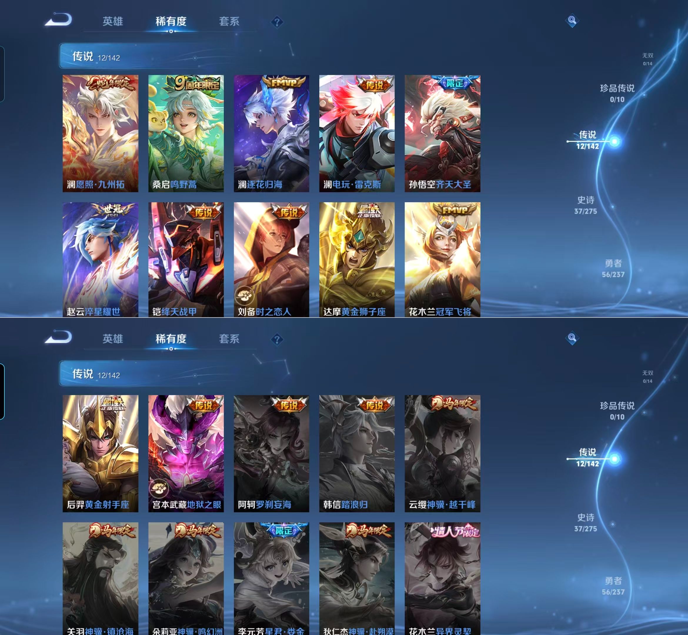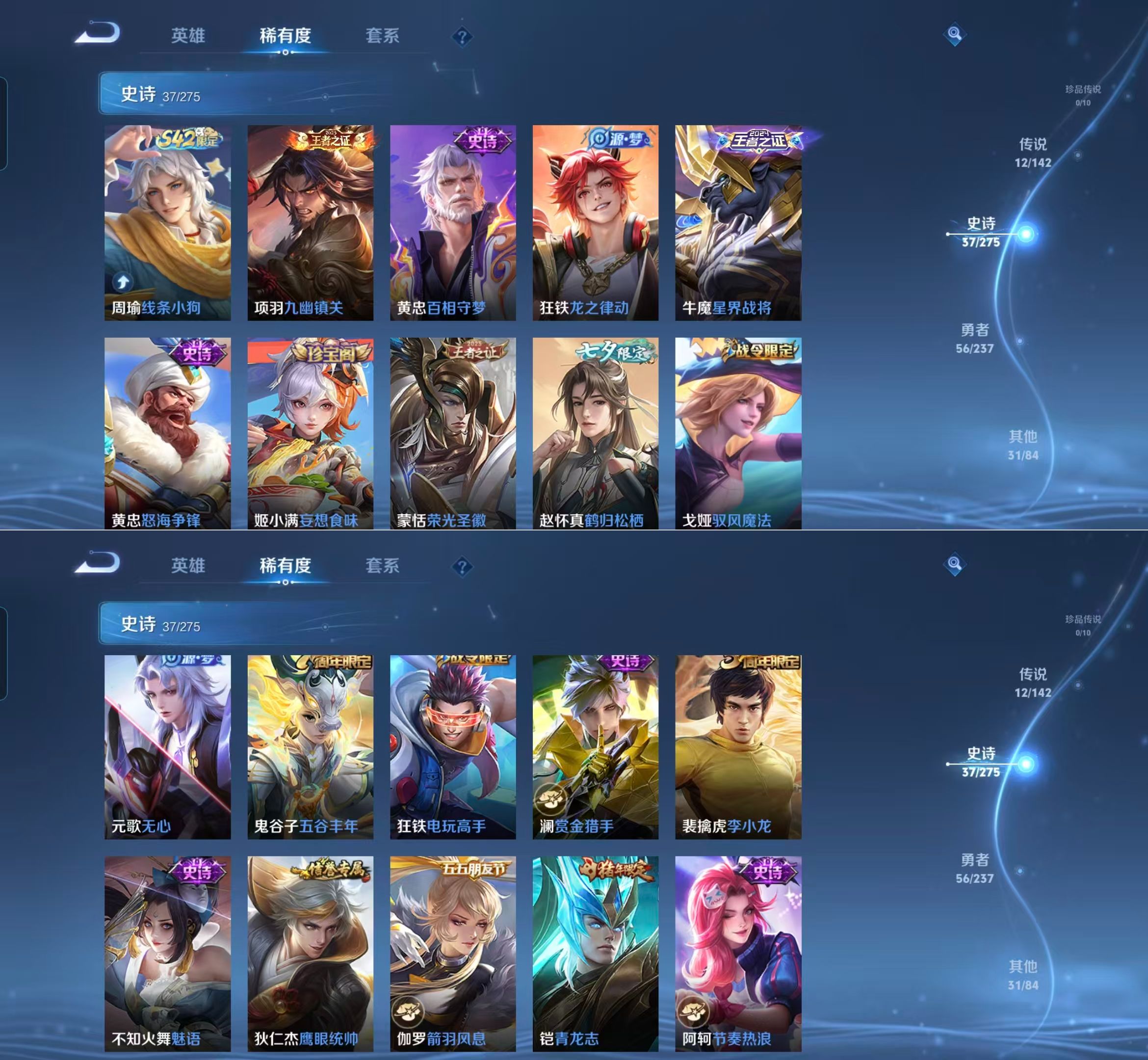 贵族等级:v7皮肤数:136传说品质12 生肖限定2 情人节限定1 英雄数:126