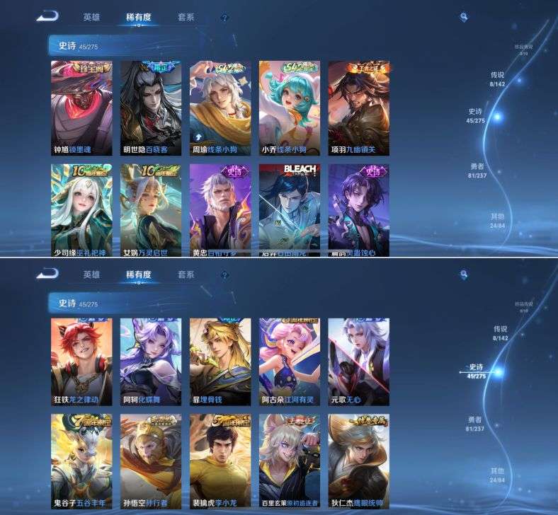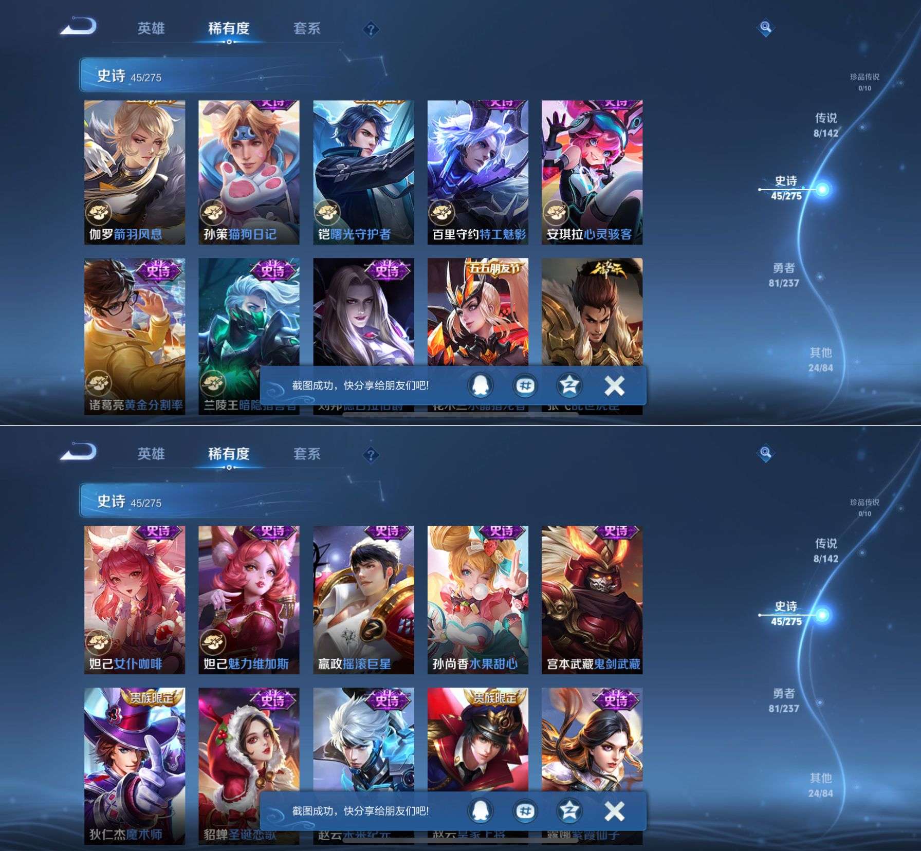 贵族等级:v6皮肤数:158传说品质8 生肖限定2 英雄数:125