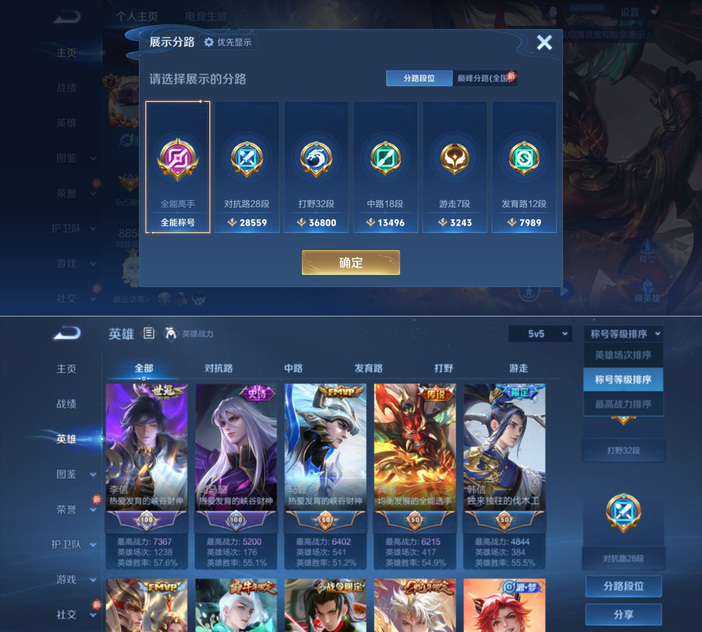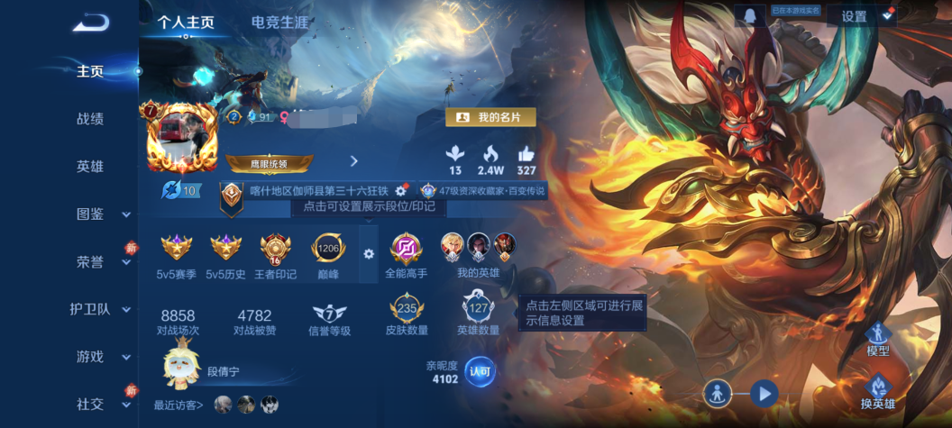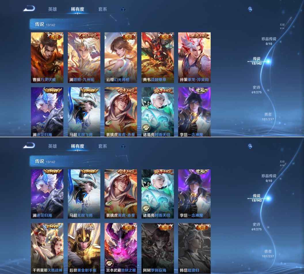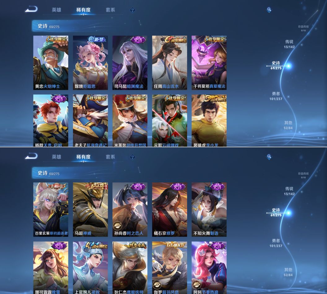 贵族等级:v7皮肤数:235传说品质13 生肖限定5 英雄数:127