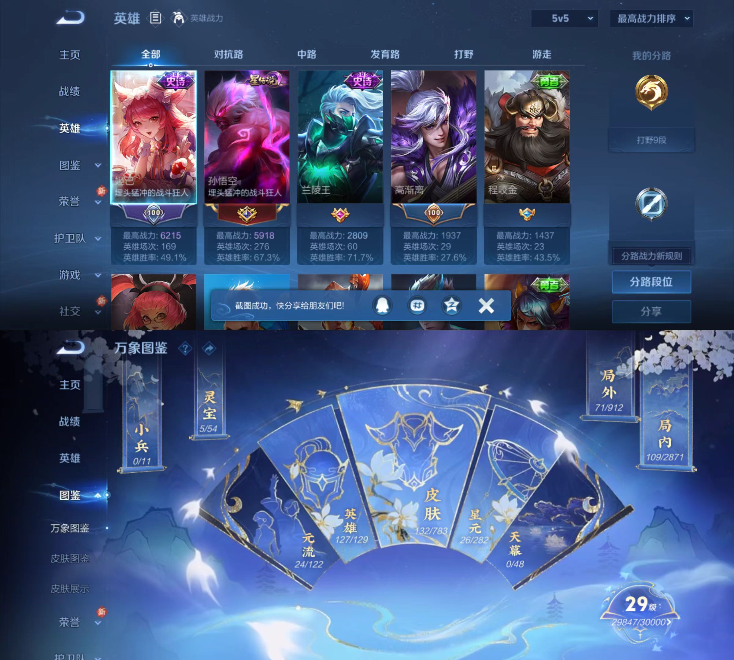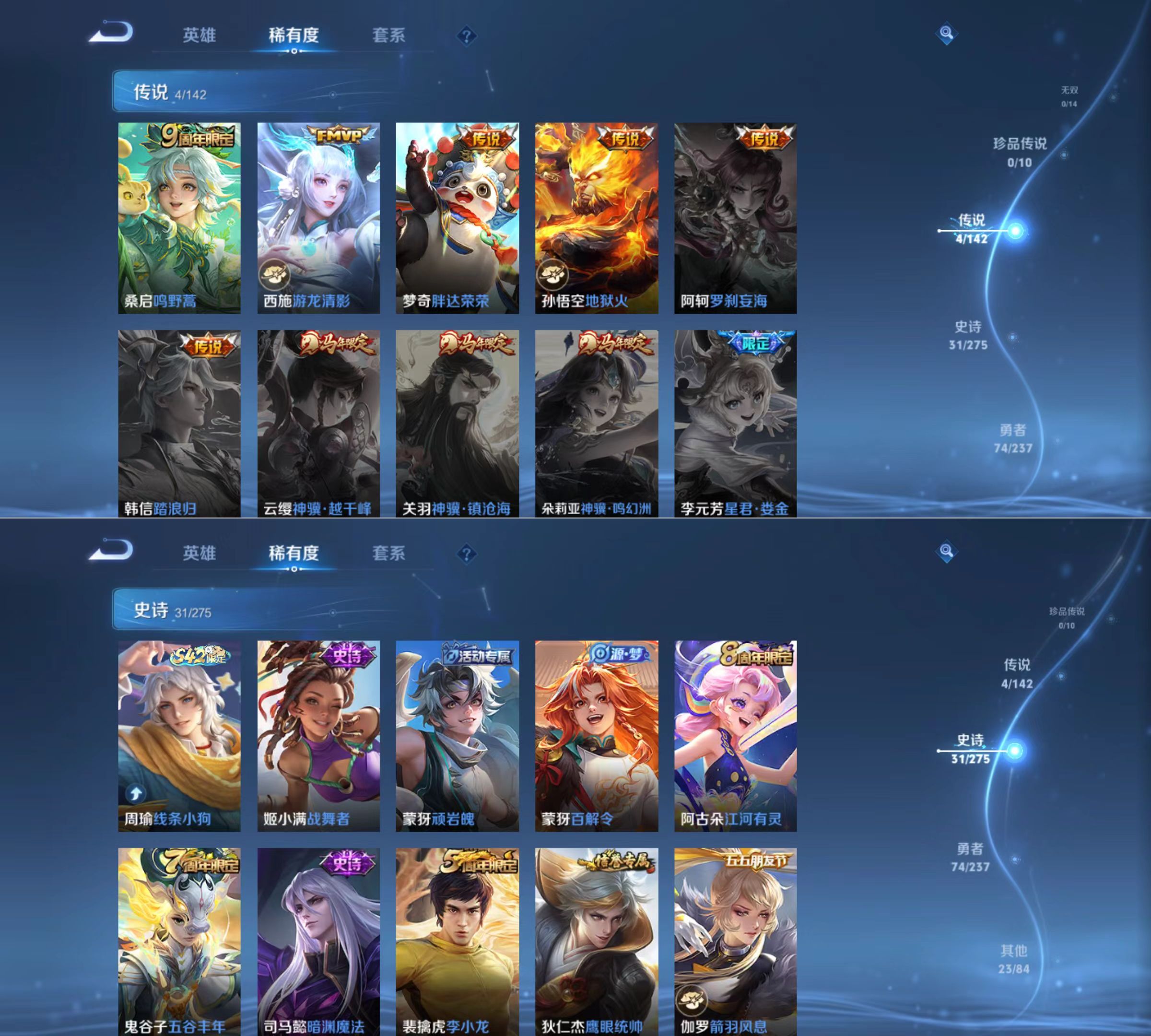 贵族等级:v3皮肤数:132传说品质4 英雄数:127