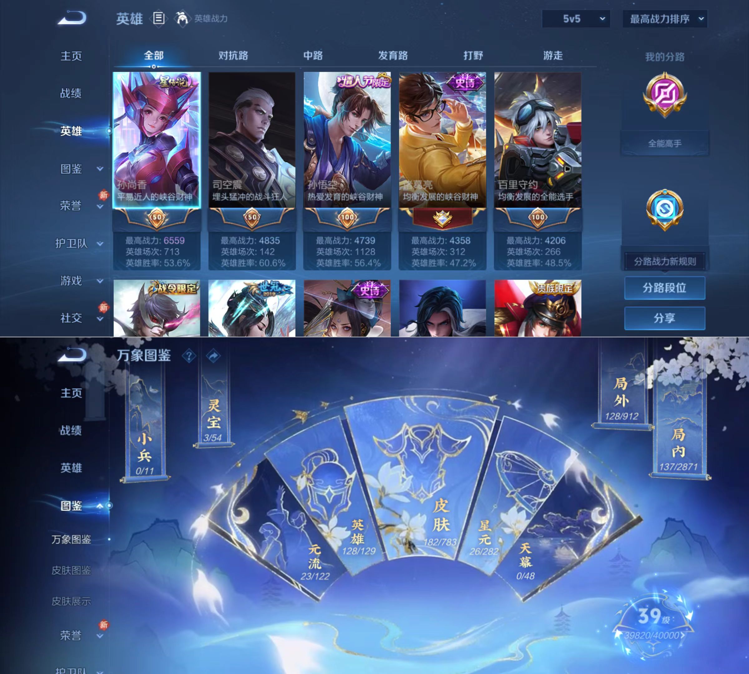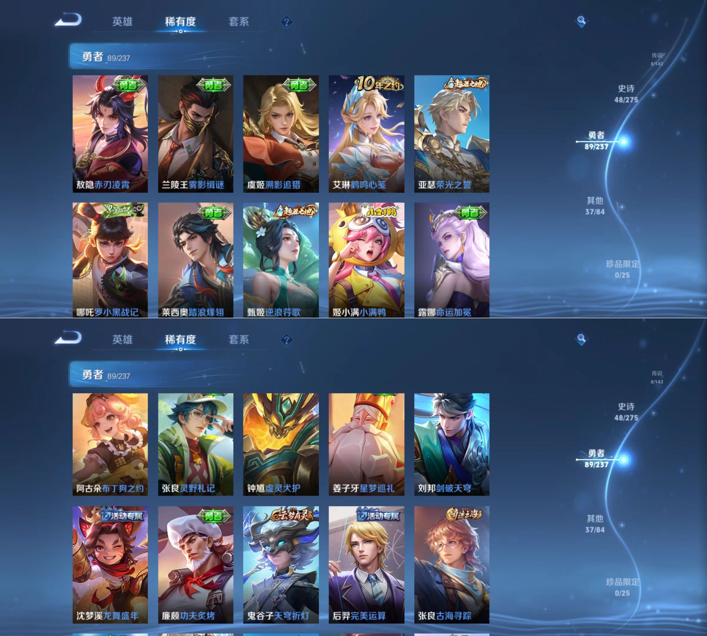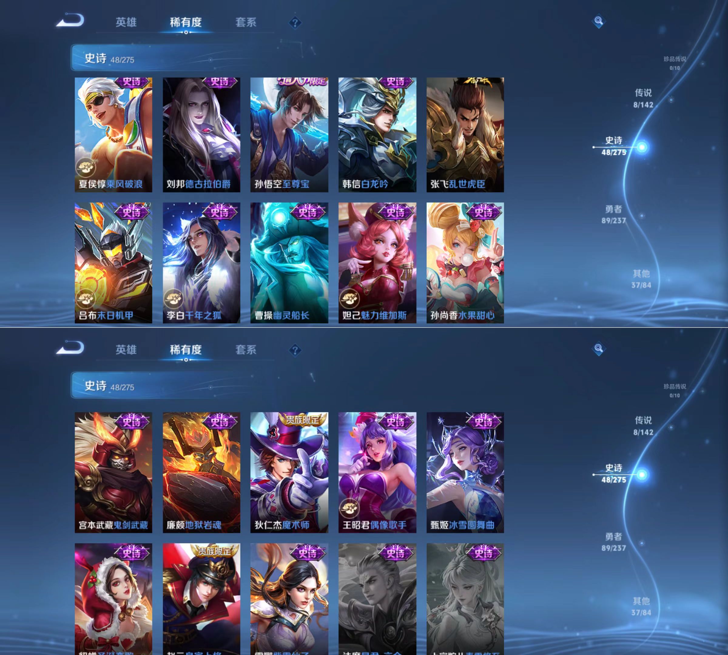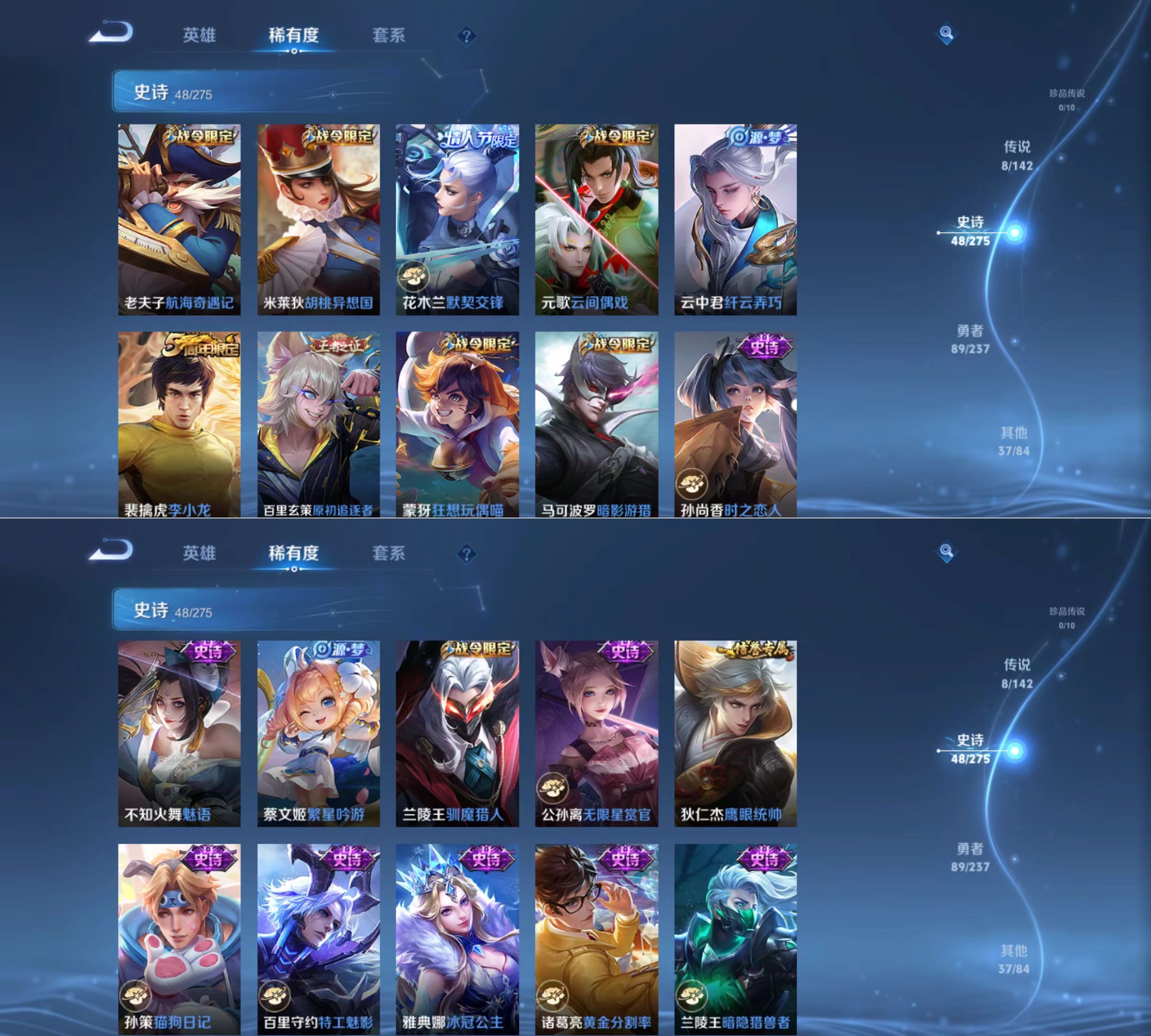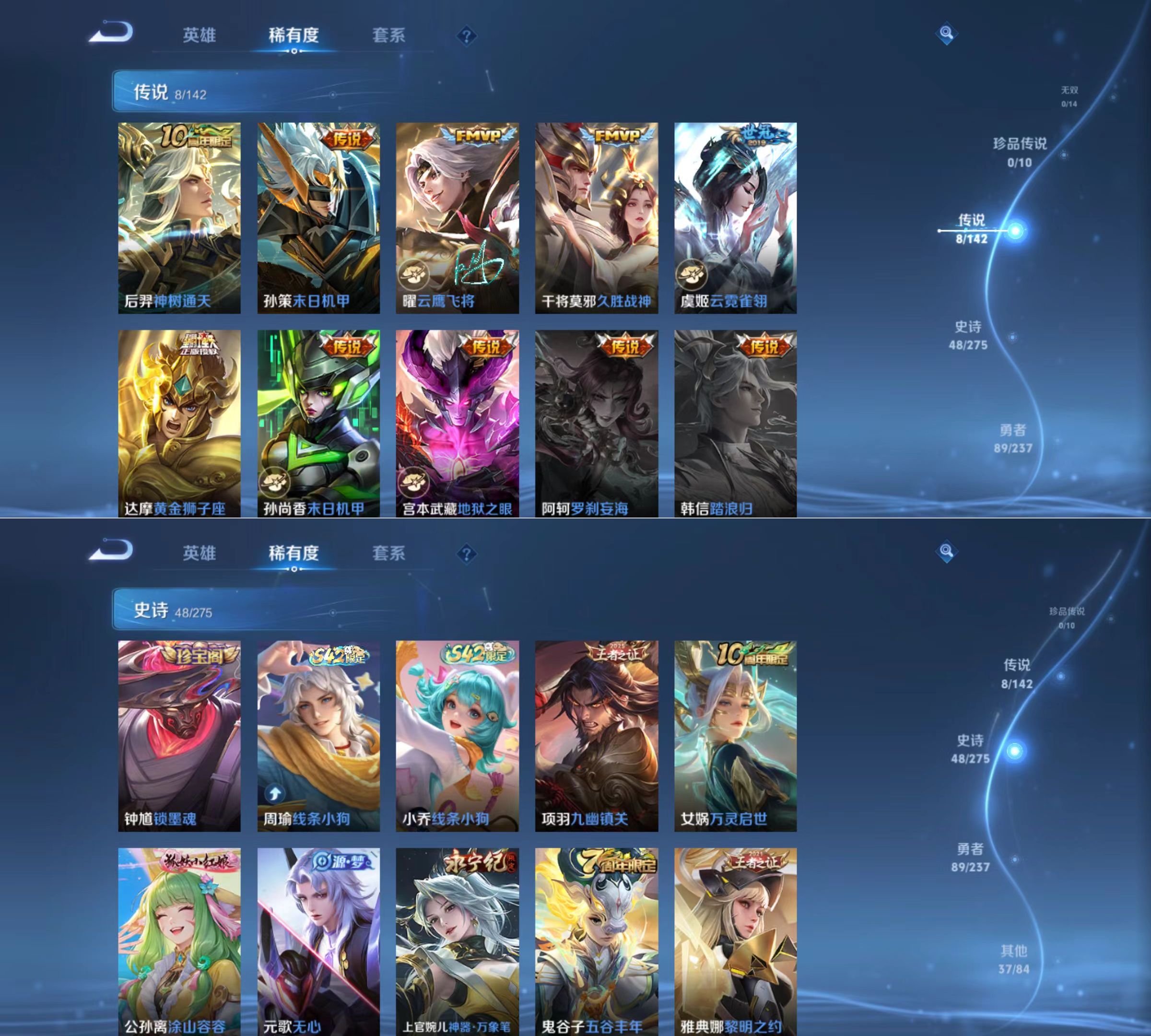 贵族等级:v6皮肤数:182传说品质8 情人节限定2 英雄数:128