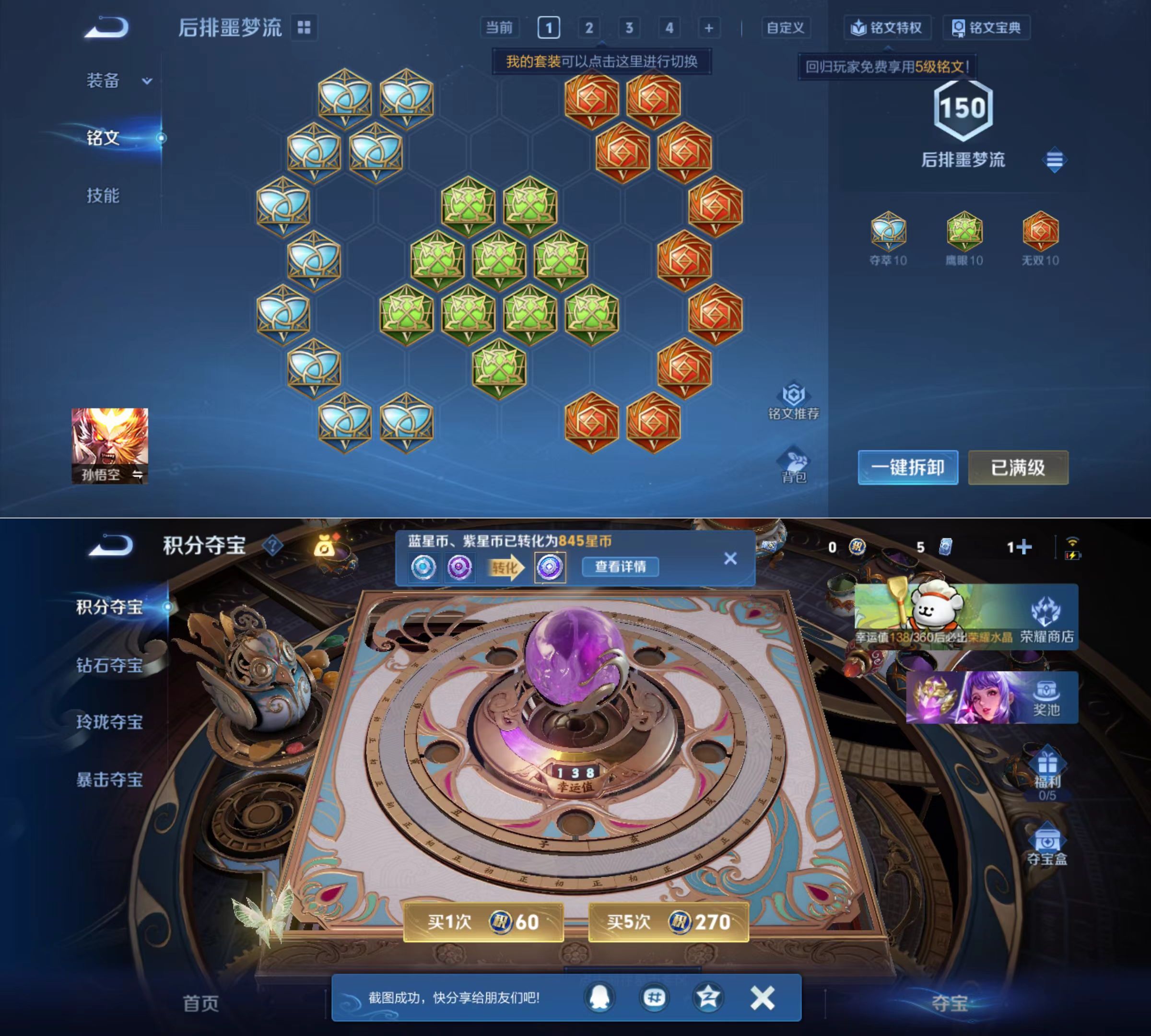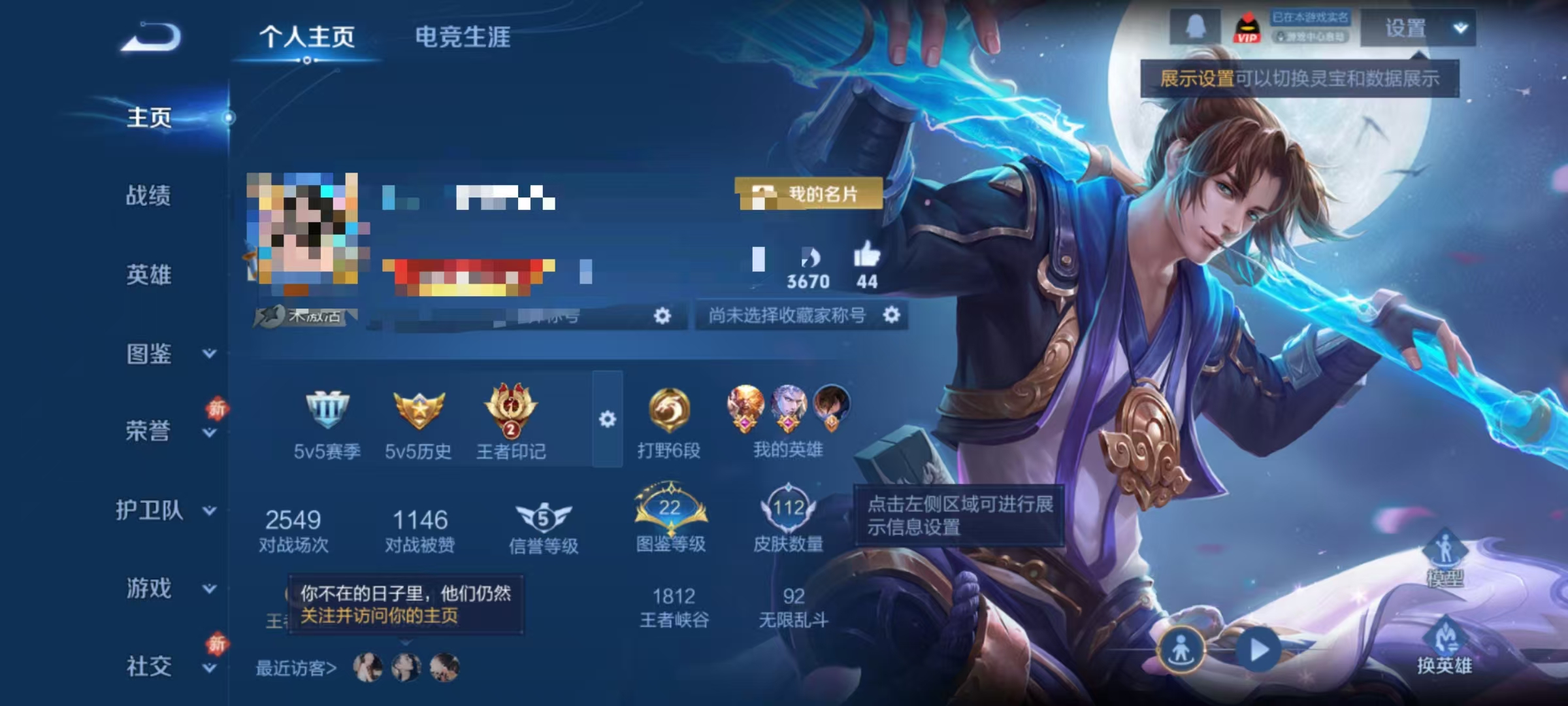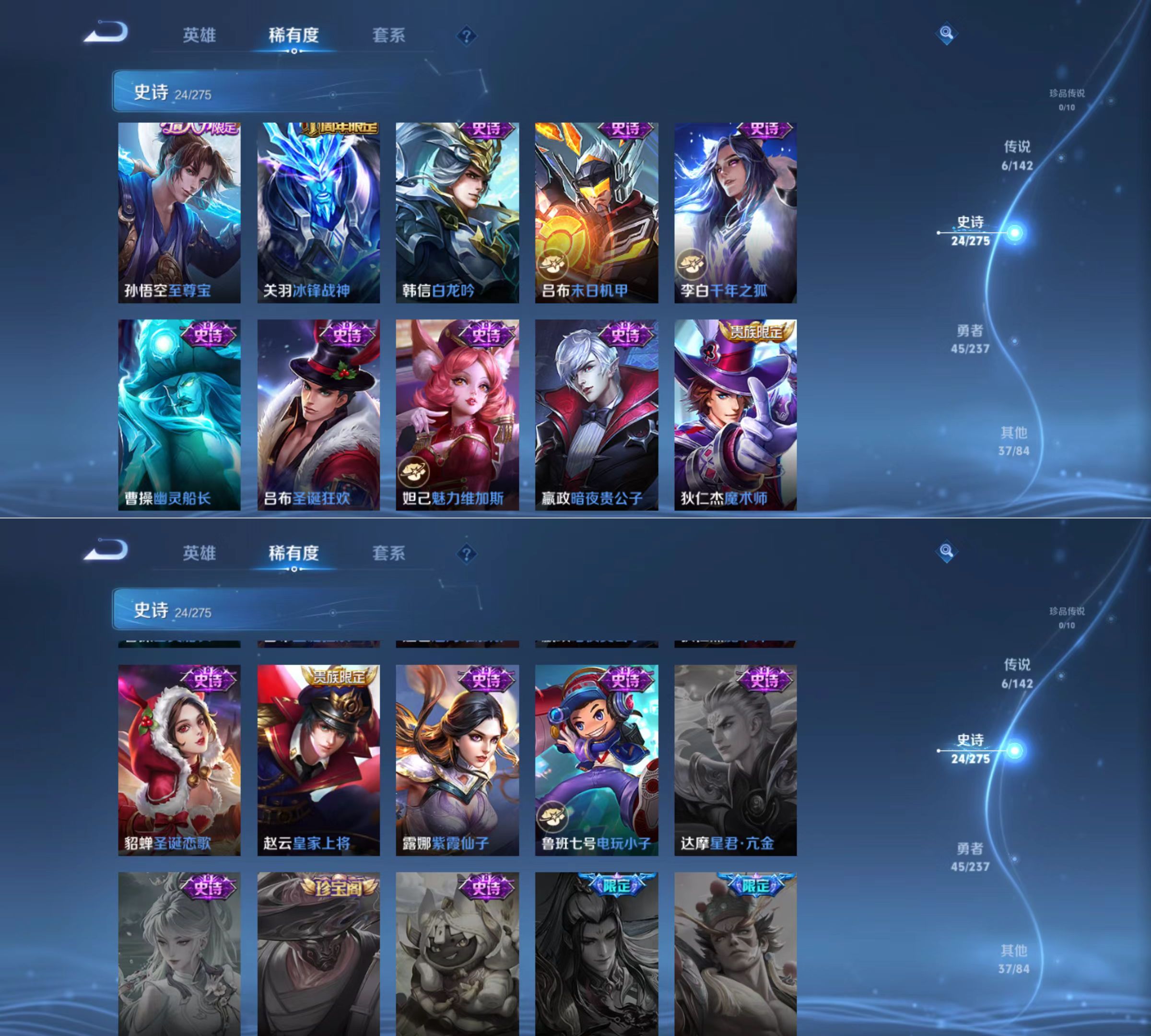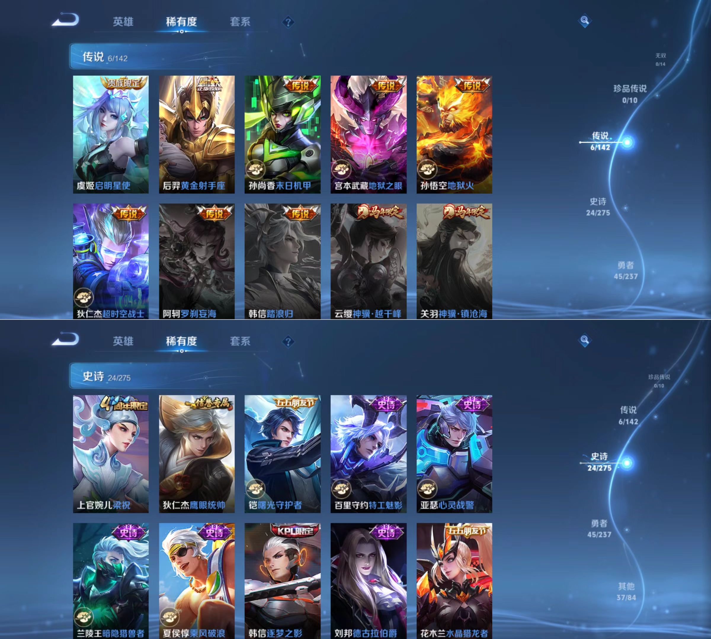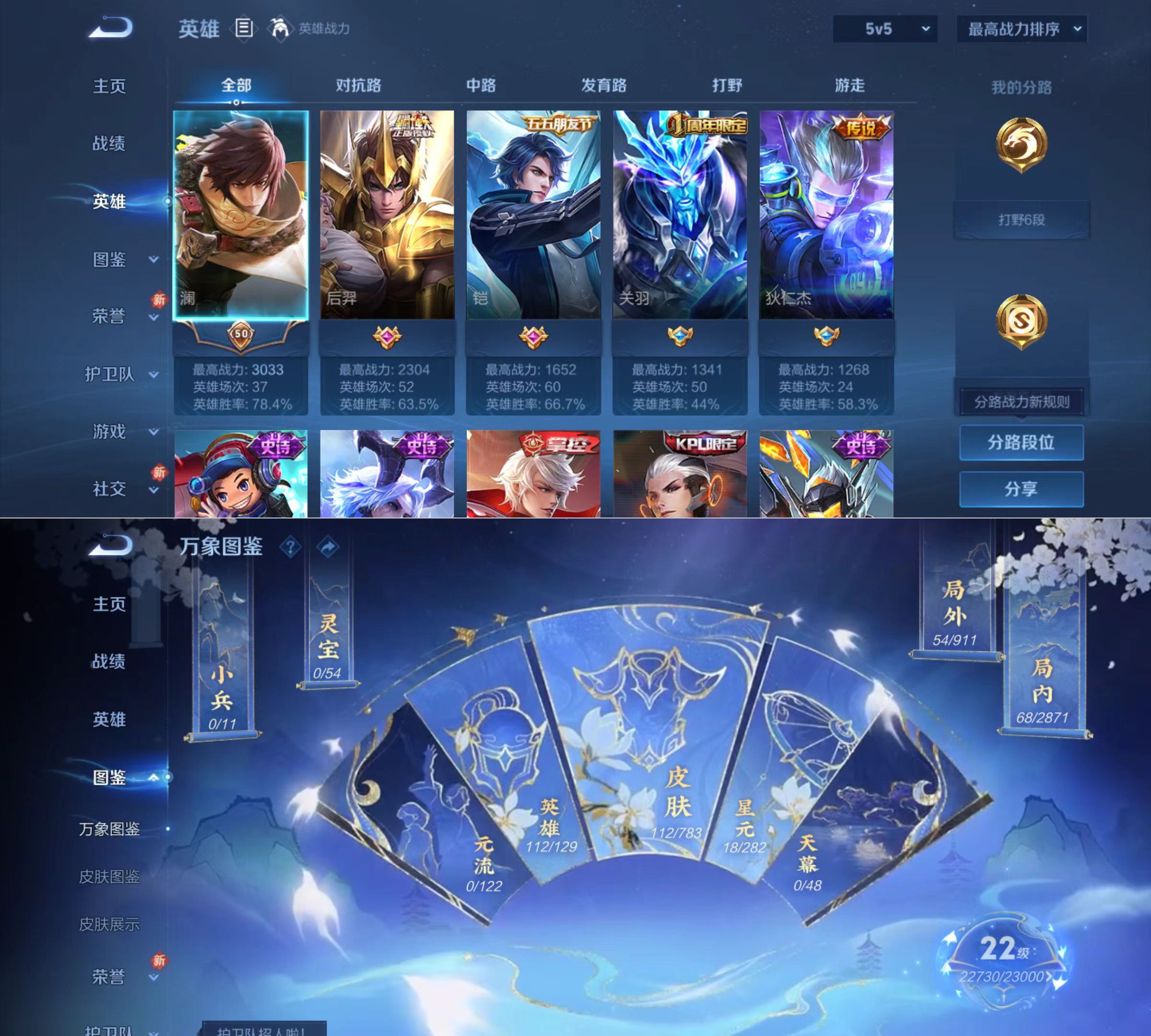 贵族等级:v8皮肤数:112传说品质6 情人节限定1 英雄数:112