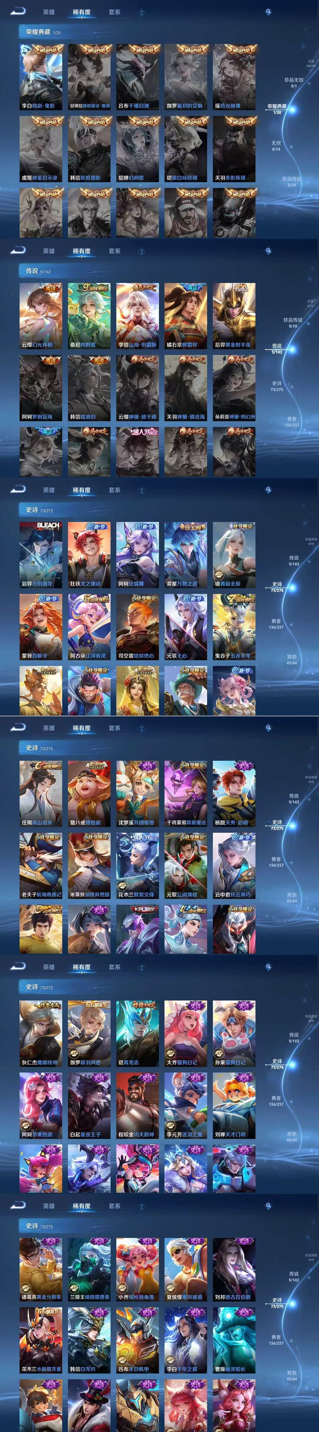 贵族等级:v5皮肤数:157传说品质1 英雄数:123
