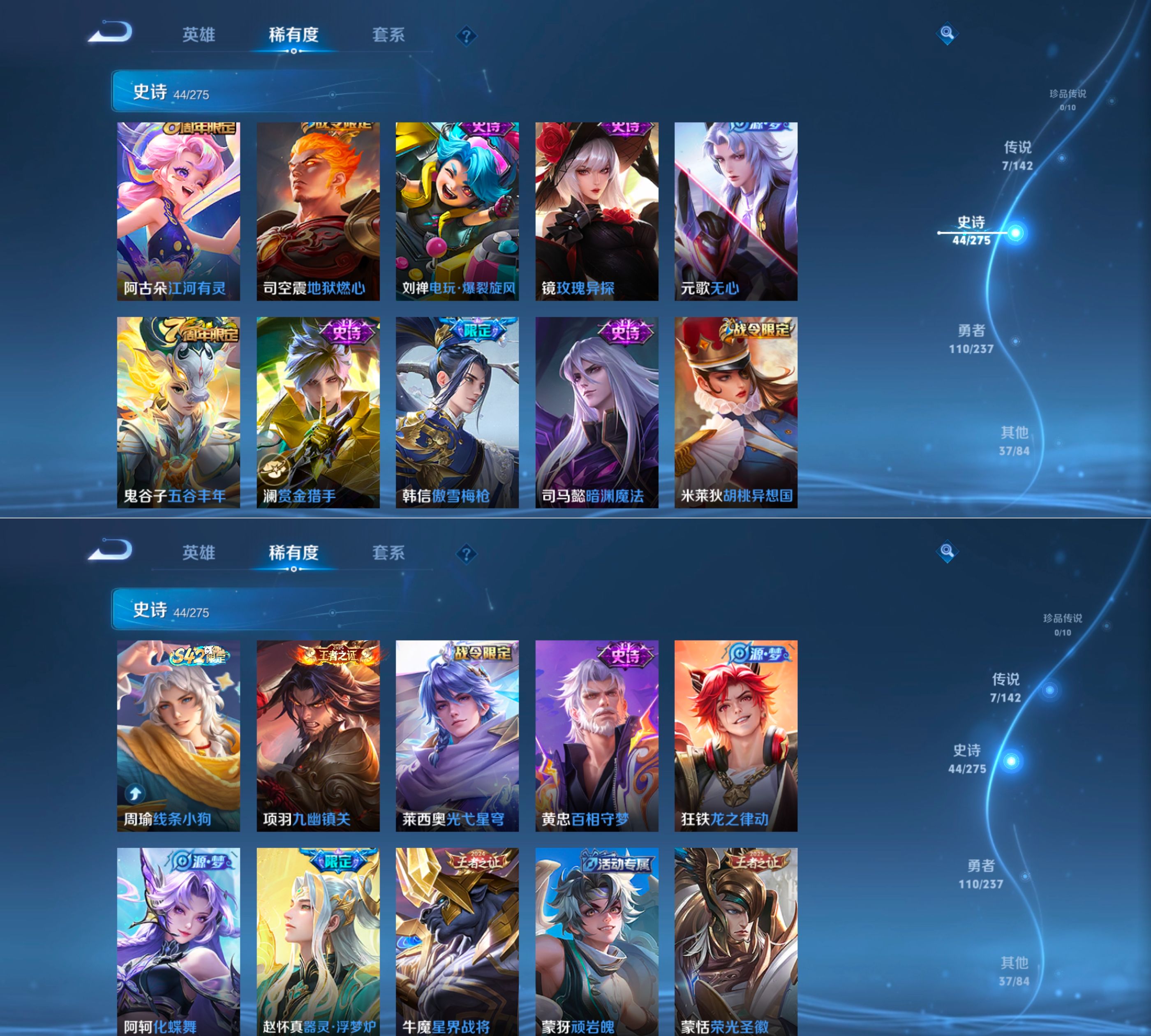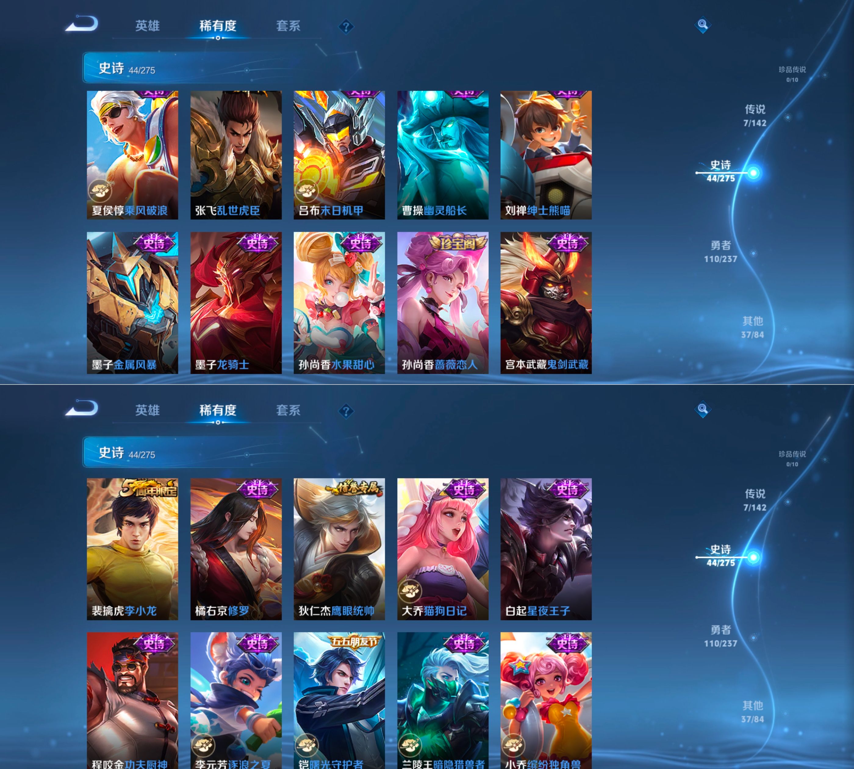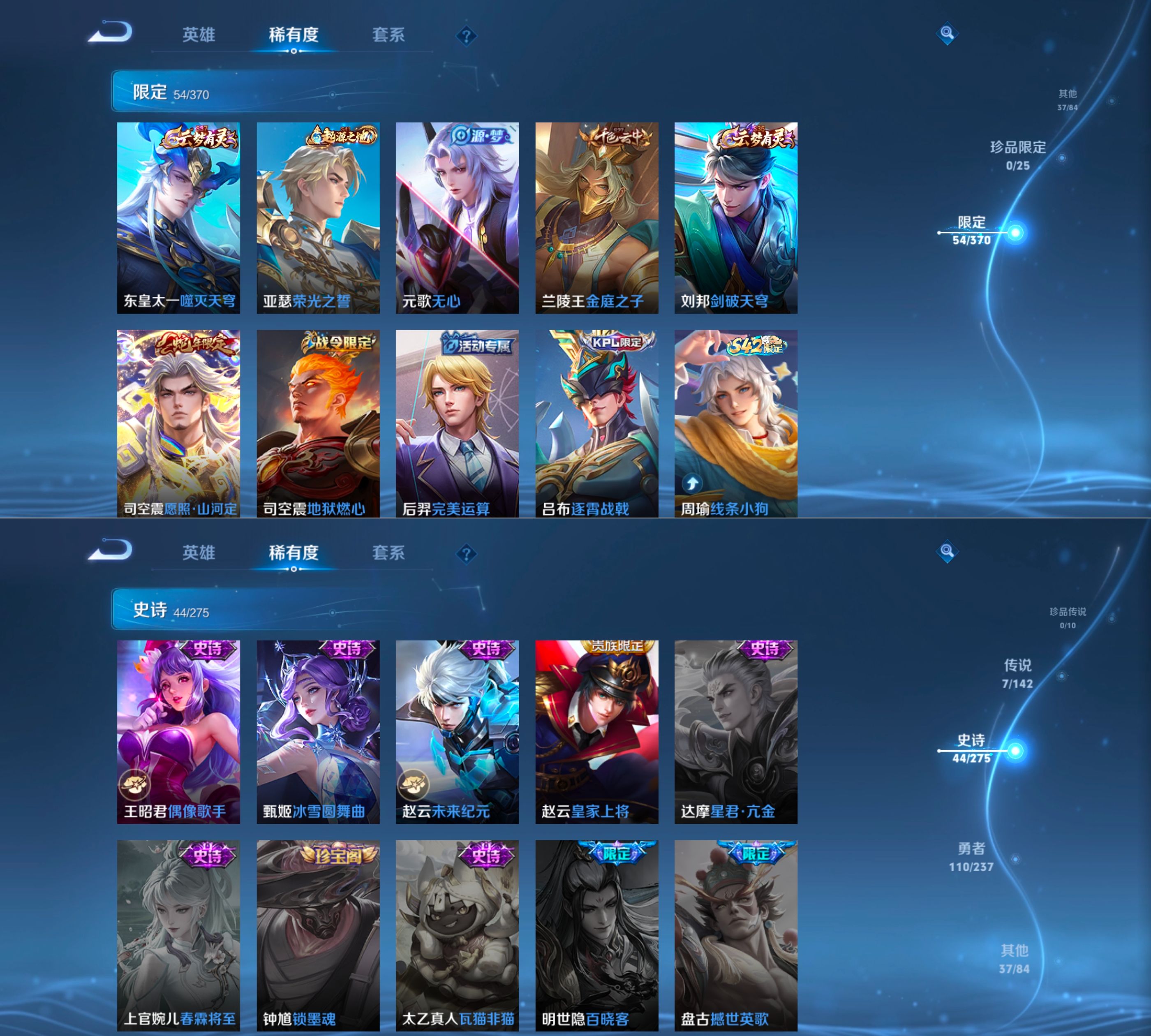 贵族等级:v5皮肤数:198传说品质7 生肖限定1 英雄数:127