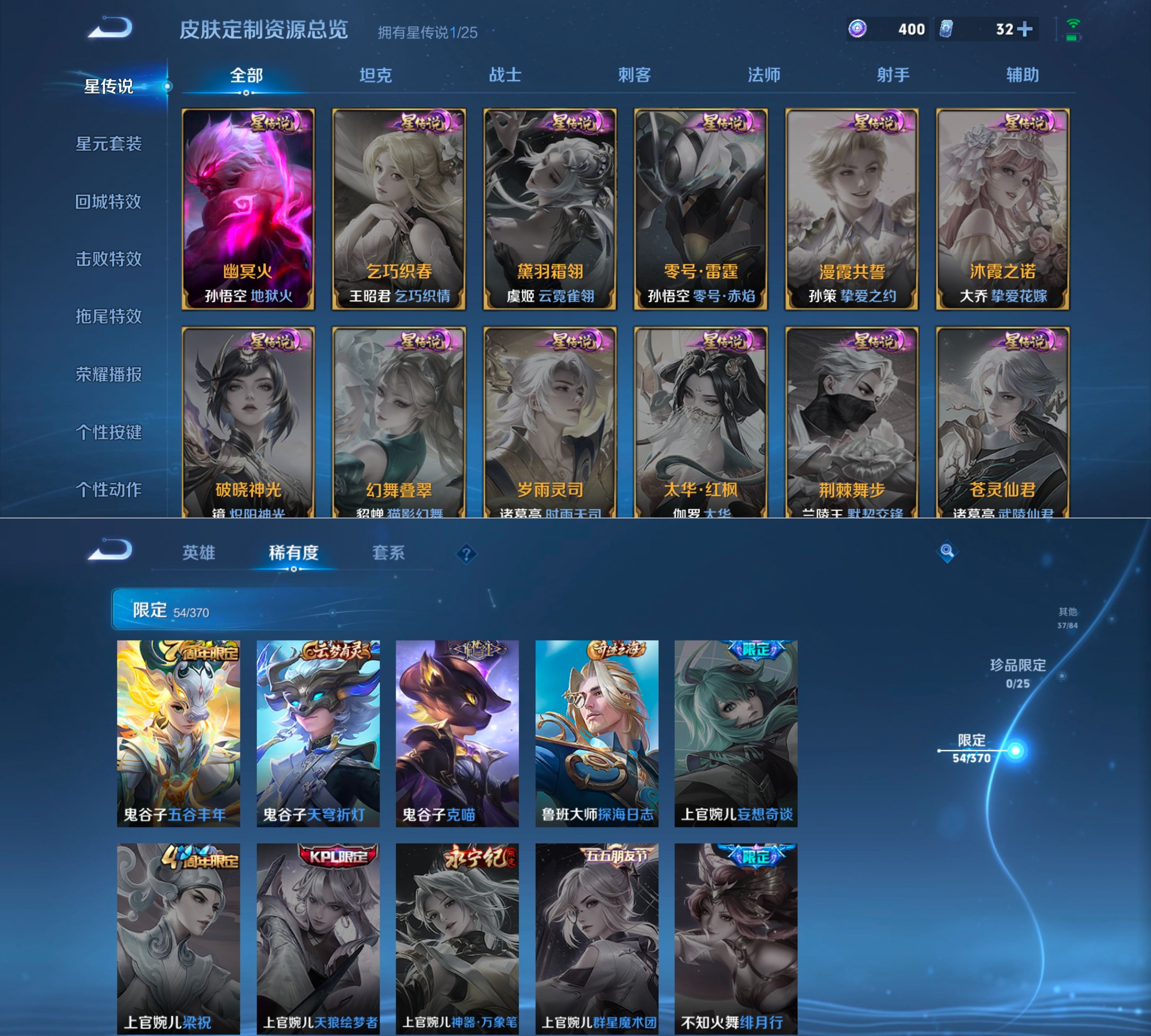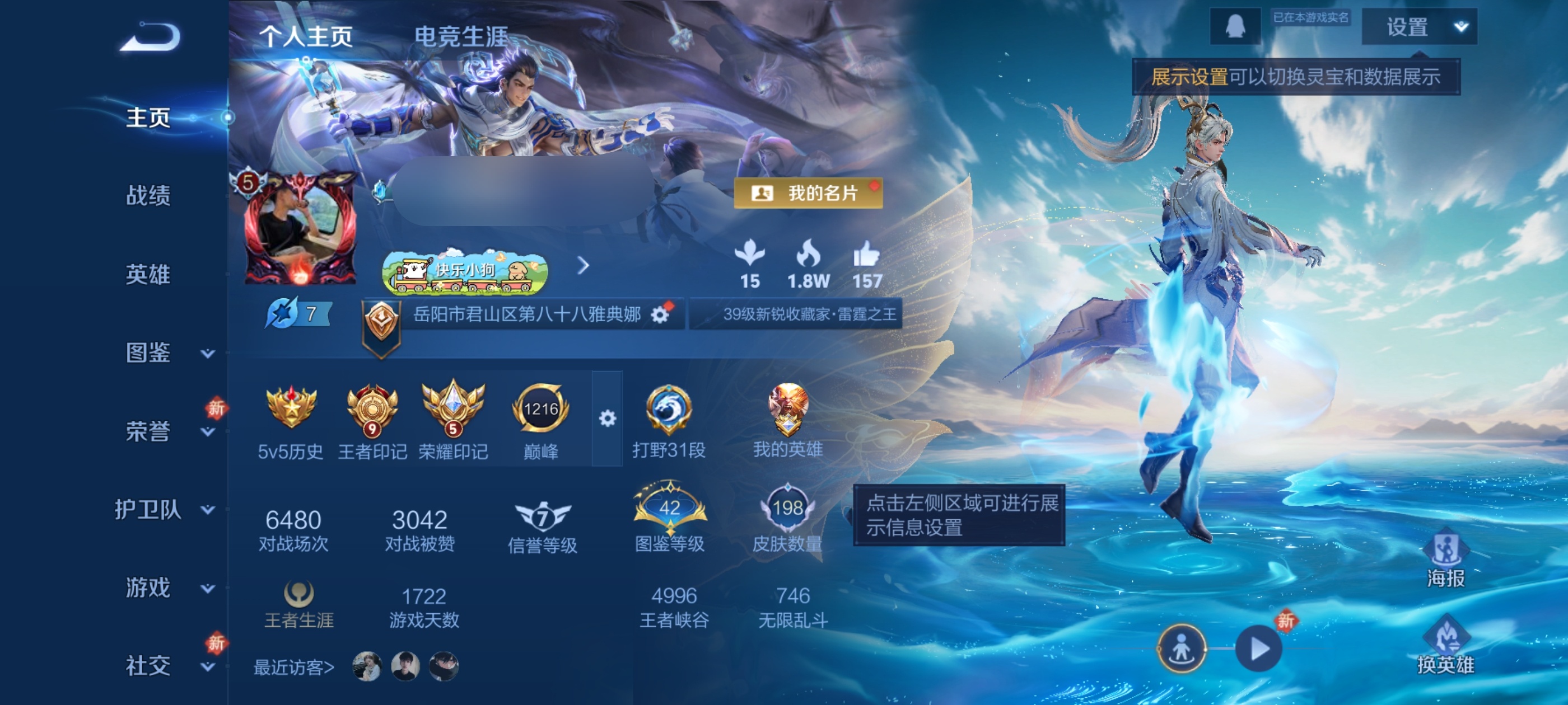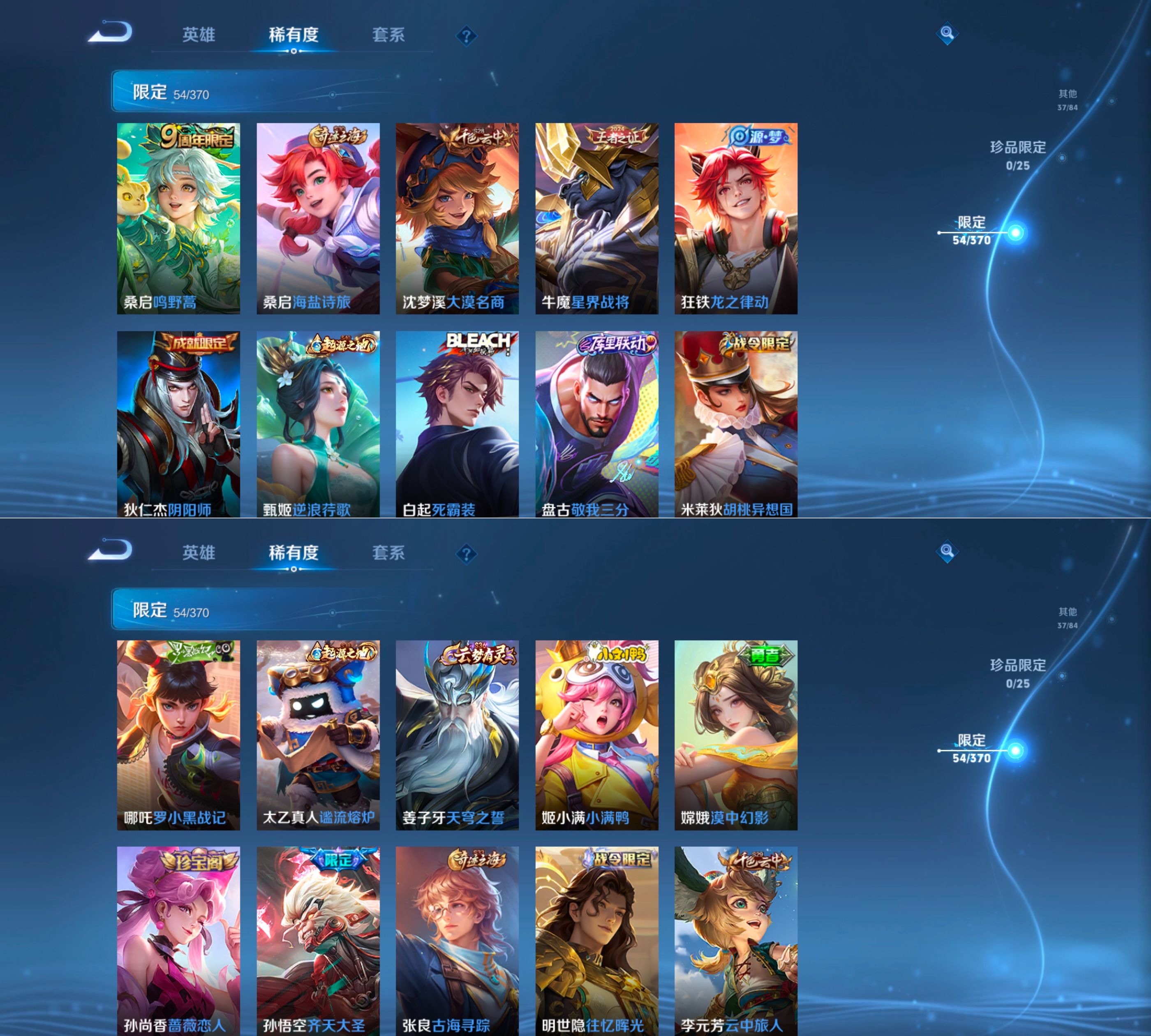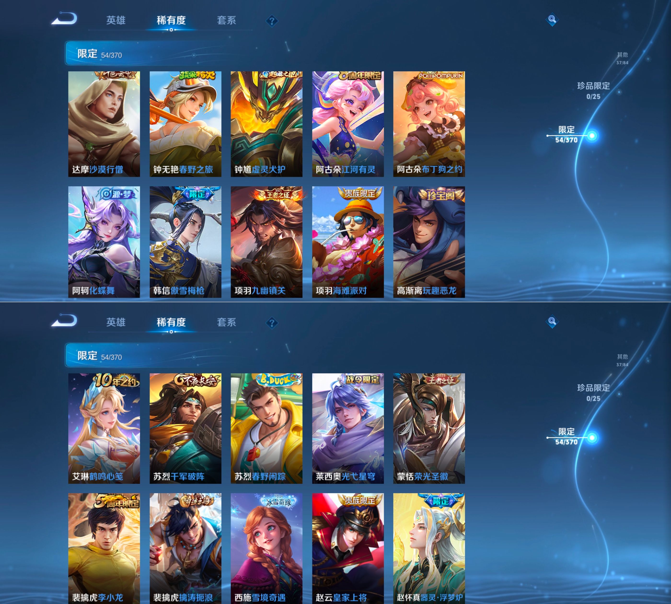 贵族等级:v5皮肤数:198传说品质7 生肖限定1 英雄数:127