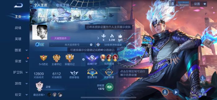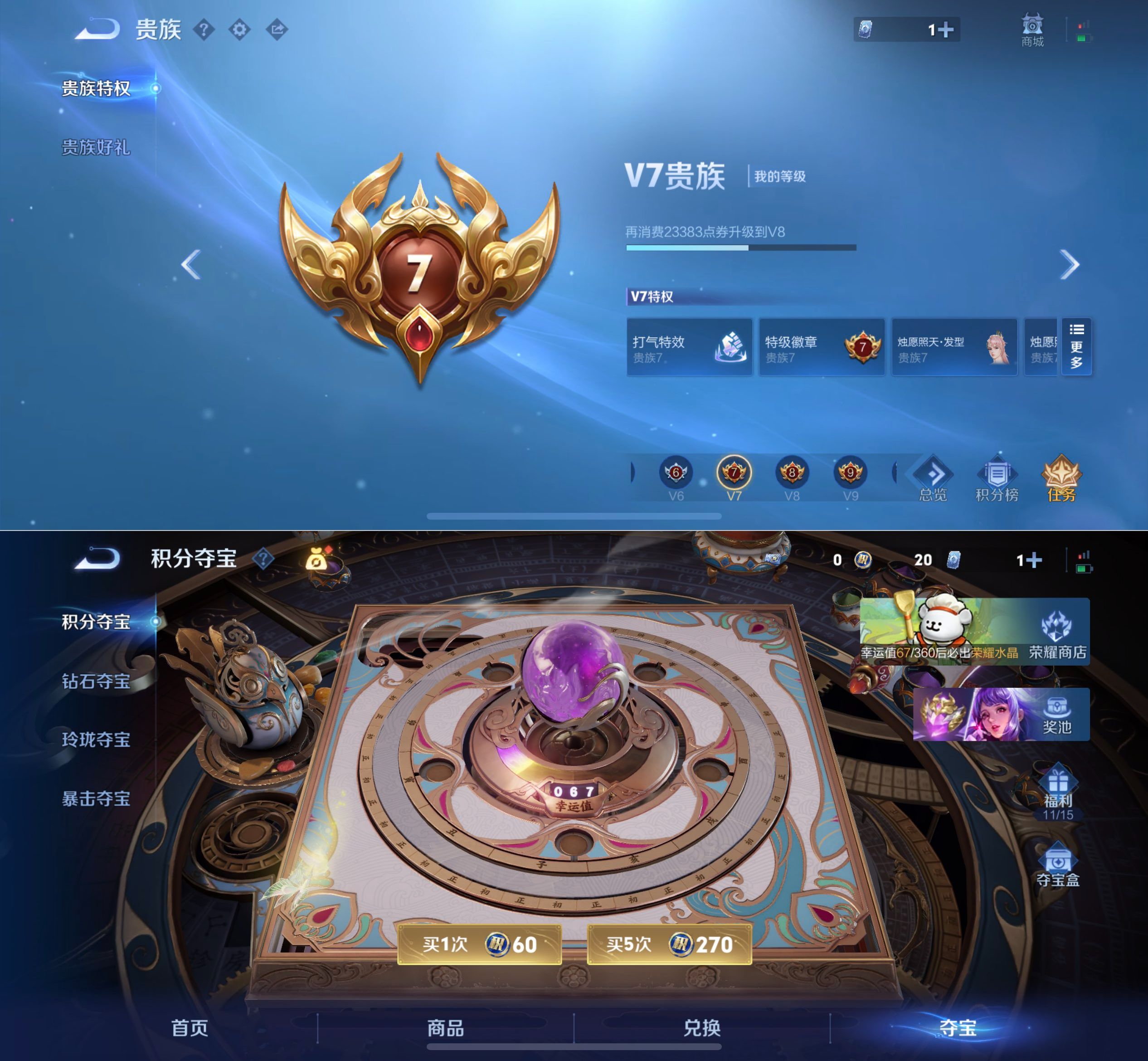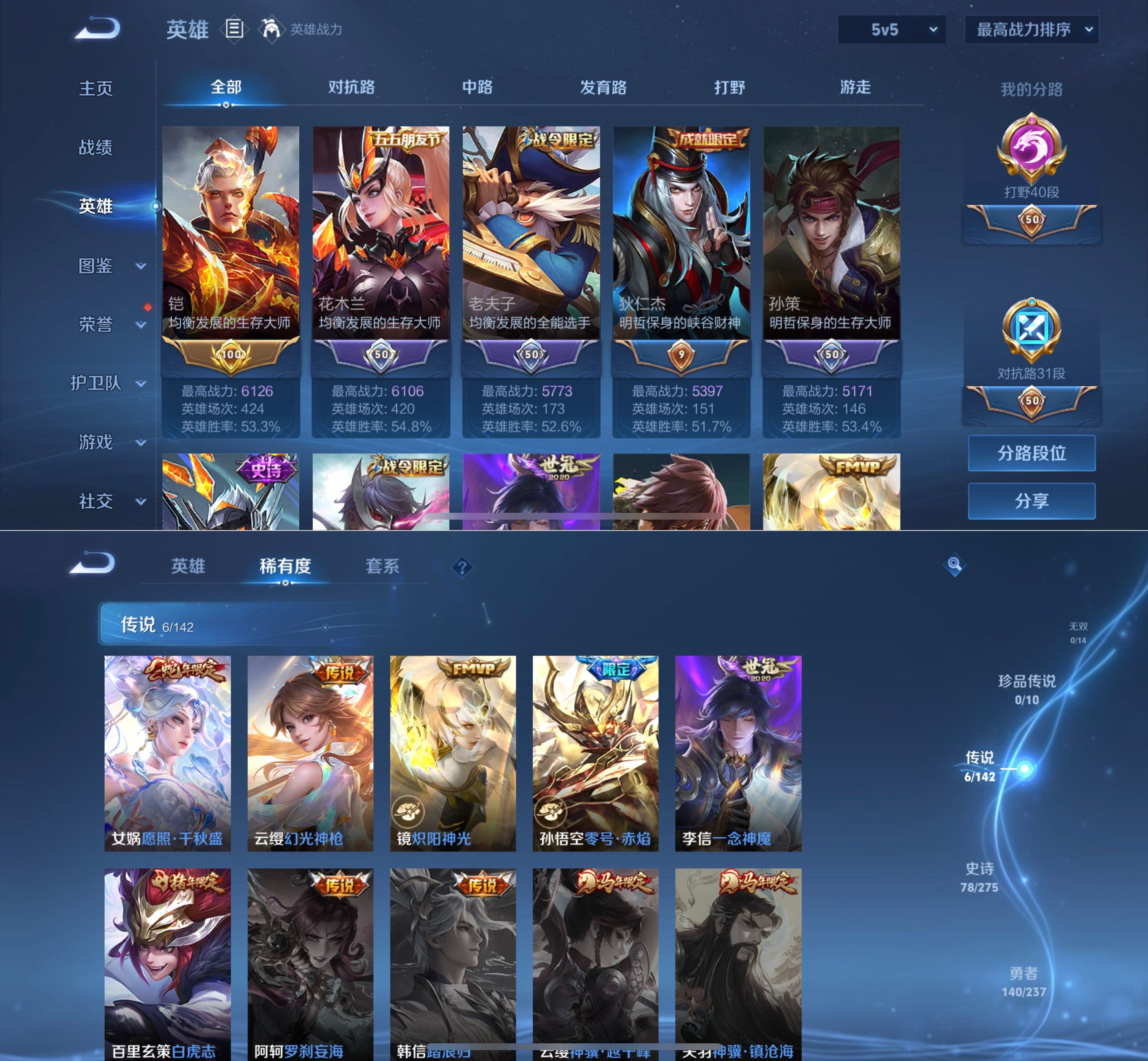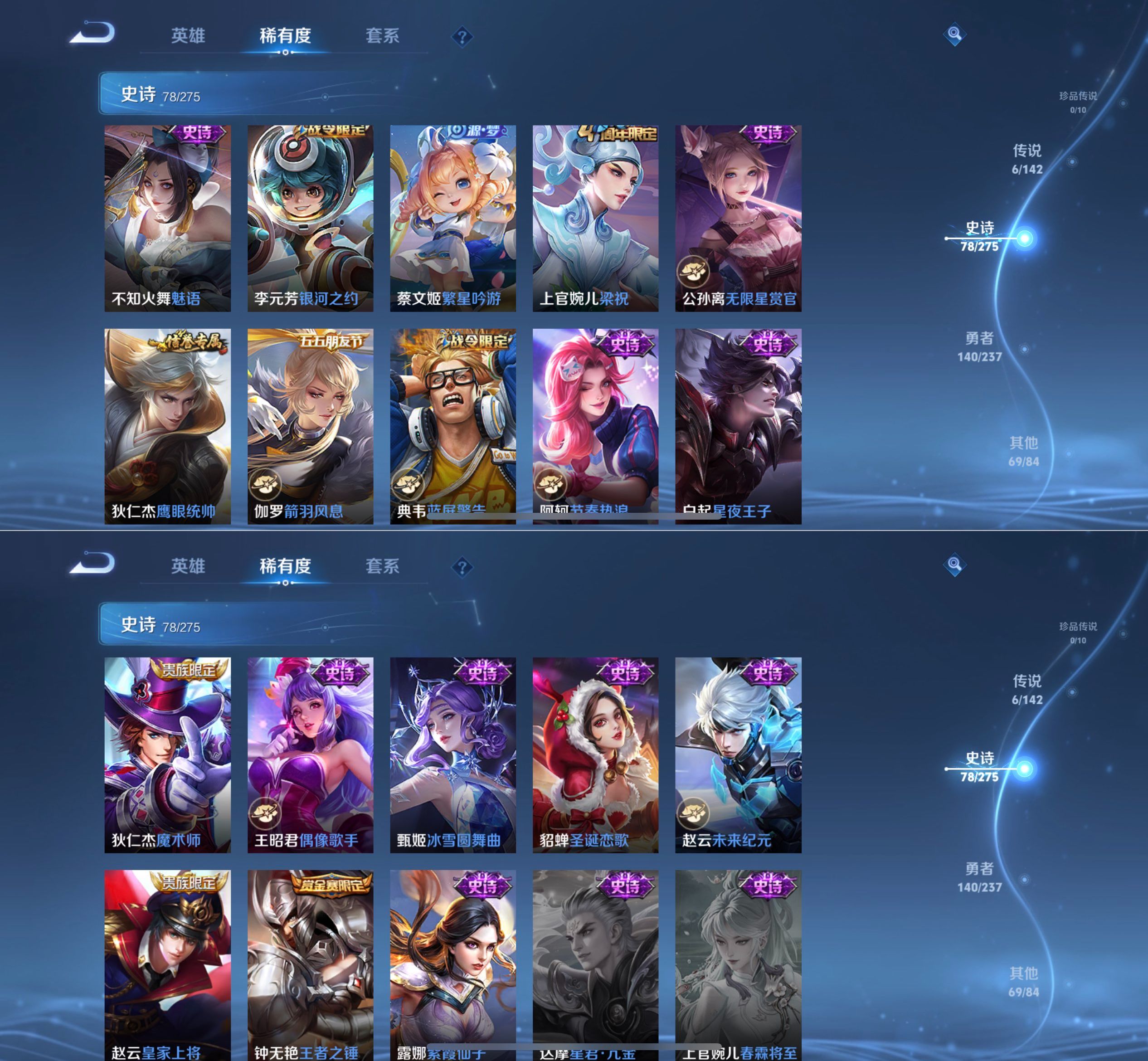 贵族等级:v7皮肤数:294情人节限定1 传说品质6 生肖限定2 荣耀典藏1 英雄数:127