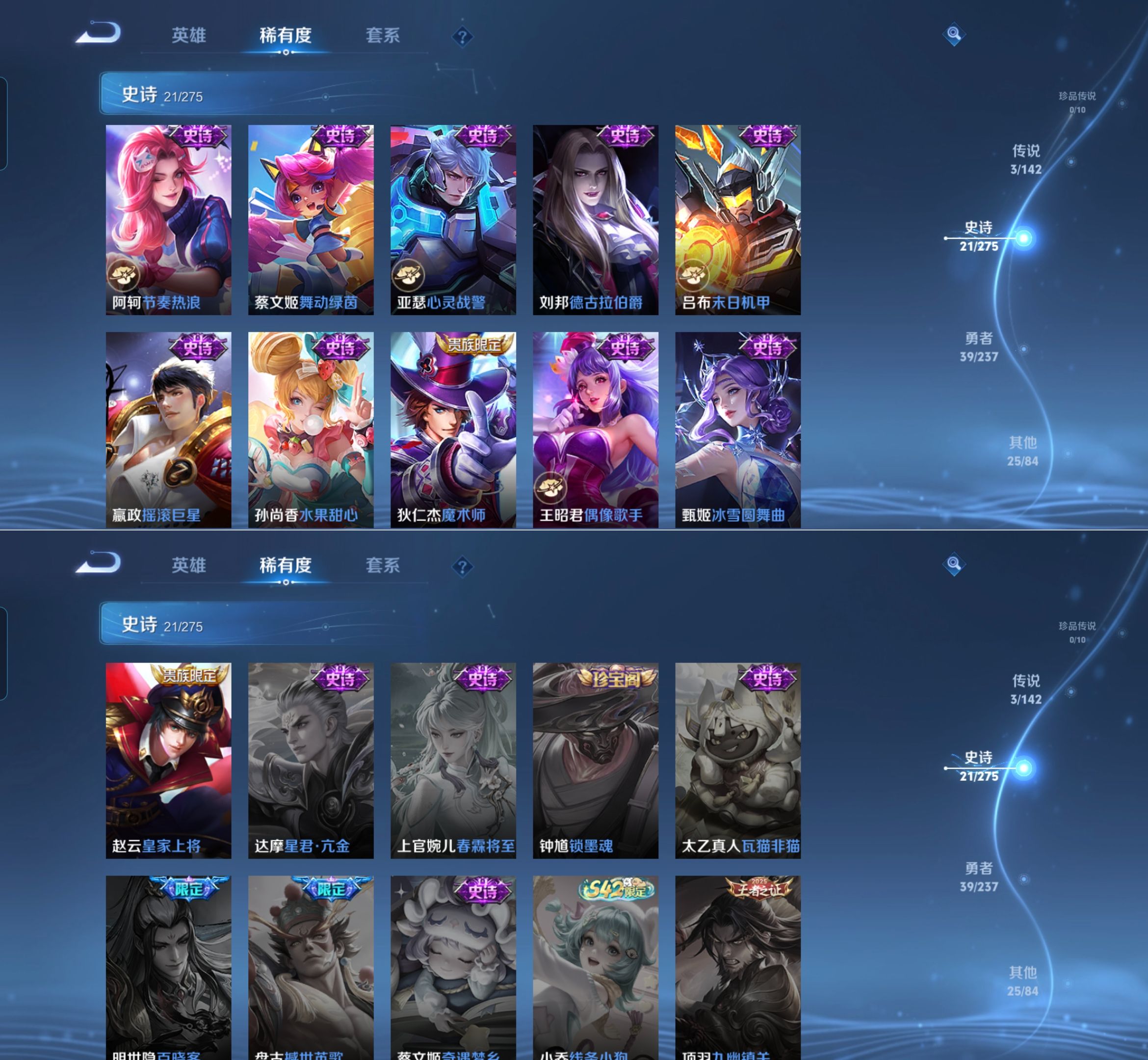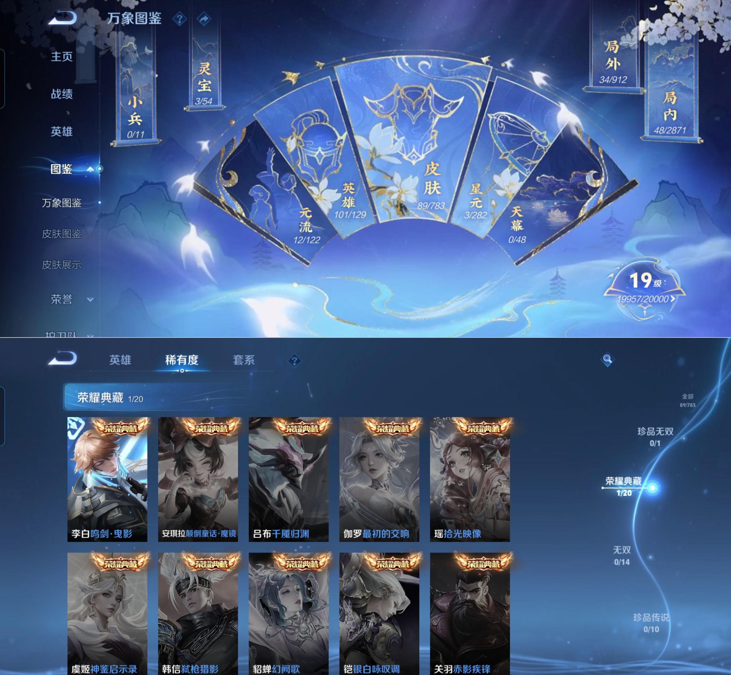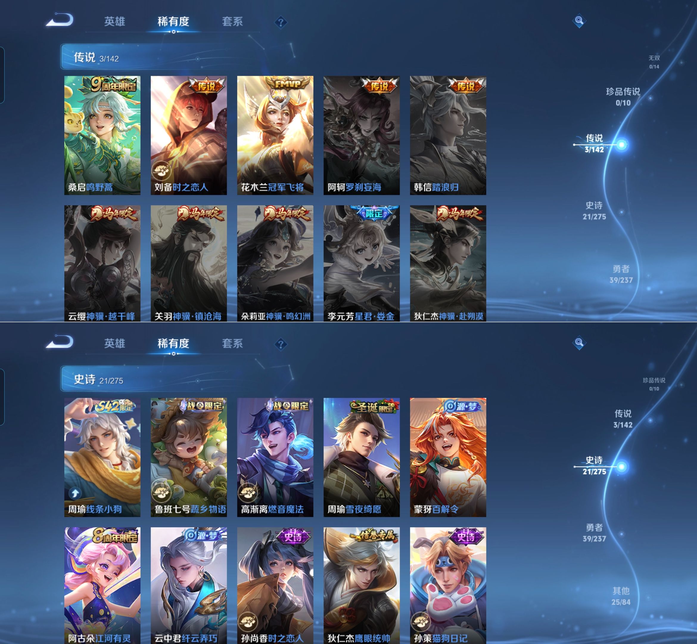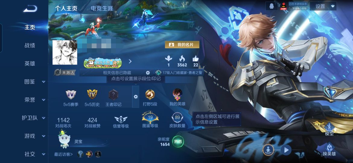 贵族等级:v6皮肤数:89传说品质3 荣耀典藏1 英雄数:101