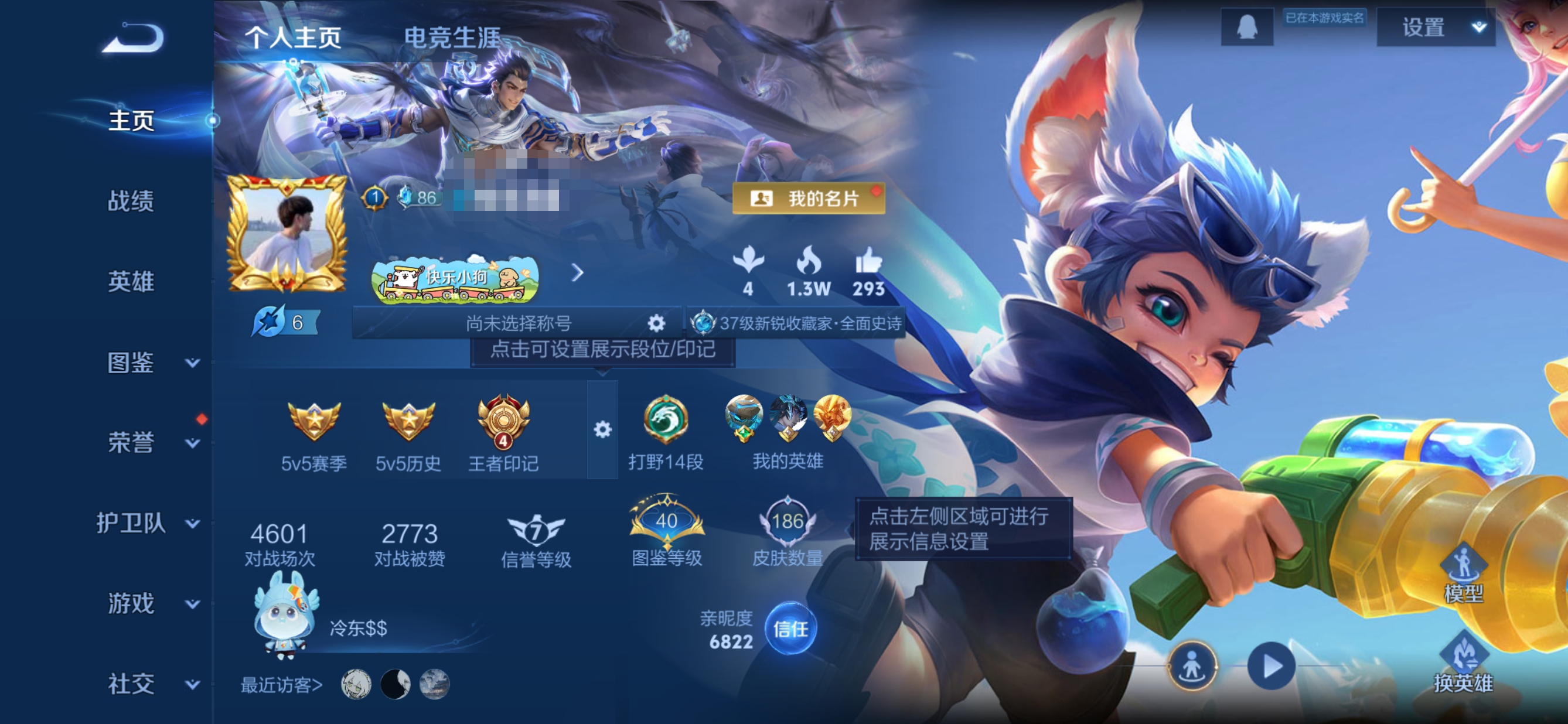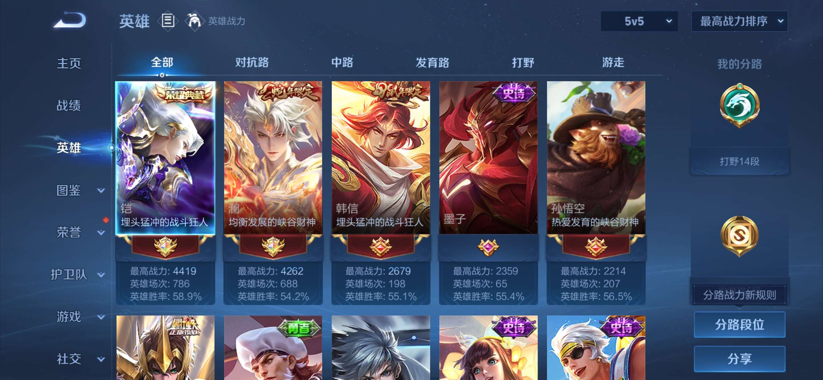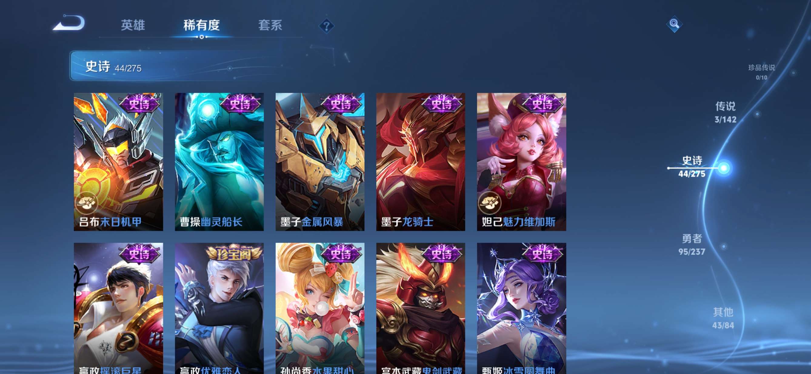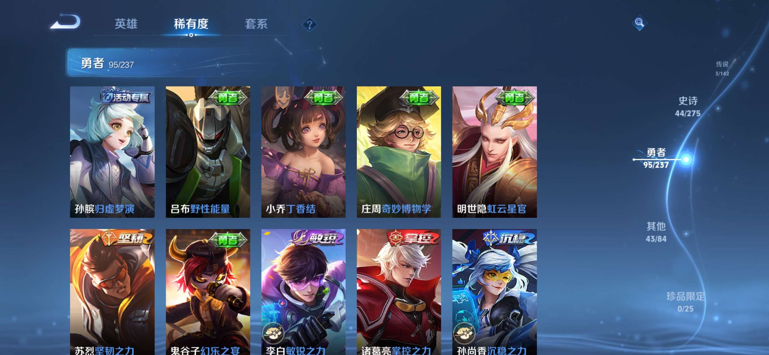 贵族等级:v5皮肤数:186传说品质3 生肖限定2 荣耀典藏1 英雄数:127