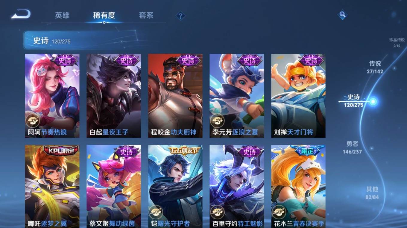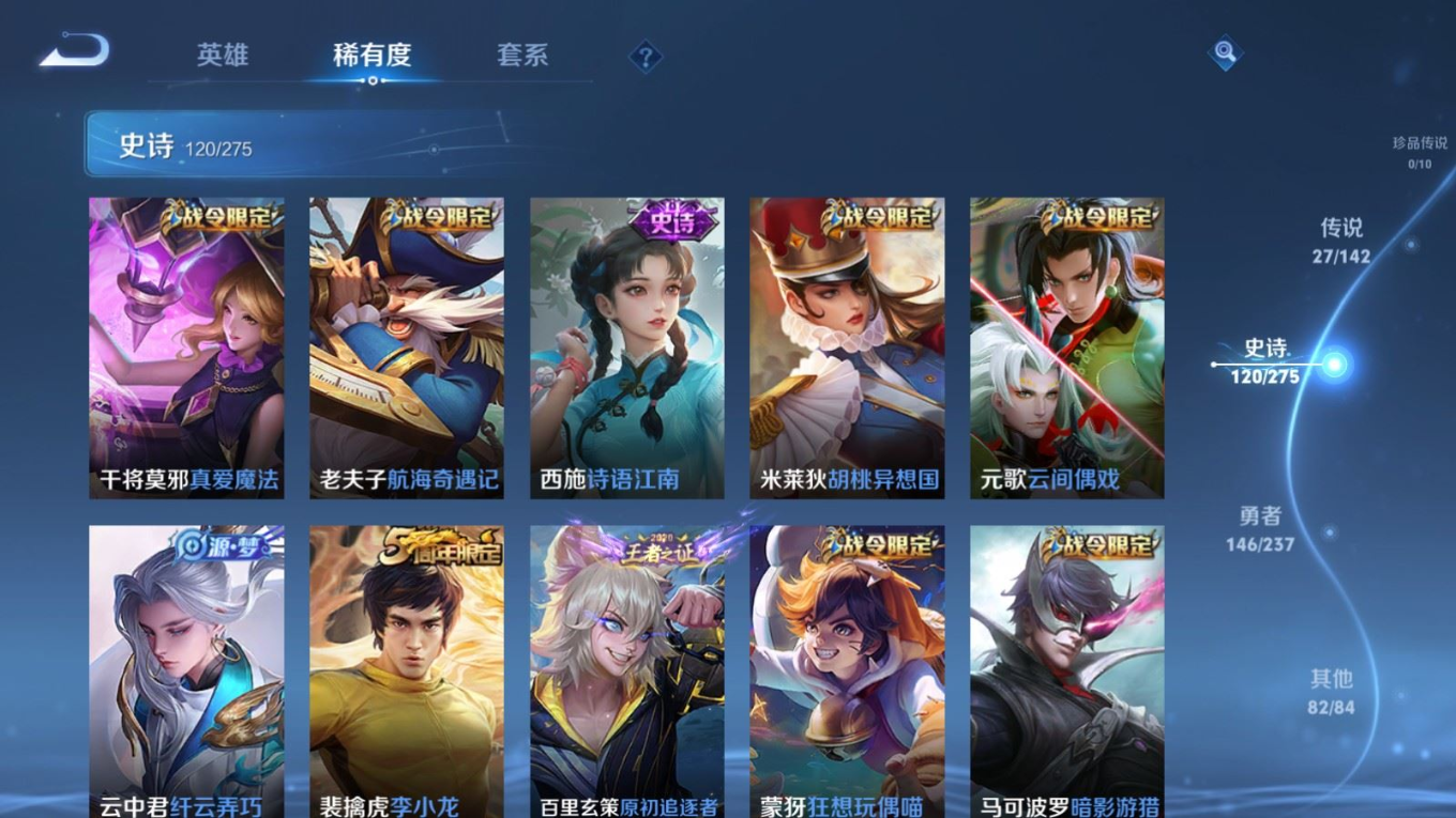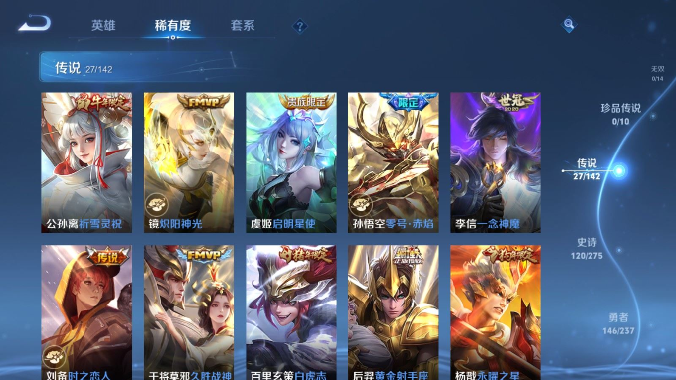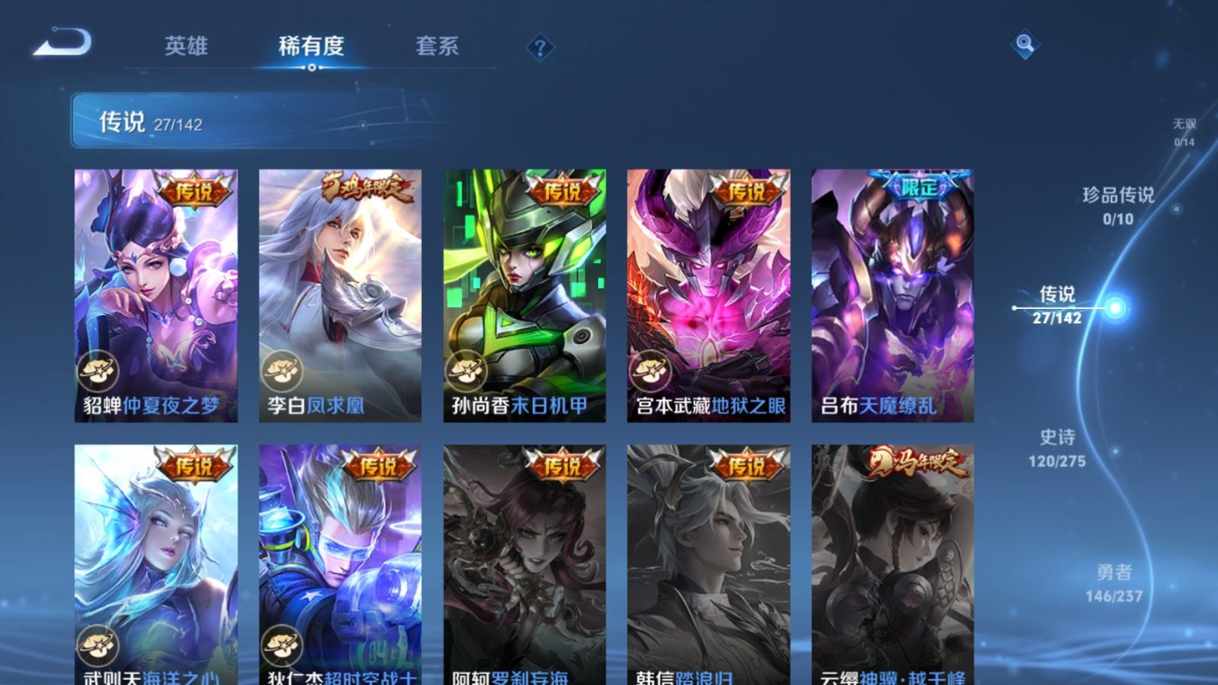 传说品质_后羿_黄金射手座传说品质_澜_逐花归海传说品质_孙悟空_零号·赤焰传说品质_吕布_天魔缭乱传说品质_武则天_海洋之心传说品质_杨戬_永曜之星传说品质_干将莫邪_久胜战神传说品质_宫本武藏_地狱之眼传说品质_宫本武藏_惊梅引传说品质_镜_炽阳神光传说品质_不知火舞_绯月行传说品质_貂蝉_仲夏夜之梦传说品质_李信_一念神魔传说品质_孙尚香_末日机甲传说品质_孙尚香_乘龙·问璇玑传说品质_刘备_时之恋人传说品质_橘右京_枫霜尽传说品质_李白_凤求凰传说品质_公孙离_祈雪灵祝传说品质_公孙离_记忆之芯传说品质_百里守约_碎云传说品质_狄仁杰_超时空战士传说品质_虞姬_愿照·岁时盈传说品质_虞姬_启明星使传说品质_李元芳_飞鸢探春传说品质_百里玄策_白虎志传说品质_裴擒虎_寅虎·赤拳