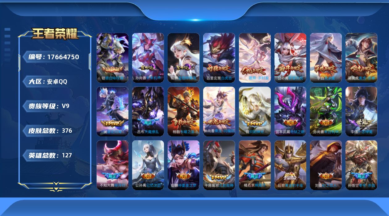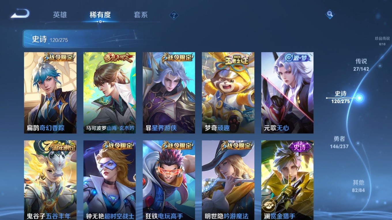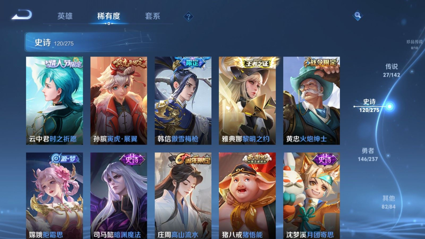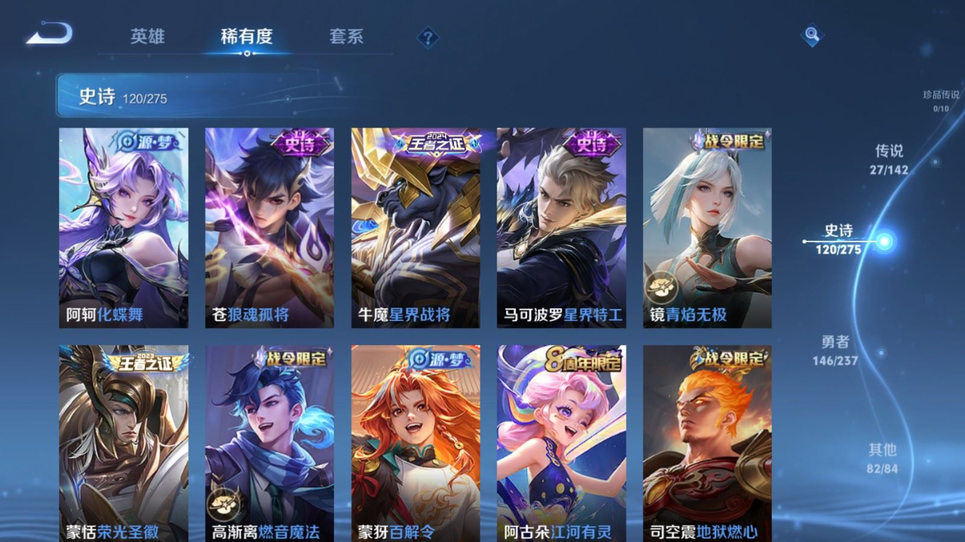 传说品质_后羿_黄金射手座传说品质_澜_逐花归海传说品质_孙悟空_零号·赤焰传说品质_吕布_天魔缭乱传说品质_武则天_海洋之心传说品质_杨戬_永曜之星传说品质_干将莫邪_久胜战神传说品质_宫本武藏_地狱之眼传说品质_宫本武藏_惊梅引传说品质_镜_炽阳神光传说品质_不知火舞_绯月行传说品质_貂蝉_仲夏夜之梦传说品质_李信_一念神魔传说品质_孙尚香_末日机甲传说品质_孙尚香_乘龙·问璇玑传说品质_刘备_时之恋人传说品质_橘右京_枫霜尽传说品质_李白_凤求凰传说品质_公孙离_祈雪灵祝传说品质_公孙离_记忆之芯传说品质_百里守约_碎云传说品质_狄仁杰_超时空战士传说品质_虞姬_愿照·岁时盈传说品质_虞姬_启明星使传说品质_李元芳_飞鸢探春传说品质_百里玄策_白虎志传说品质_裴擒虎_寅虎·赤拳