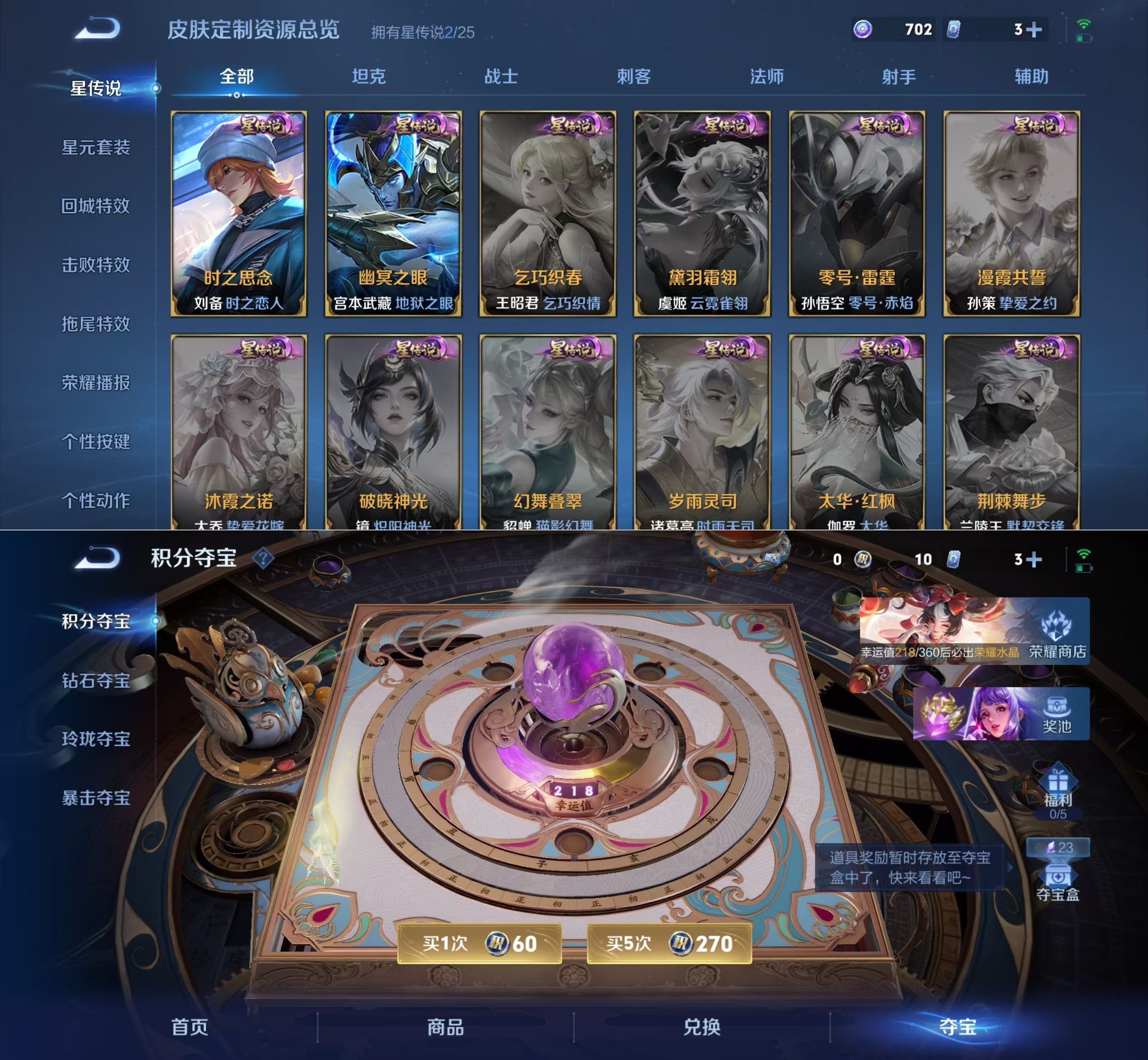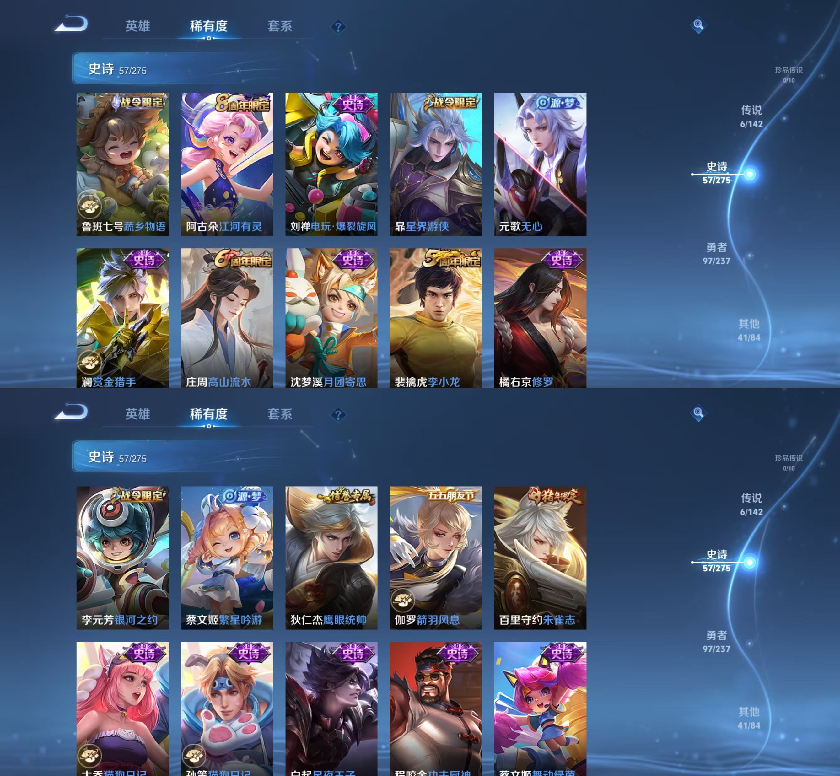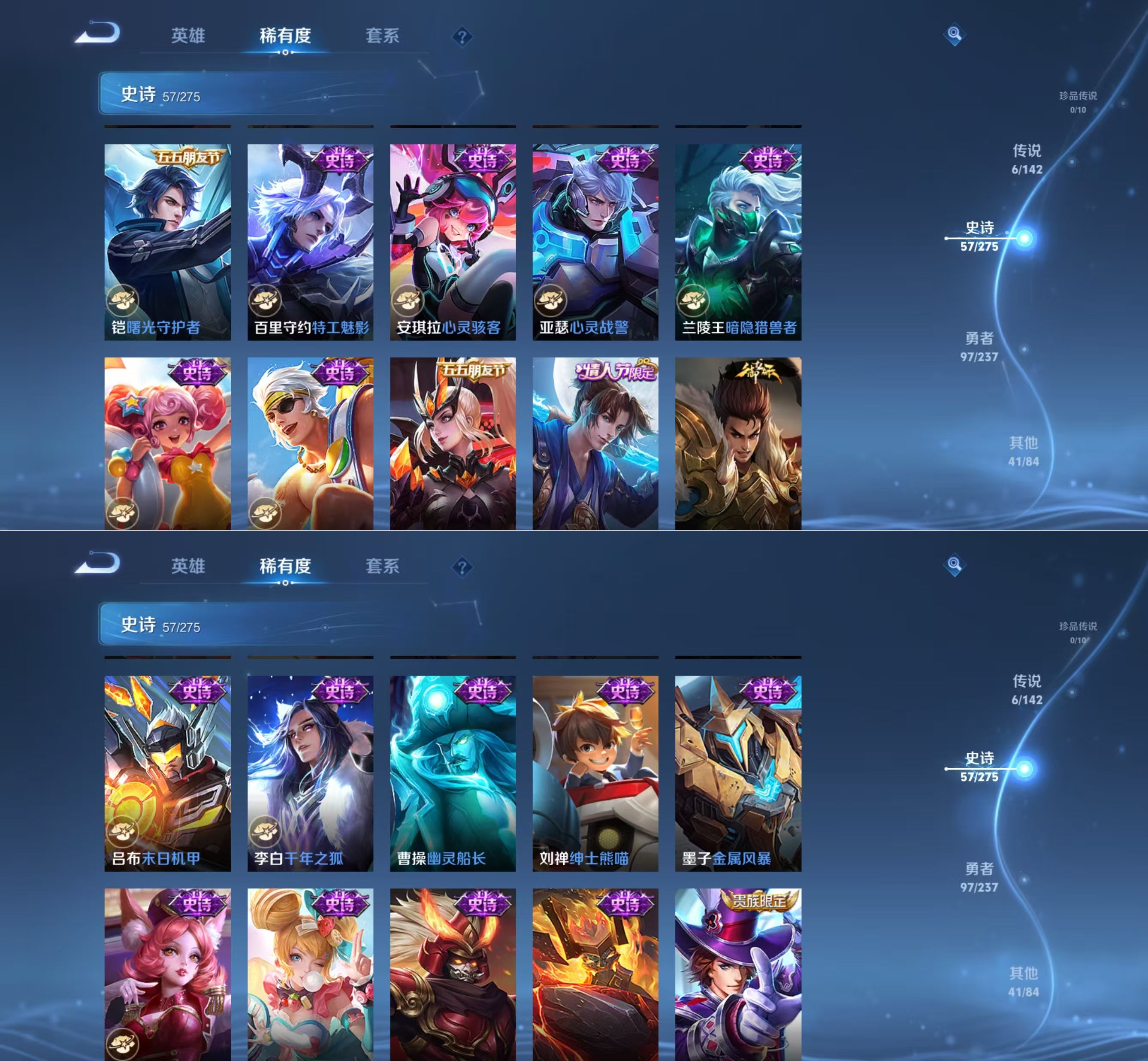 贵族等级:v7皮肤数:201传说品质6 情人节限定1 生肖限定1 英雄数:126