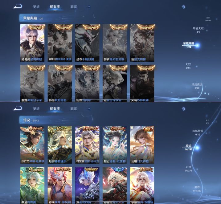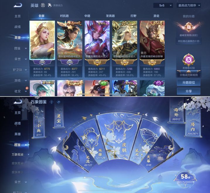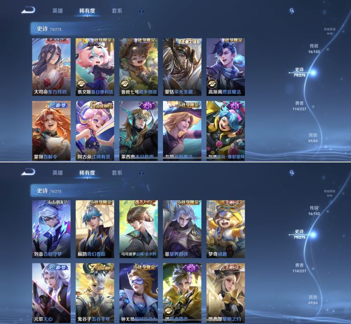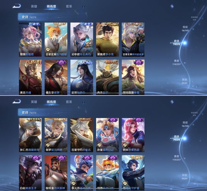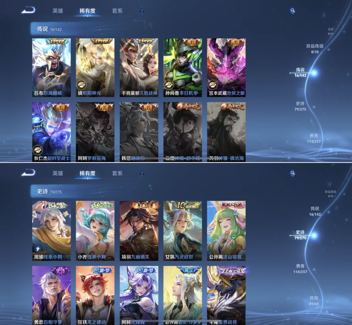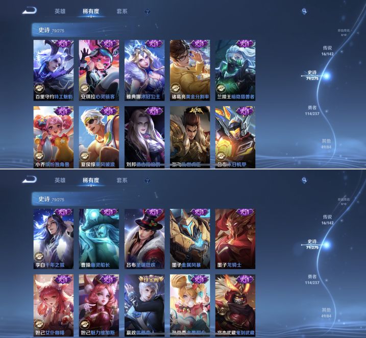 贵族等级:v7皮肤数:259情人节限定1 传说品质16 生肖限定8 荣耀典藏1 英雄数:127