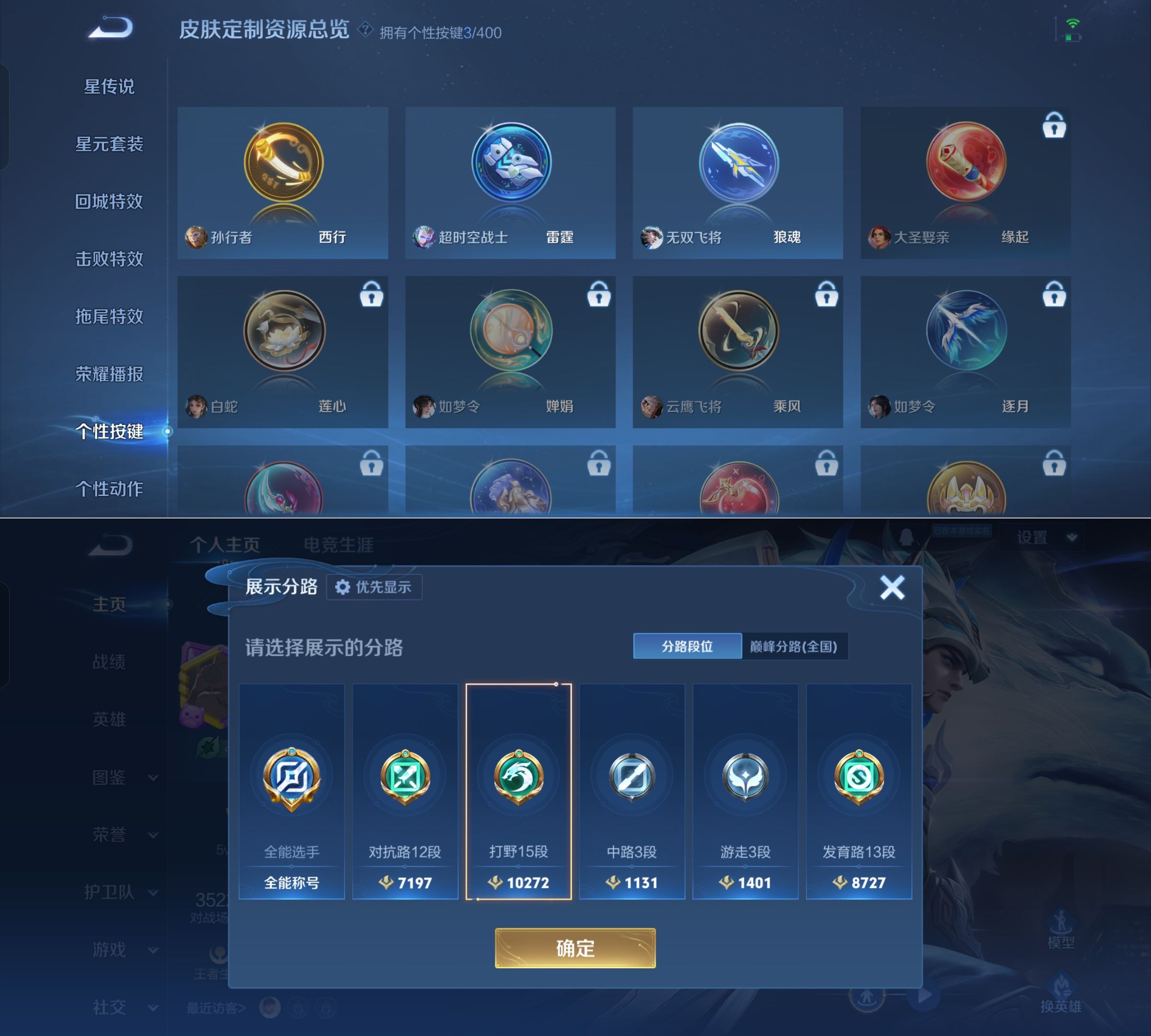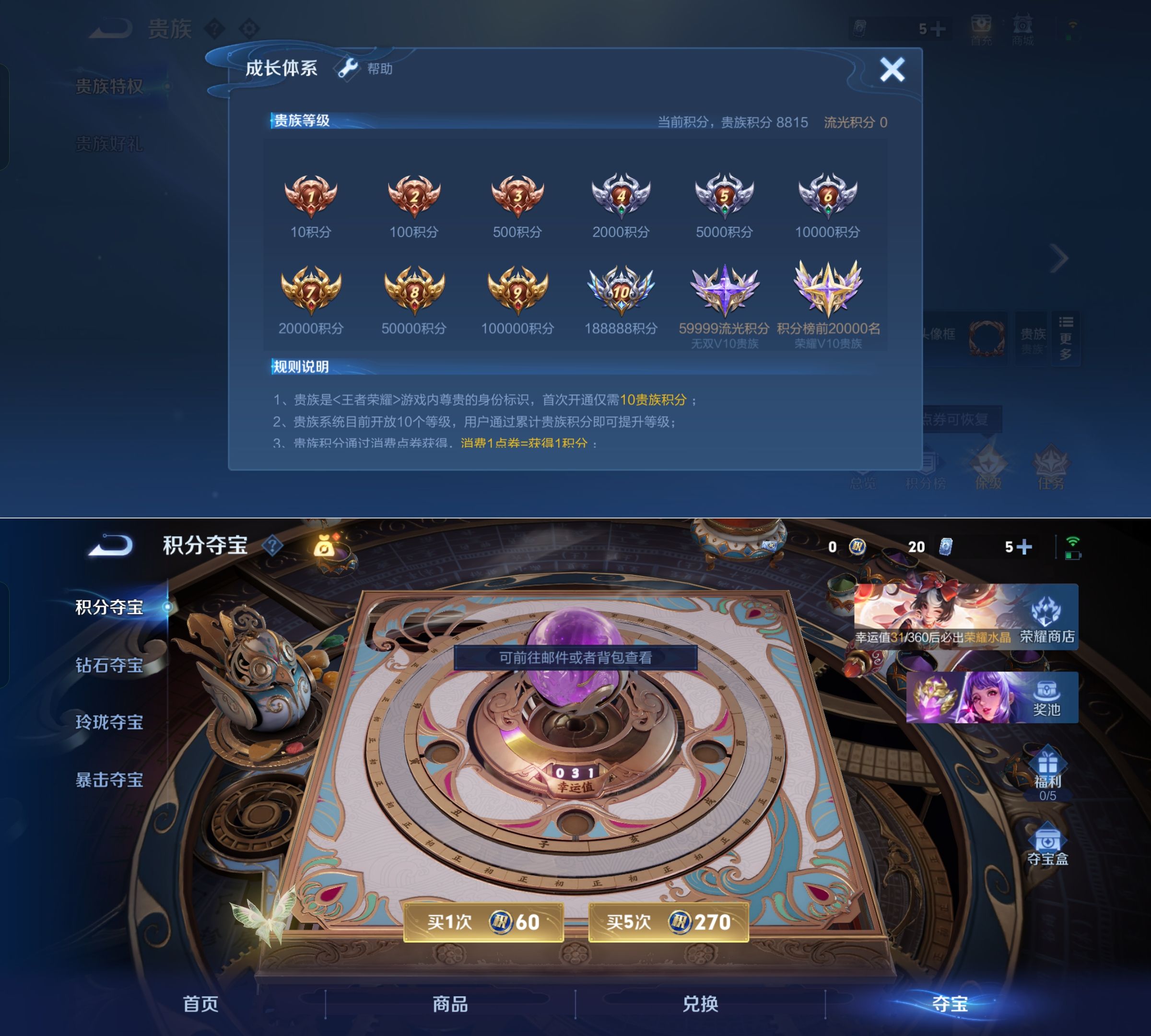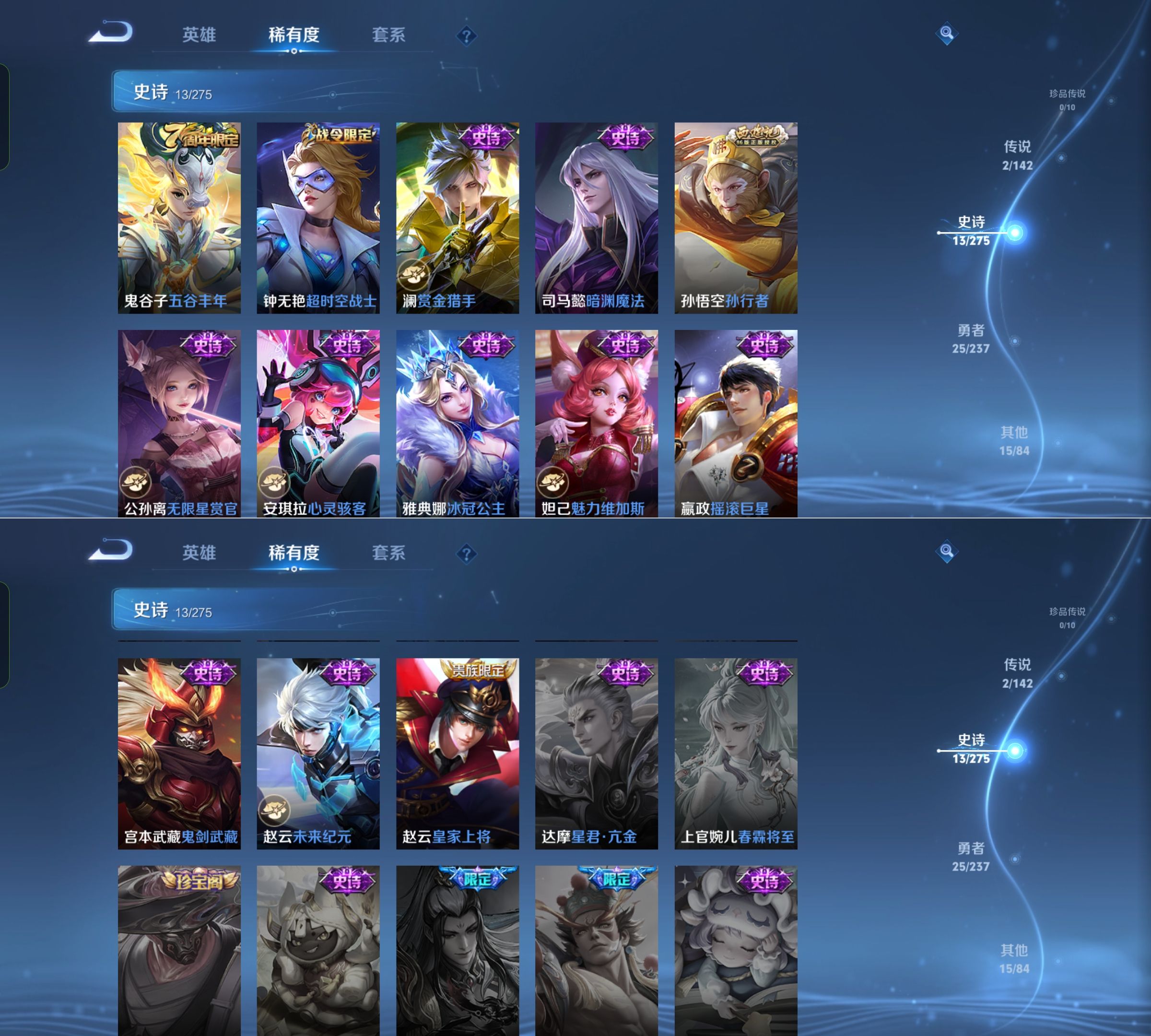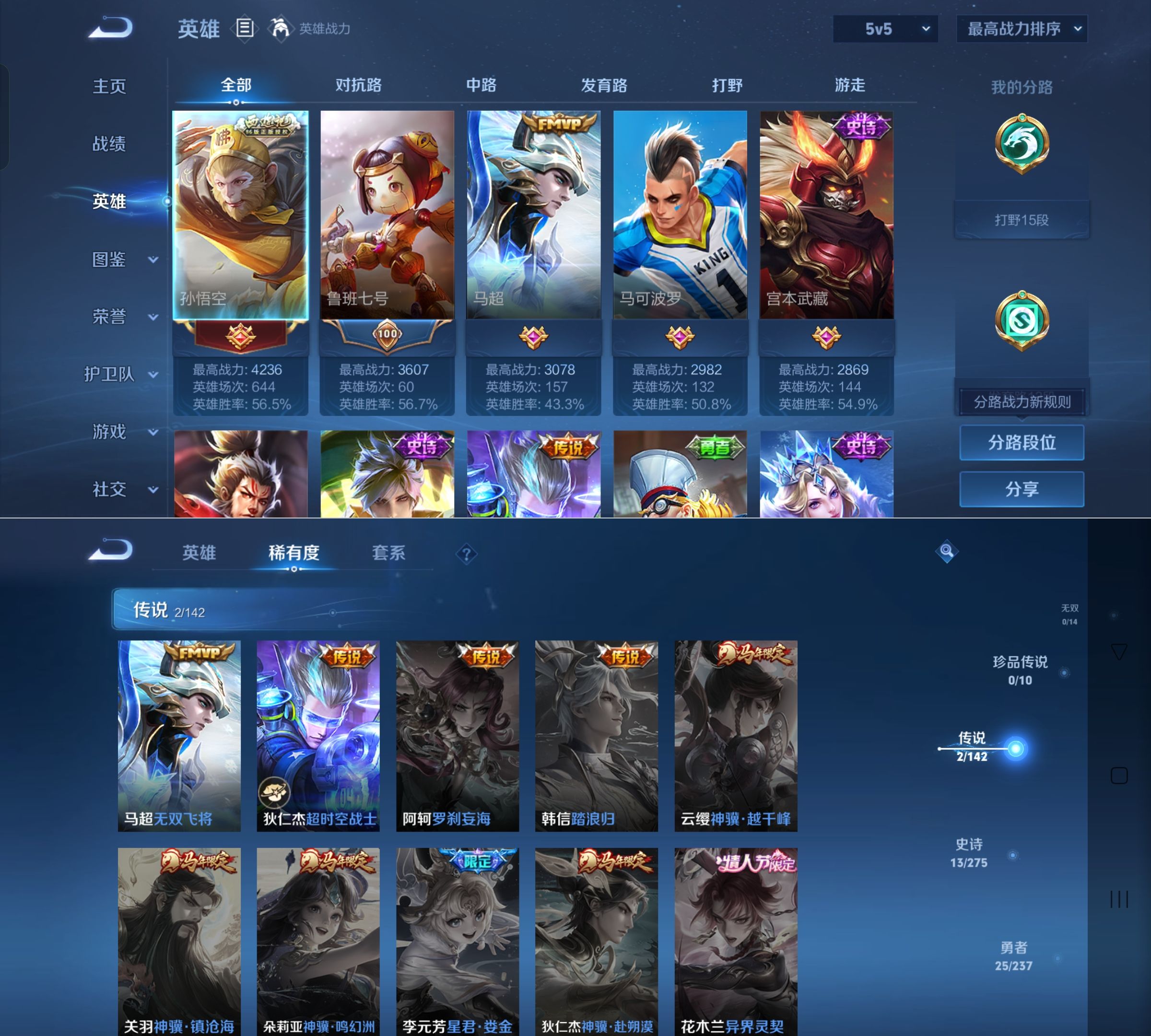 贵族等级:v5皮肤数:55传说品质2 英雄数:87