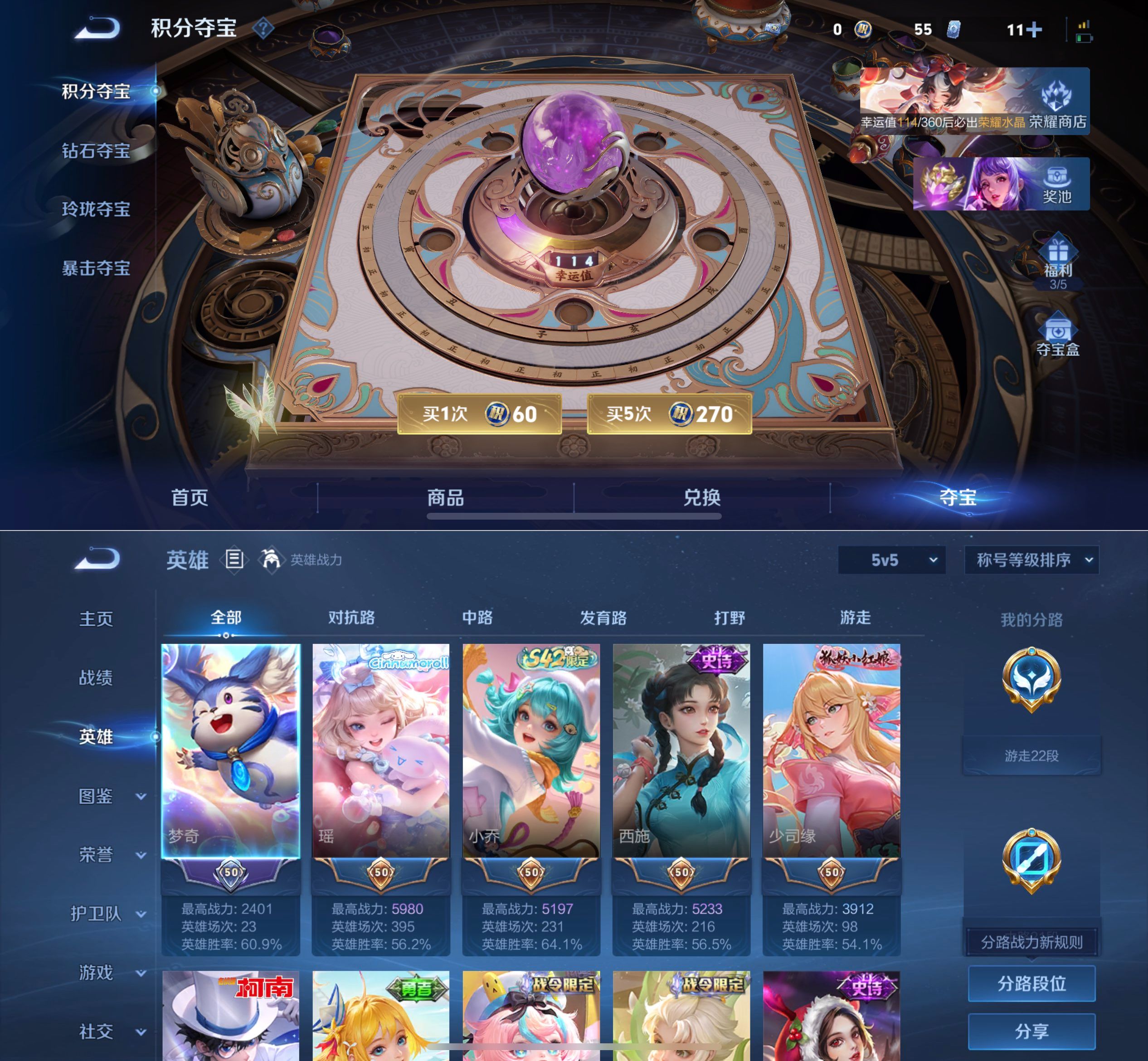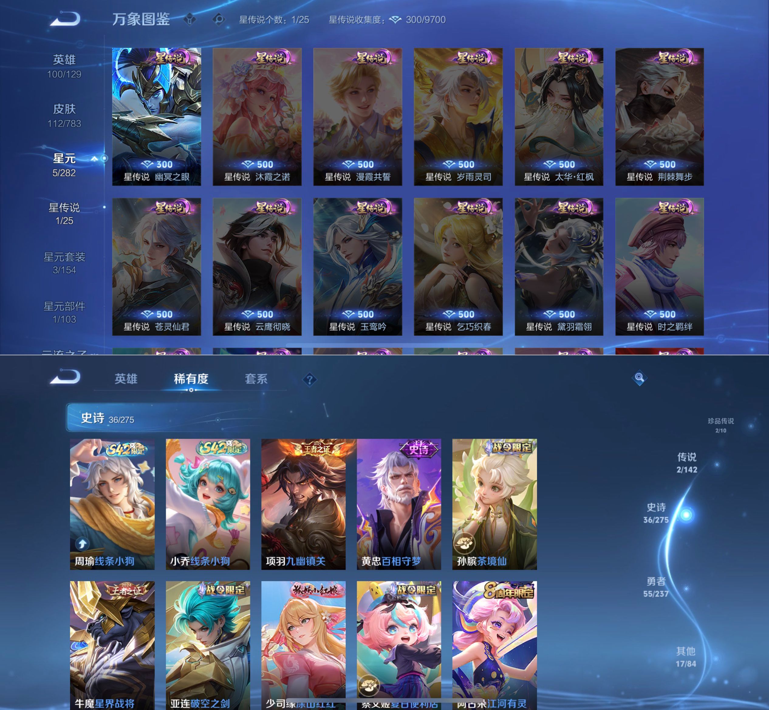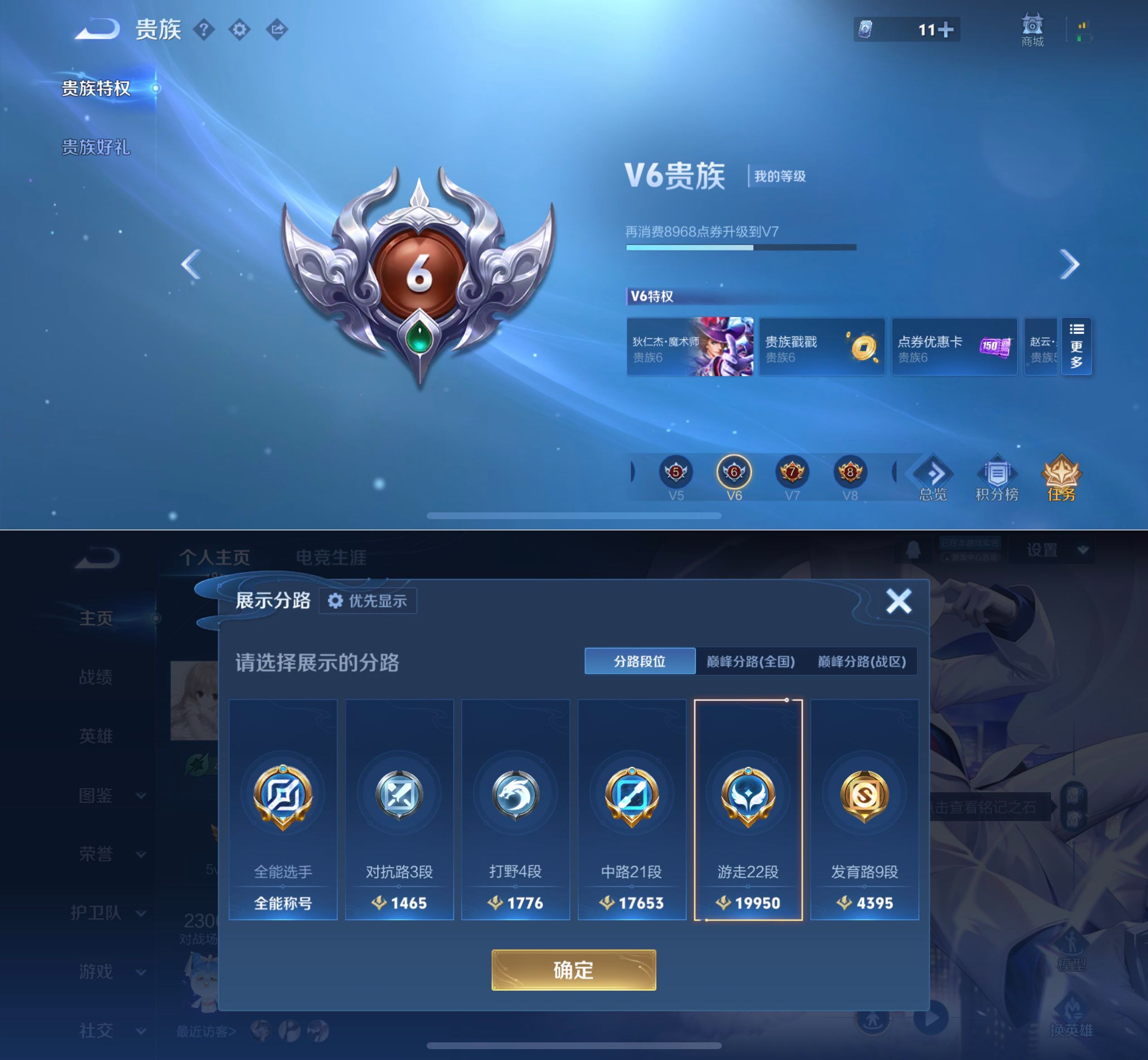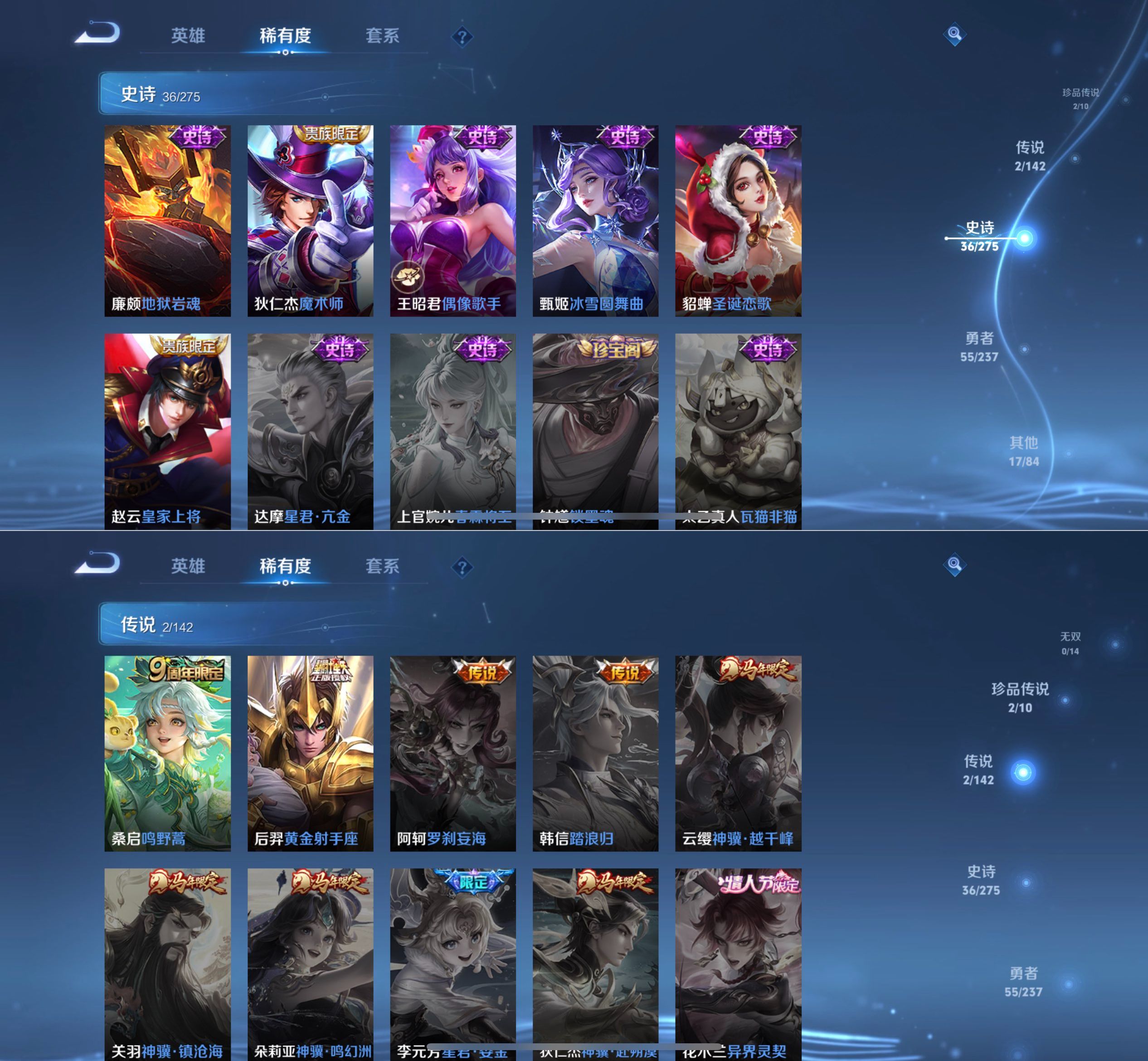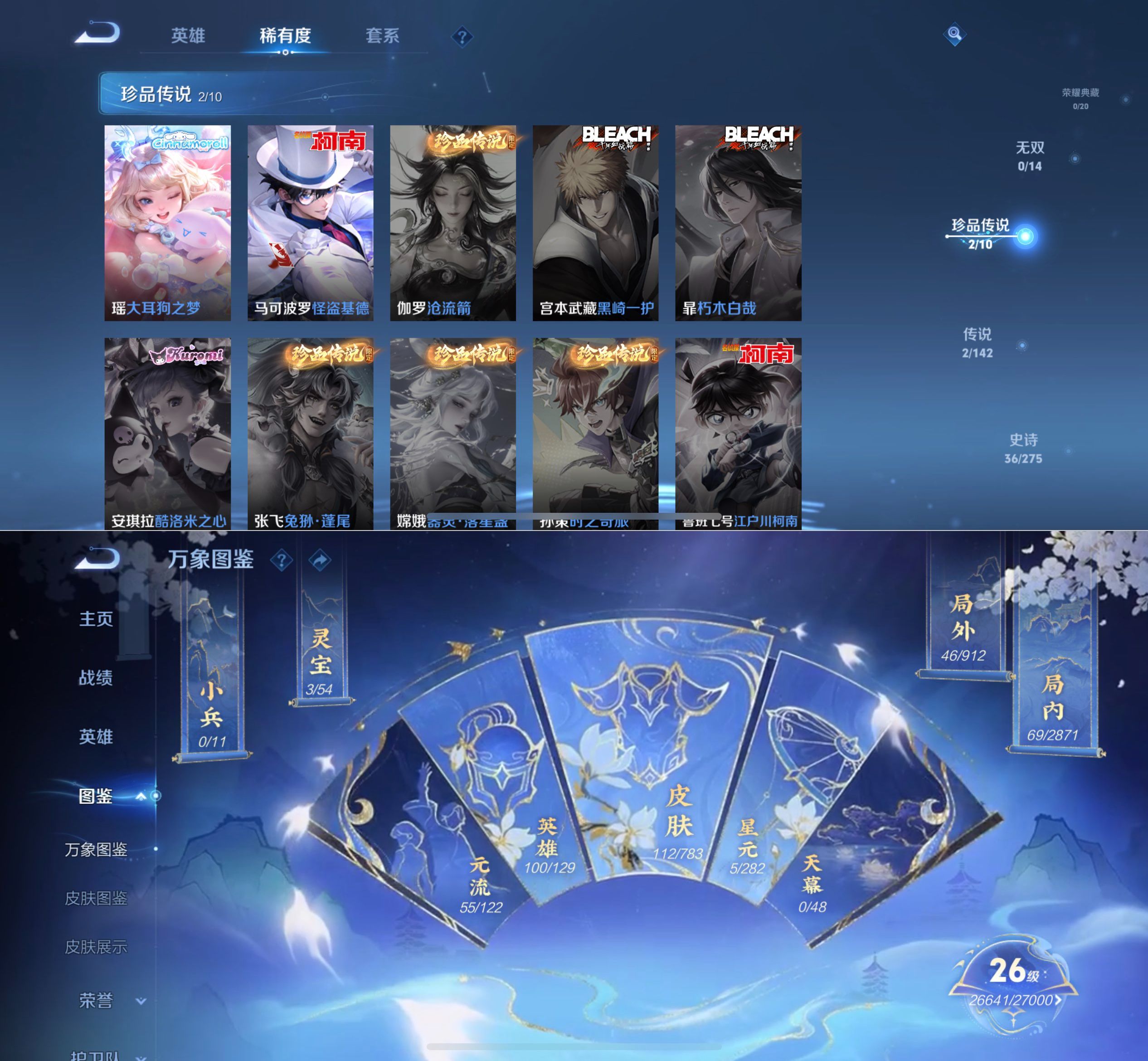 贵族等级:v6皮肤数:112传说品质2 珍品传说2 英雄数:100