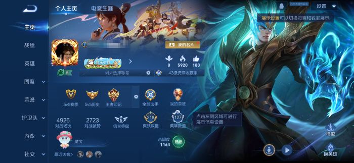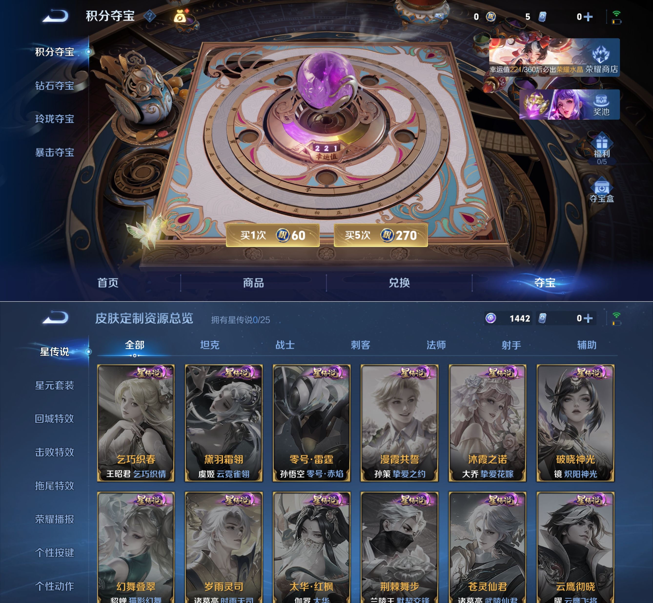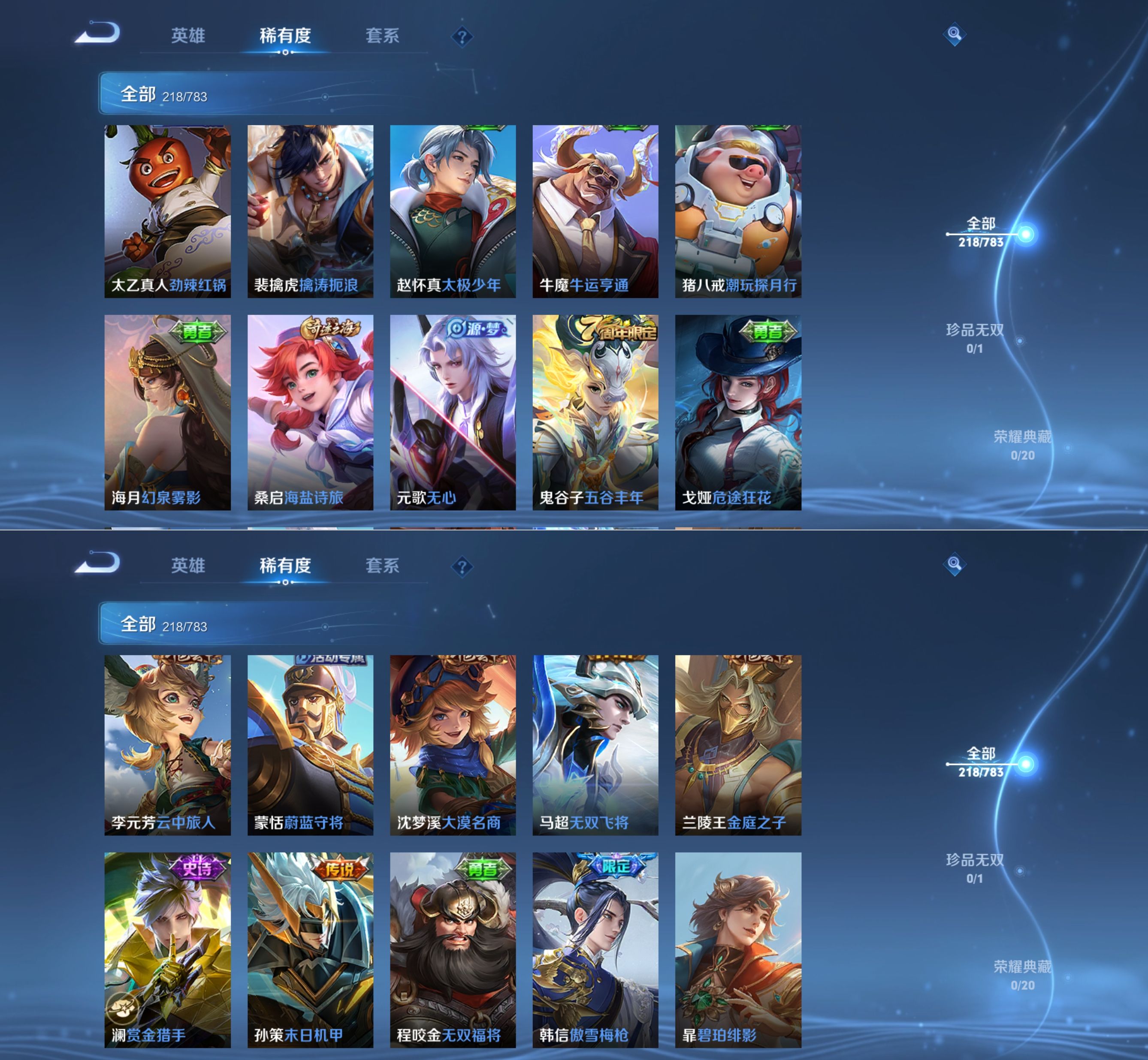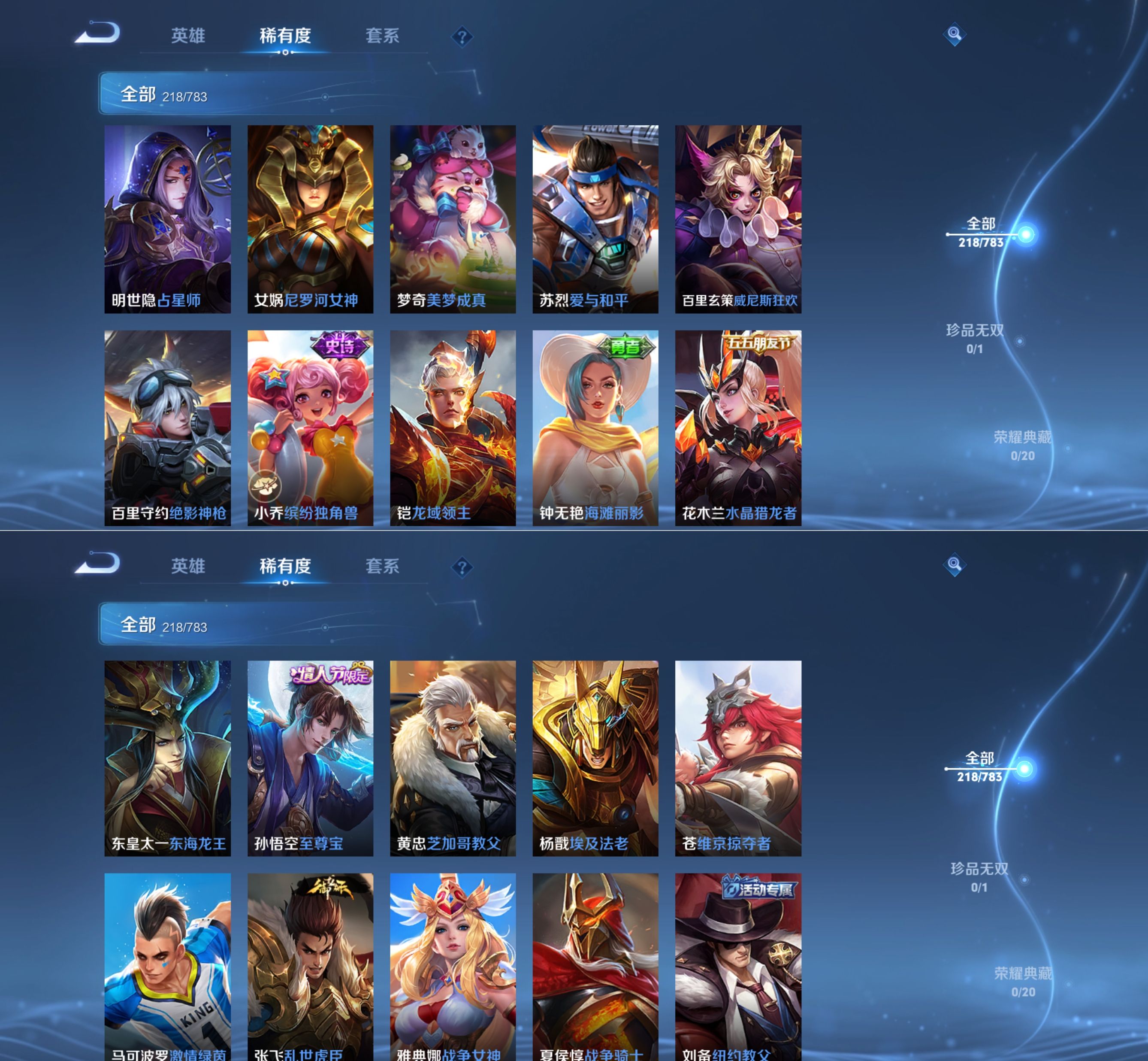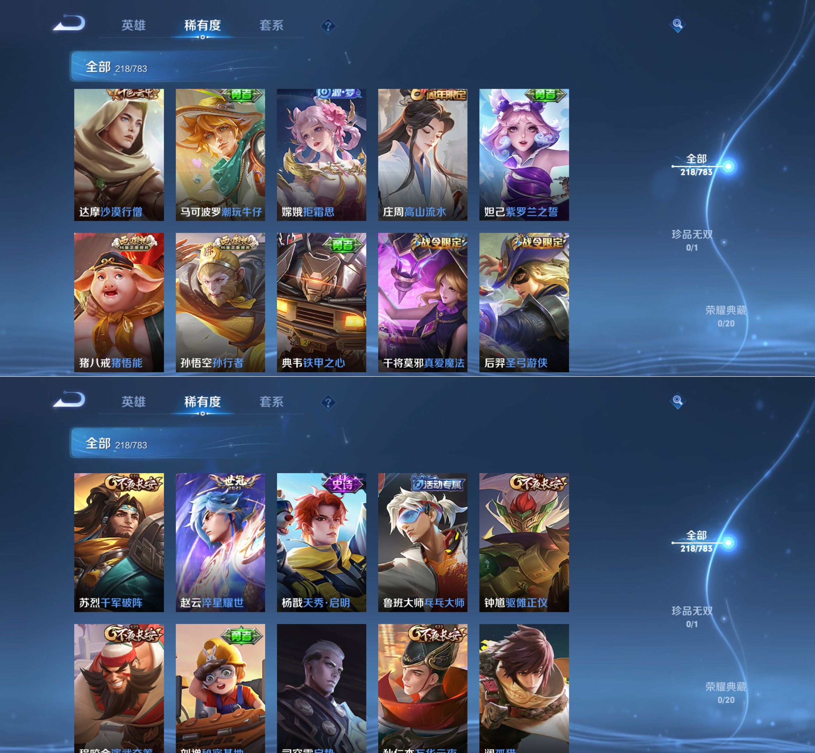 贵族等级:v7皮肤数:219传说品质10 情人节限定2 生肖限定1 英雄数:127