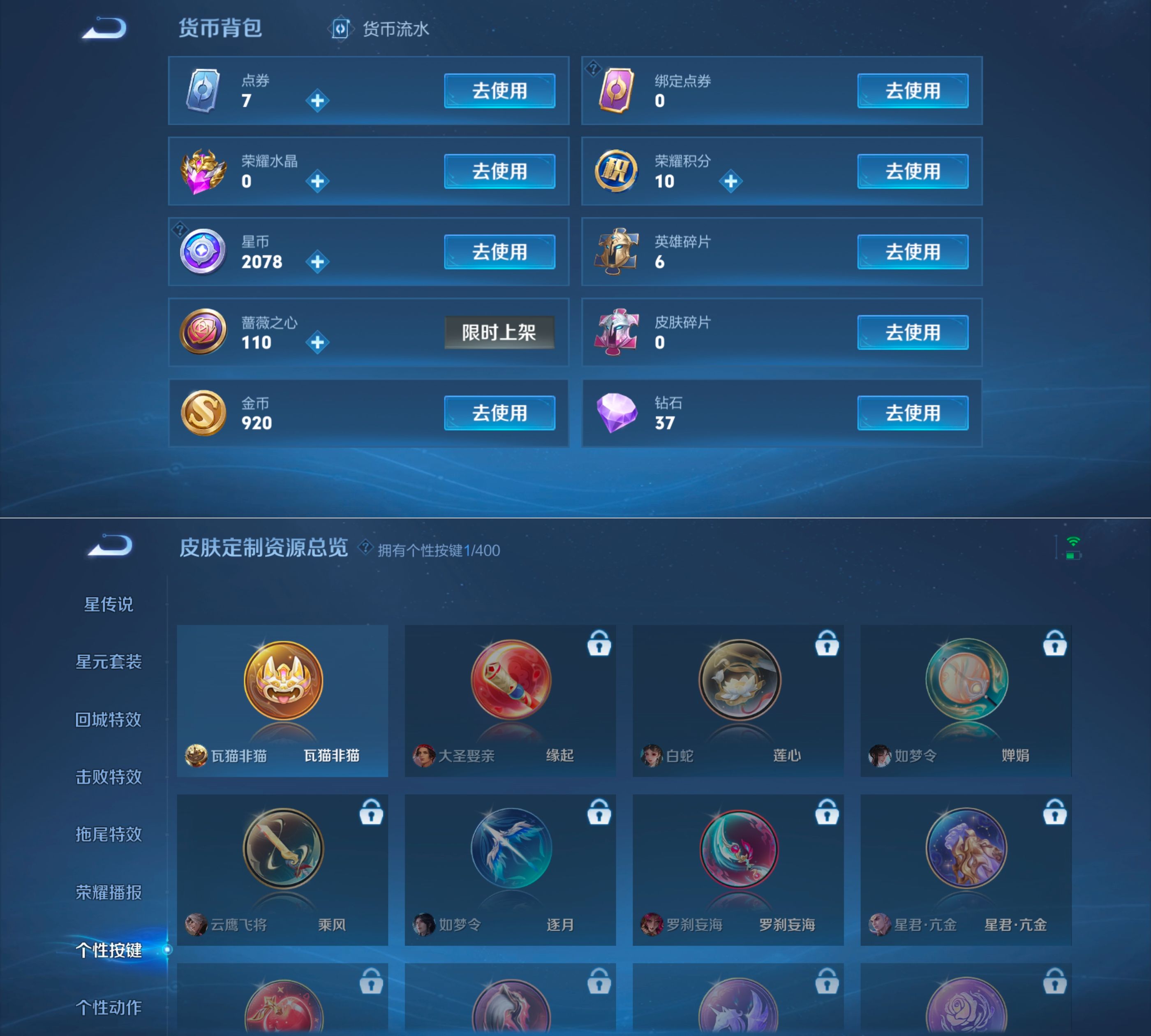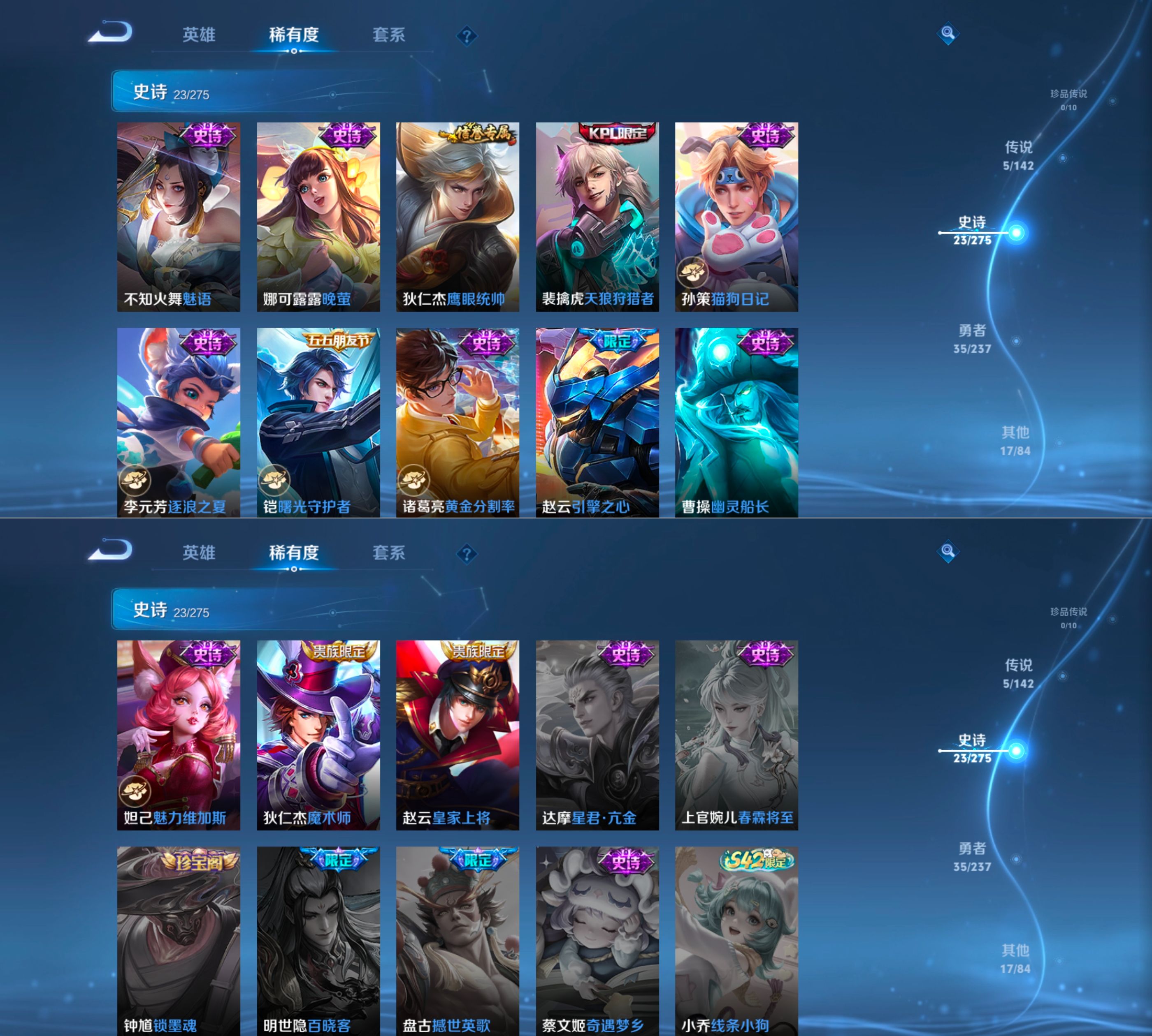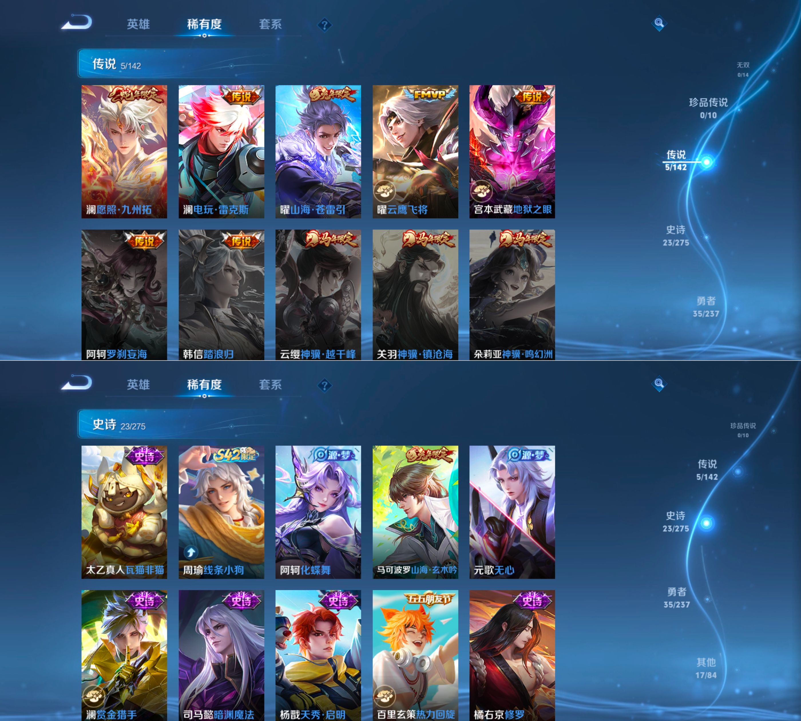 贵族等级:v7皮肤数:80传说品质5 生肖限定4 英雄数:110