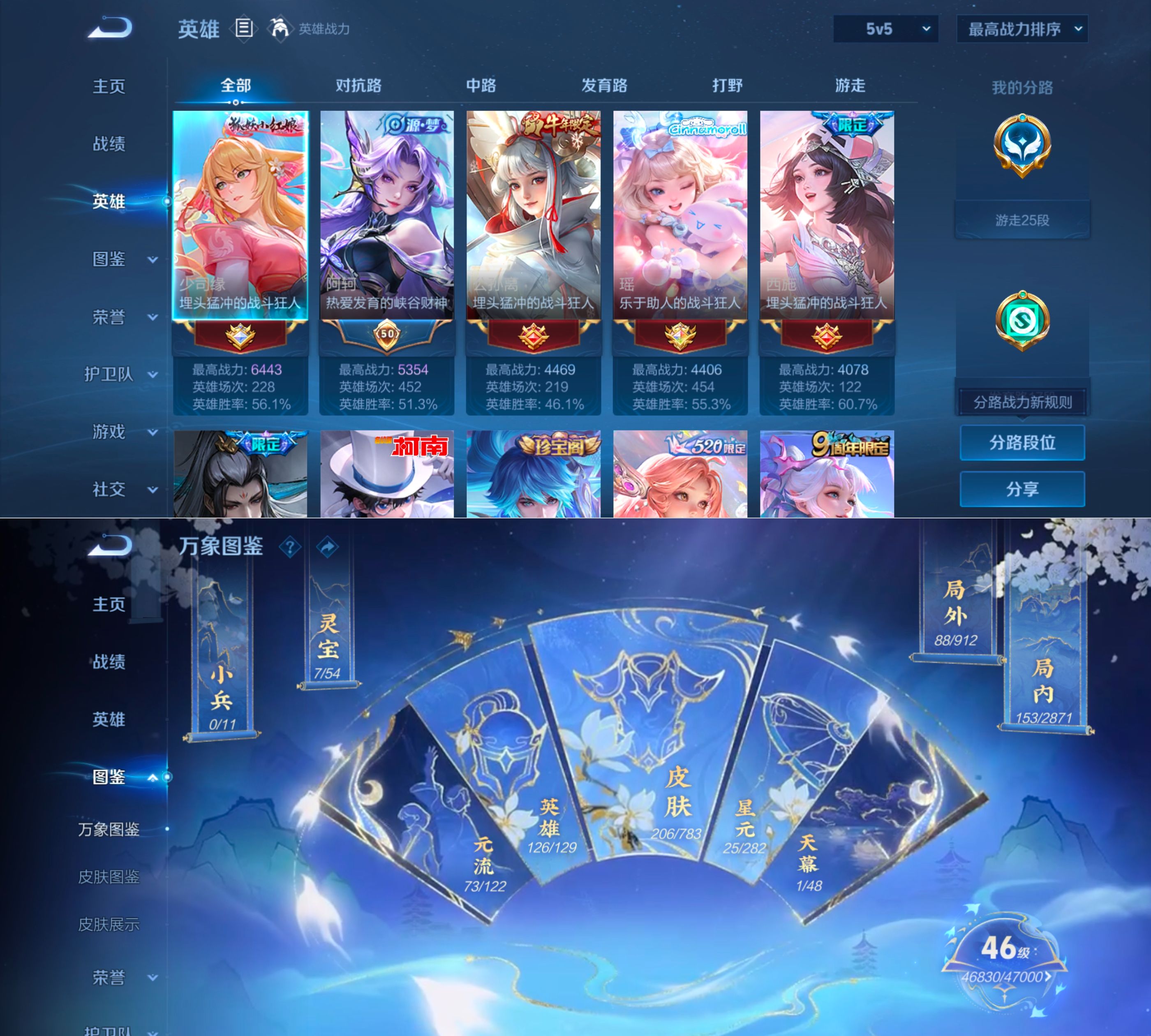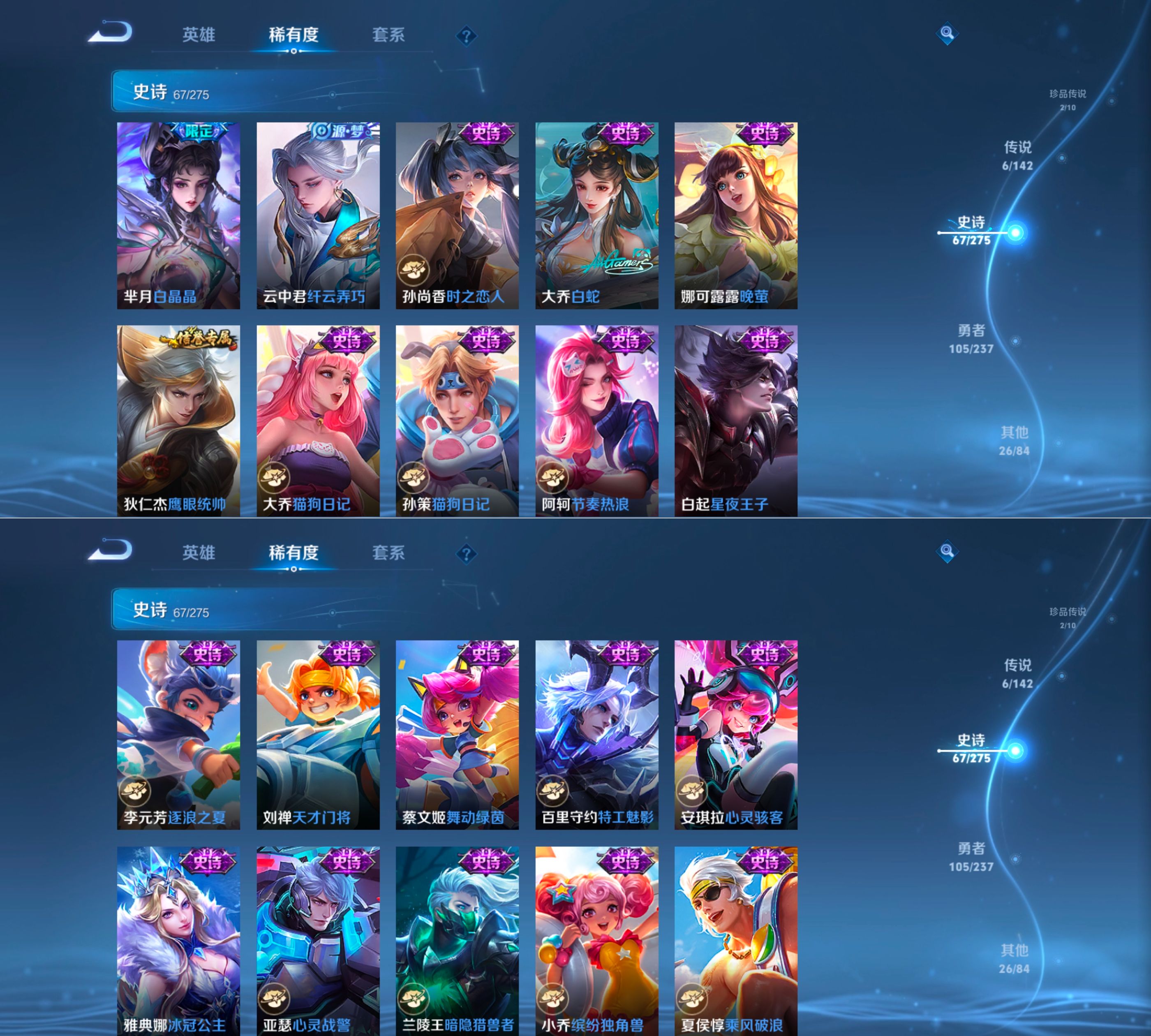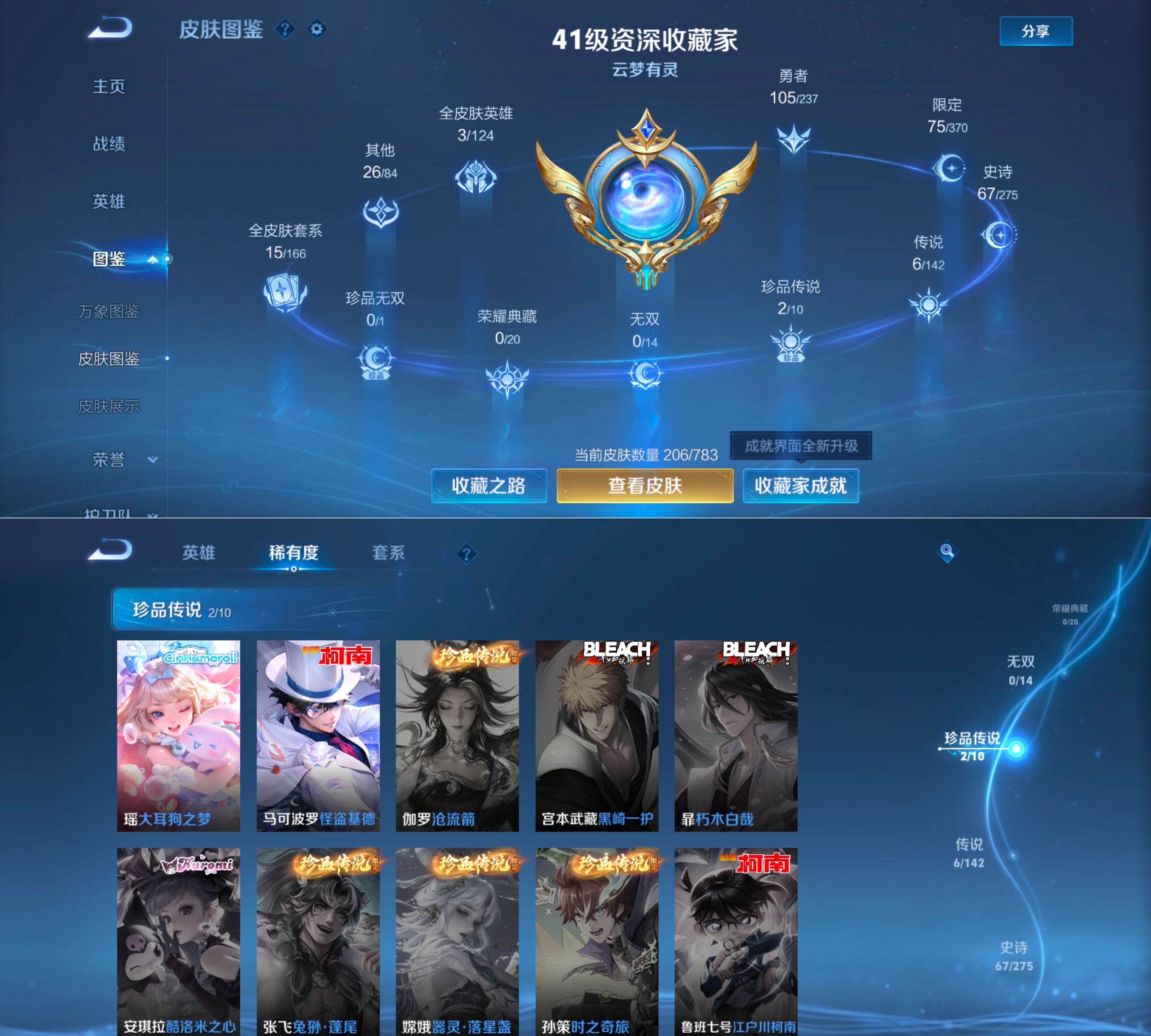 贵族等级:v6皮肤数:206传说品质6 珍品传说2 生肖限定3 英雄数:126