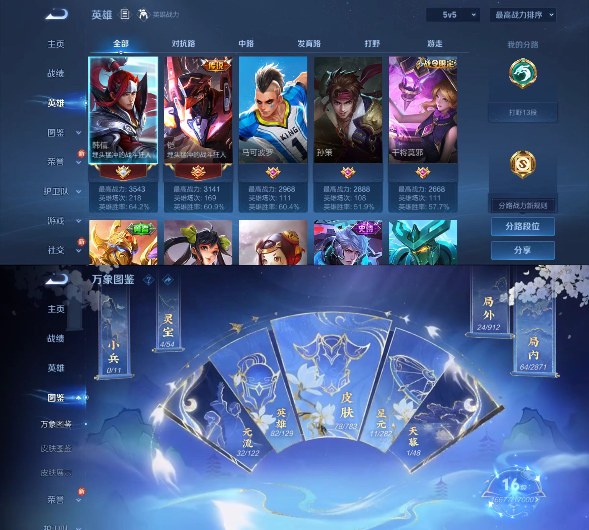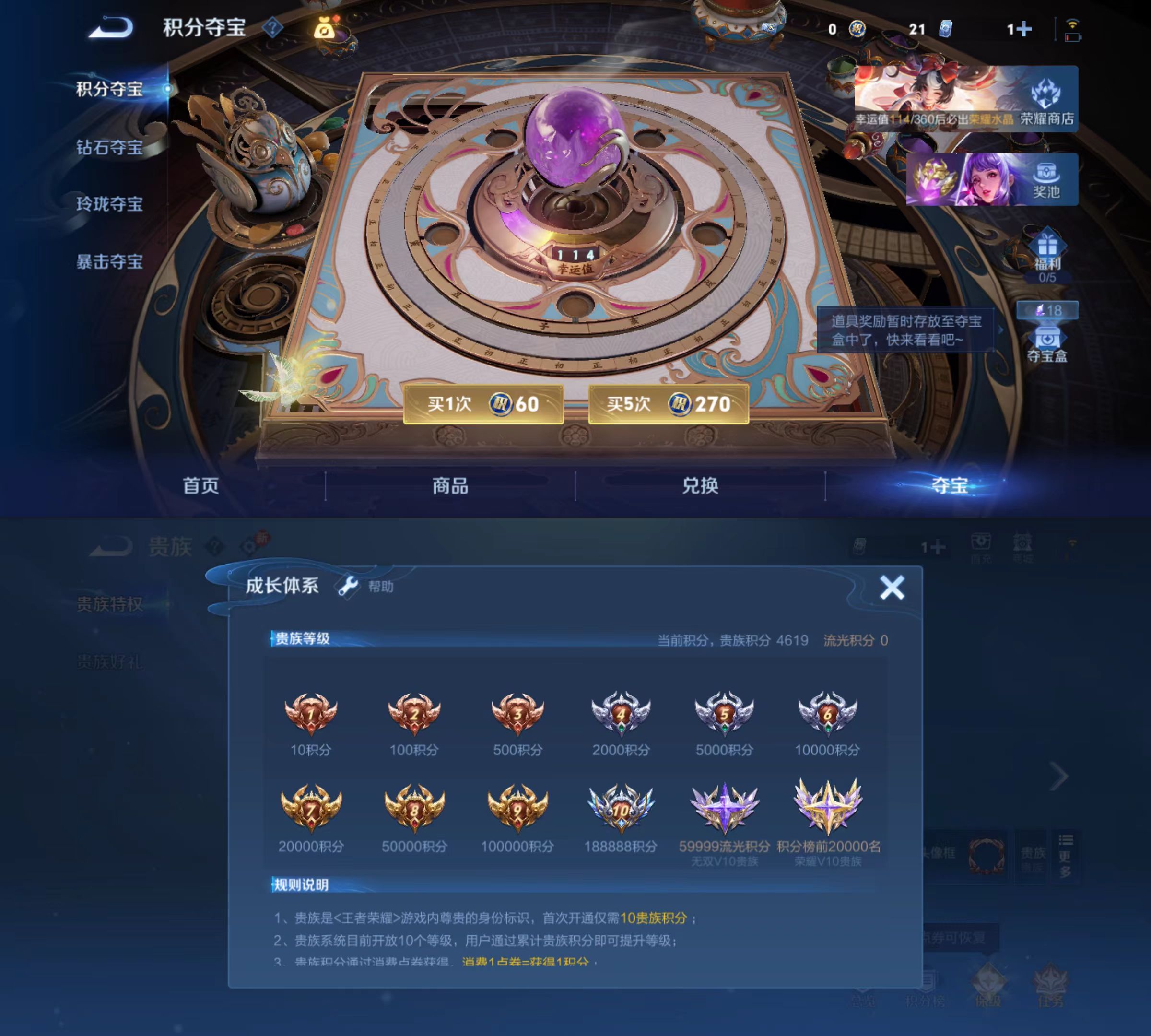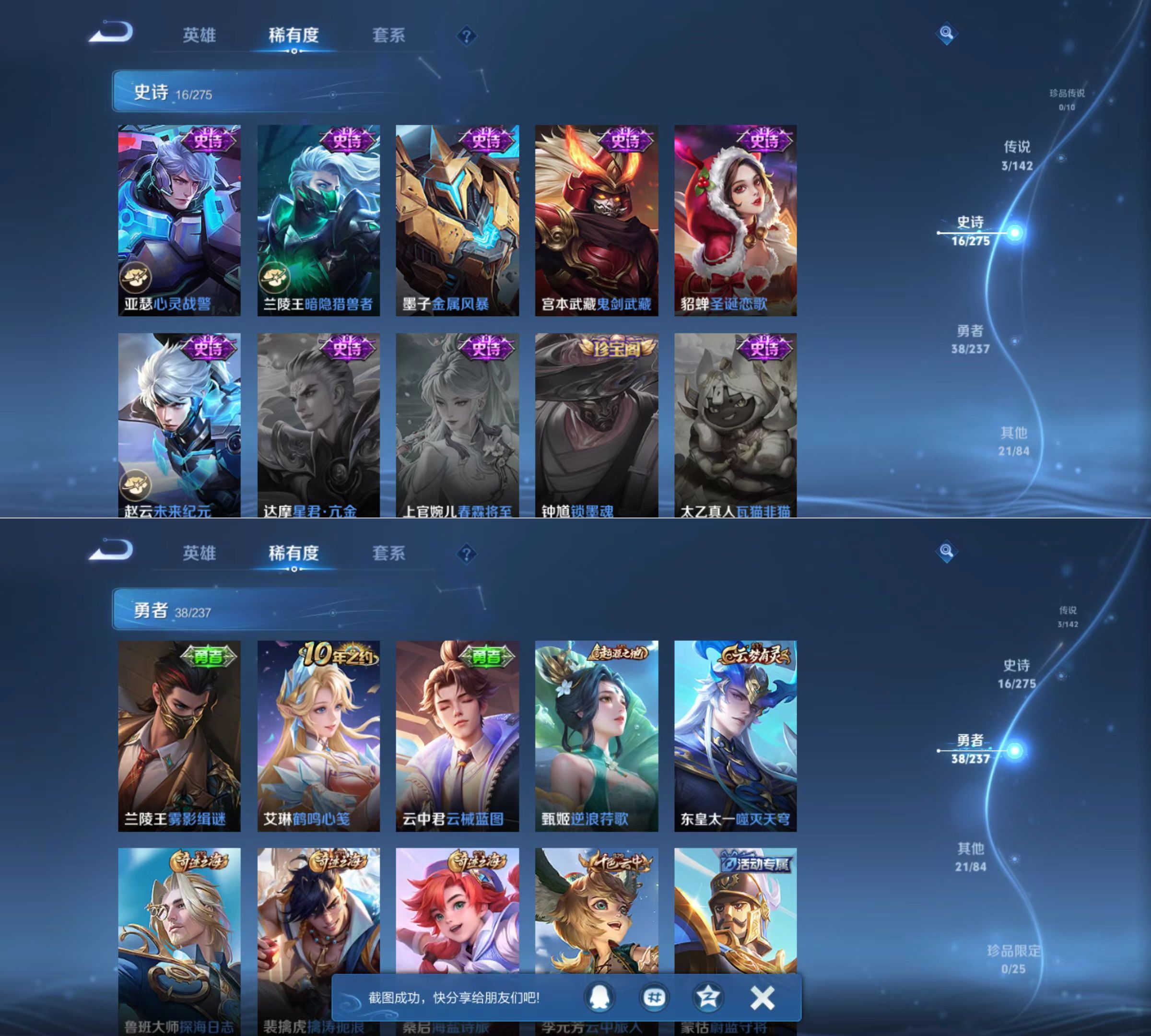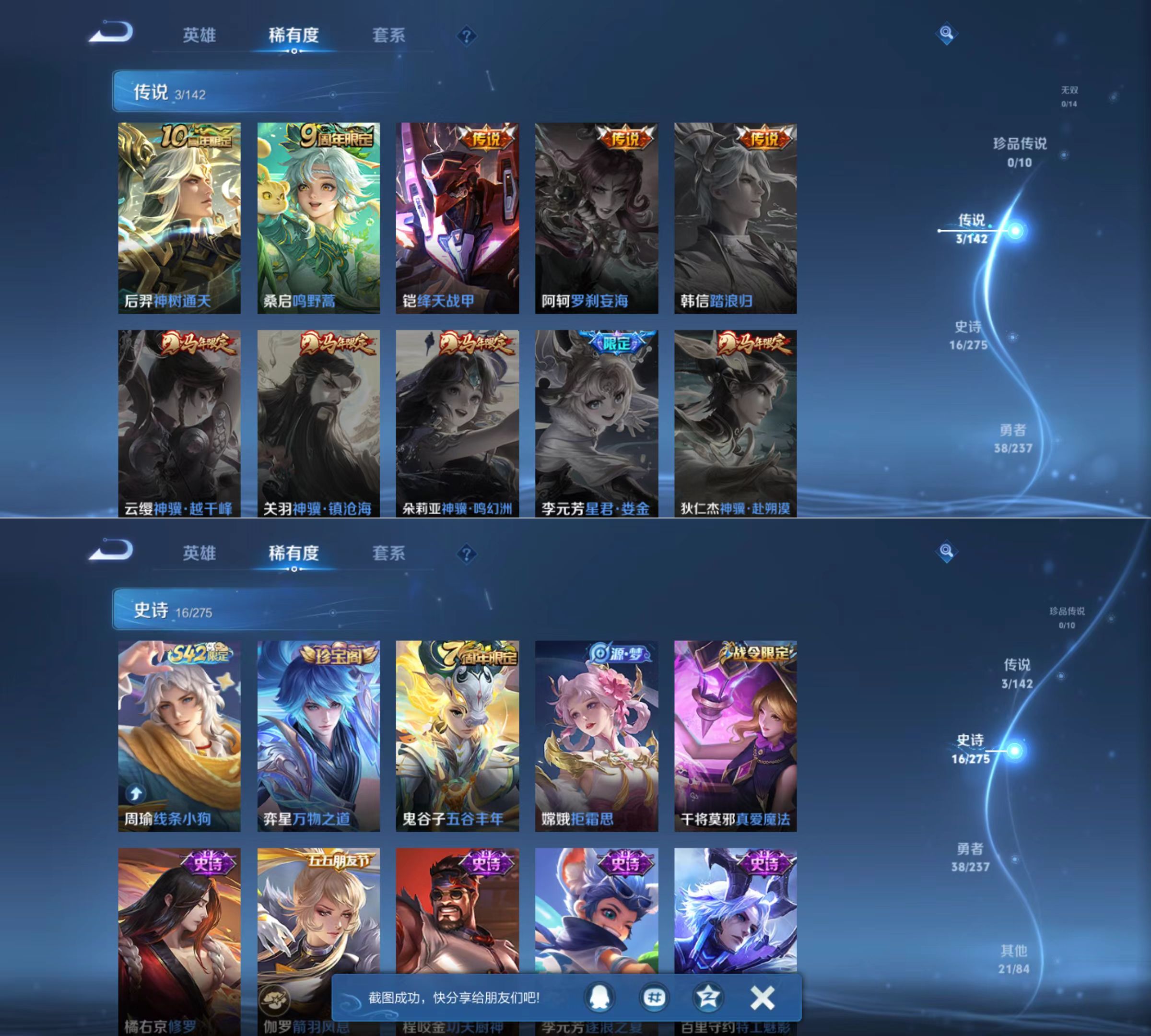贵族等级:v4皮肤数:79传说品质3 英雄数:82