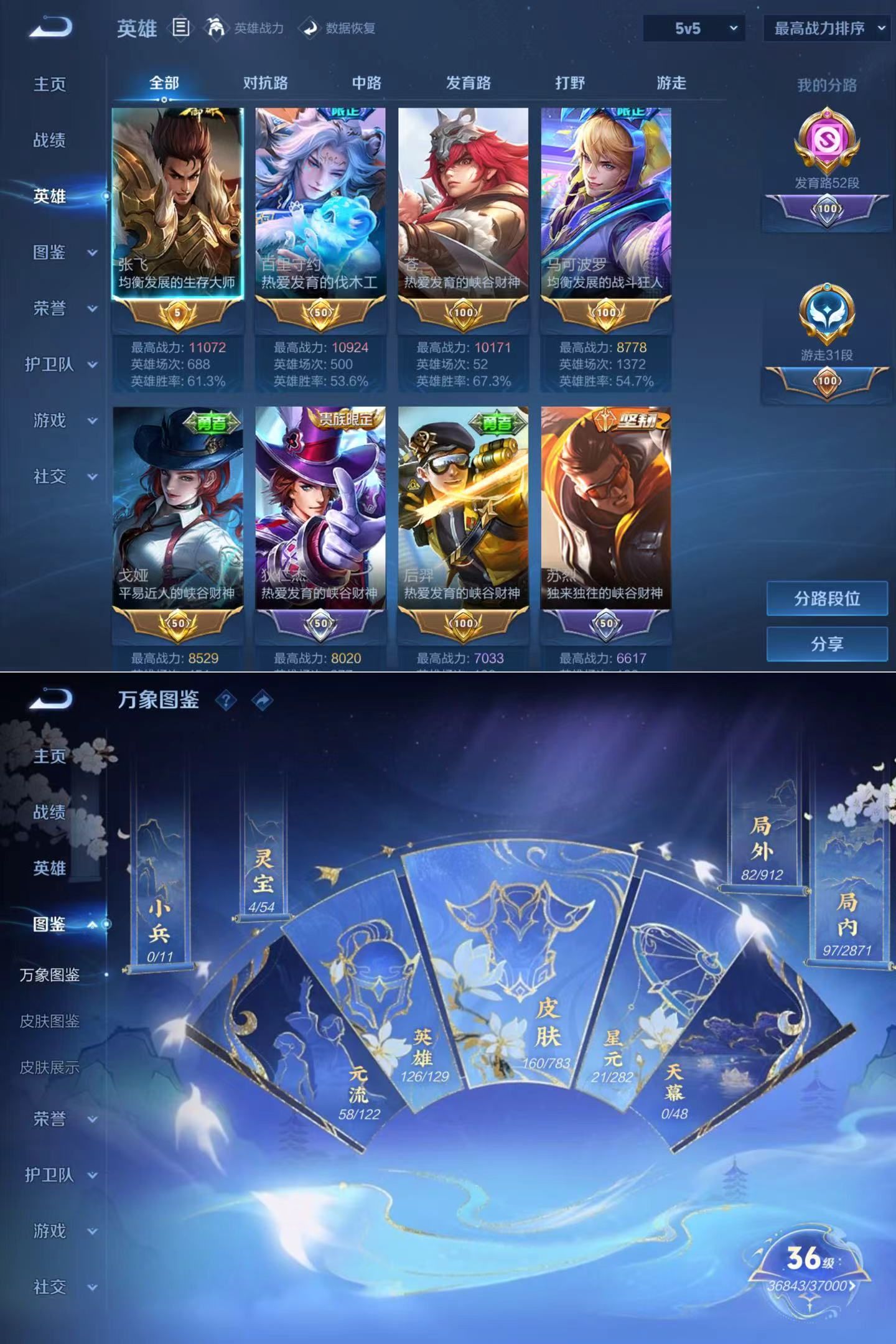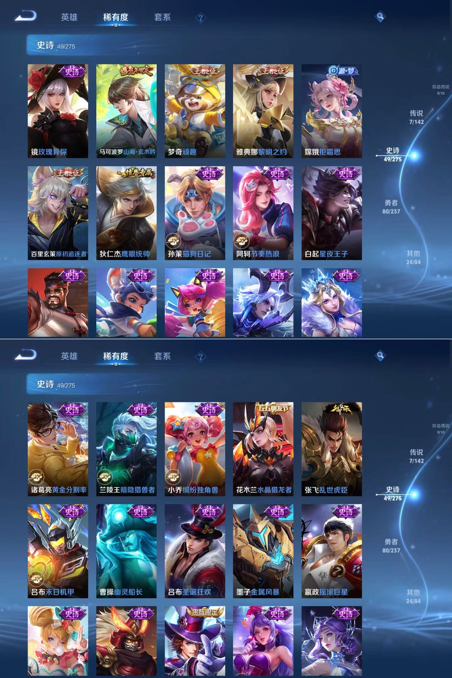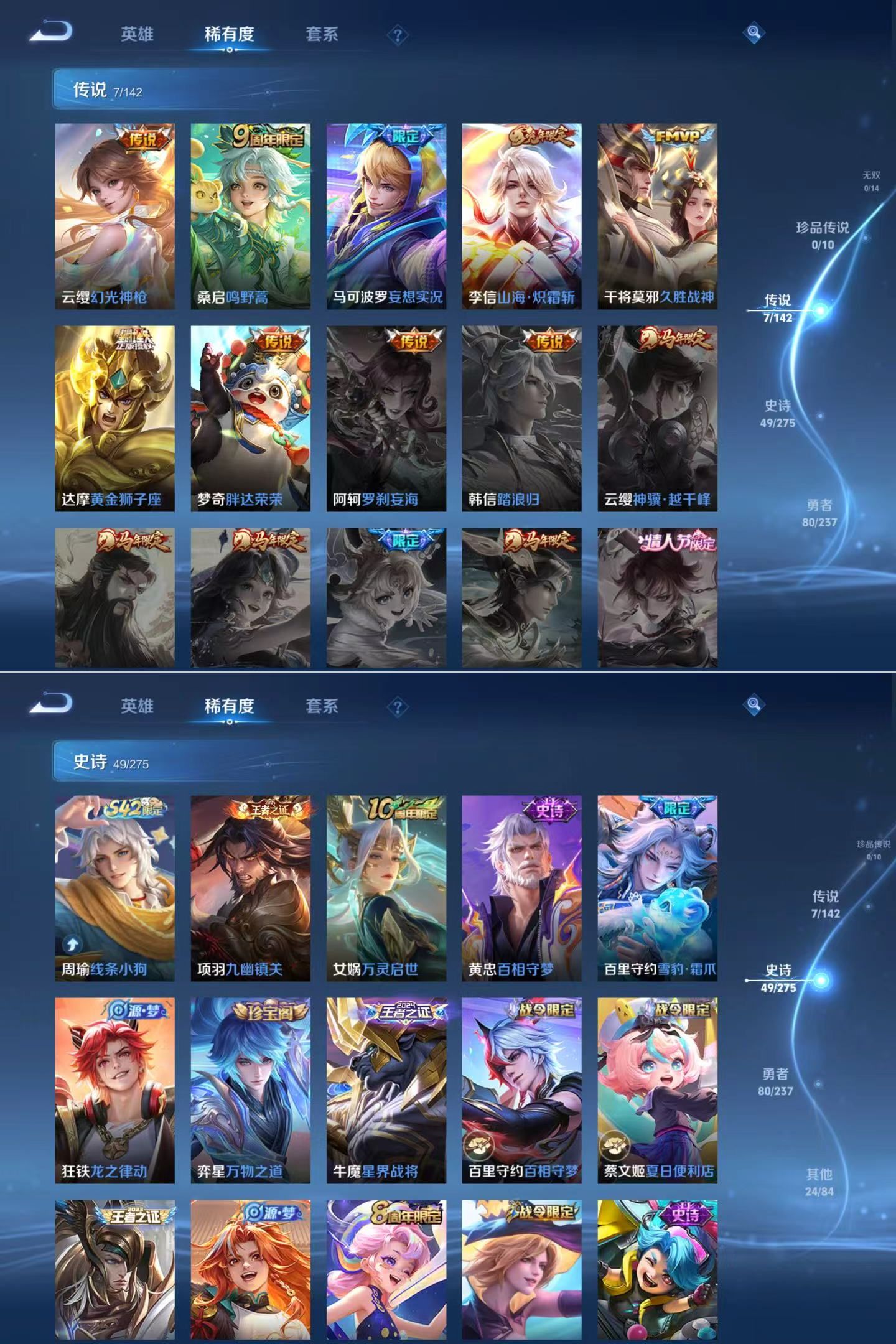 贵族等级:v6皮肤数:160传说品质7 生肖限定2 英雄数:126