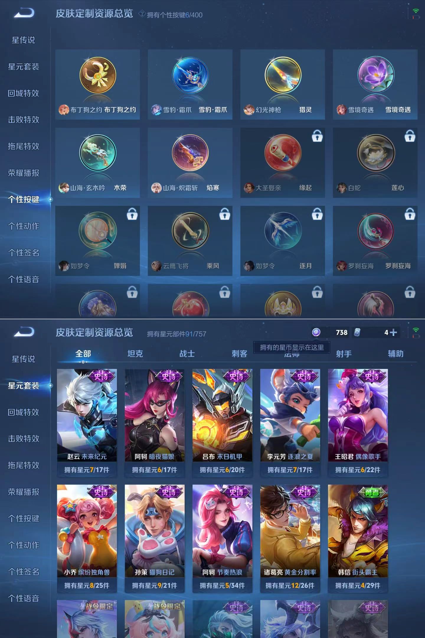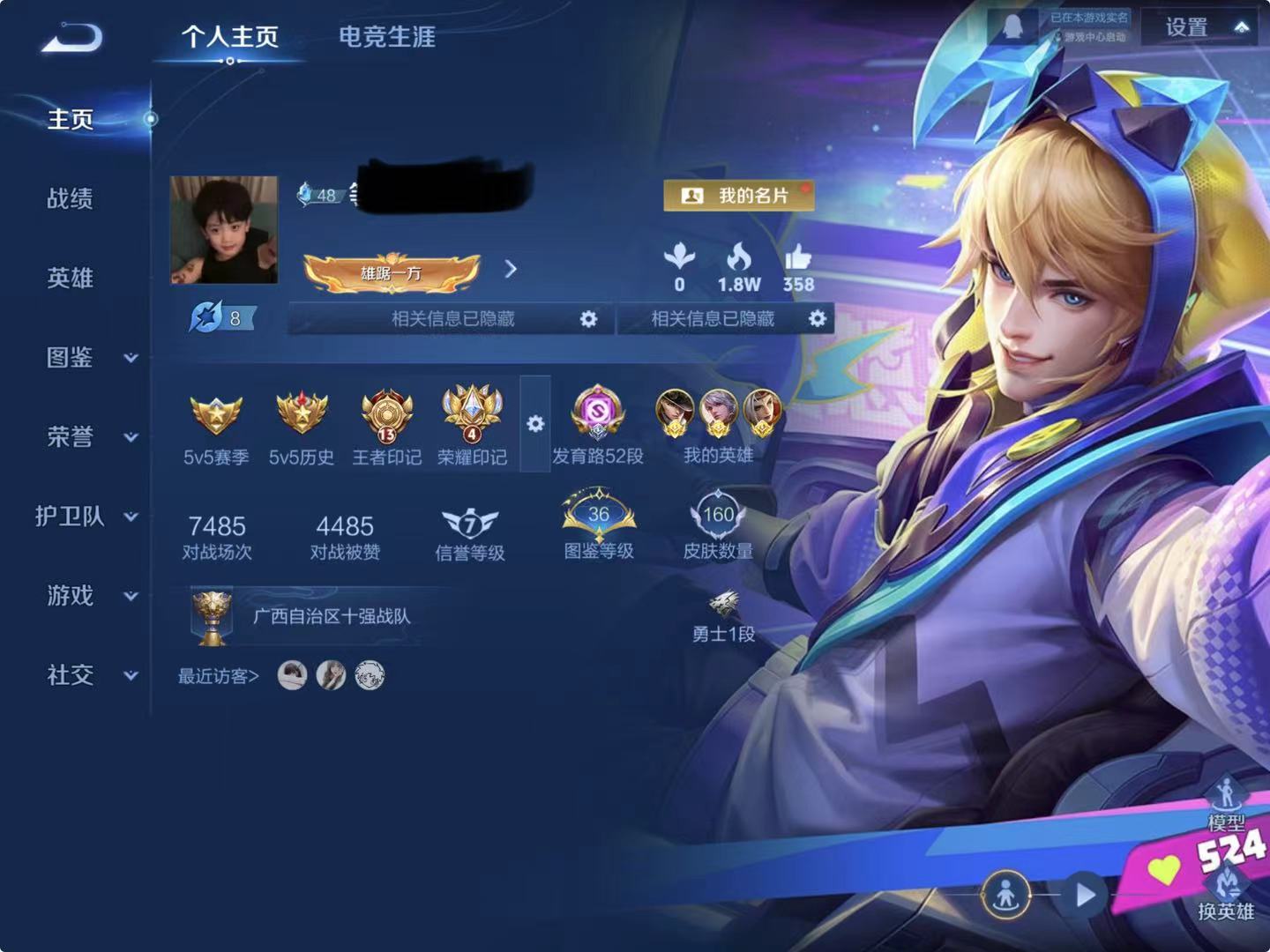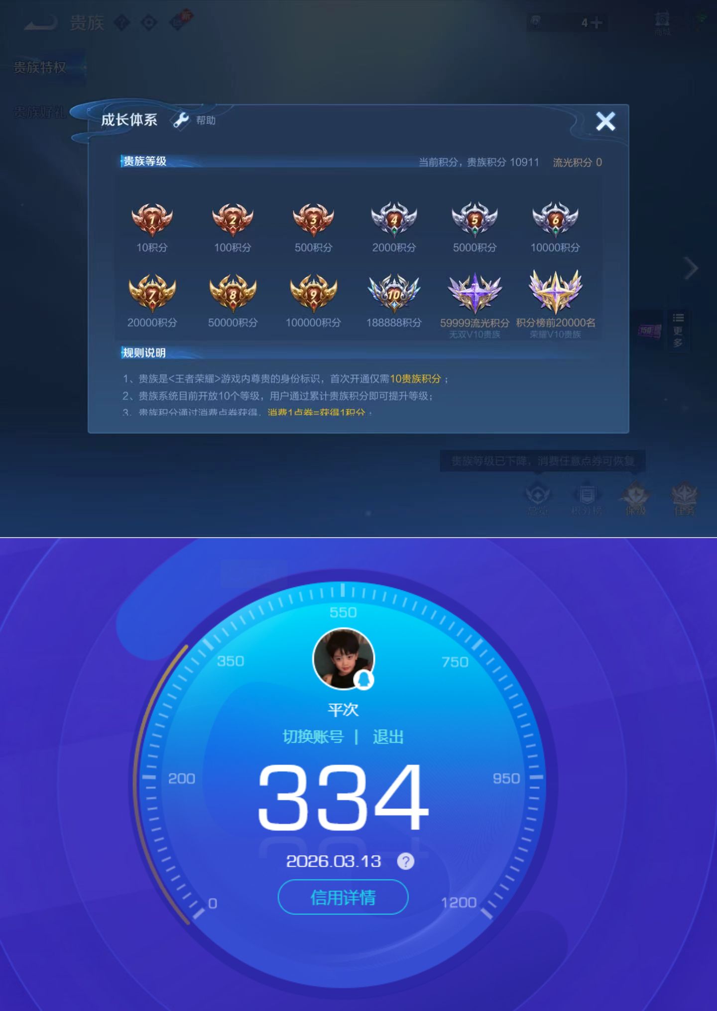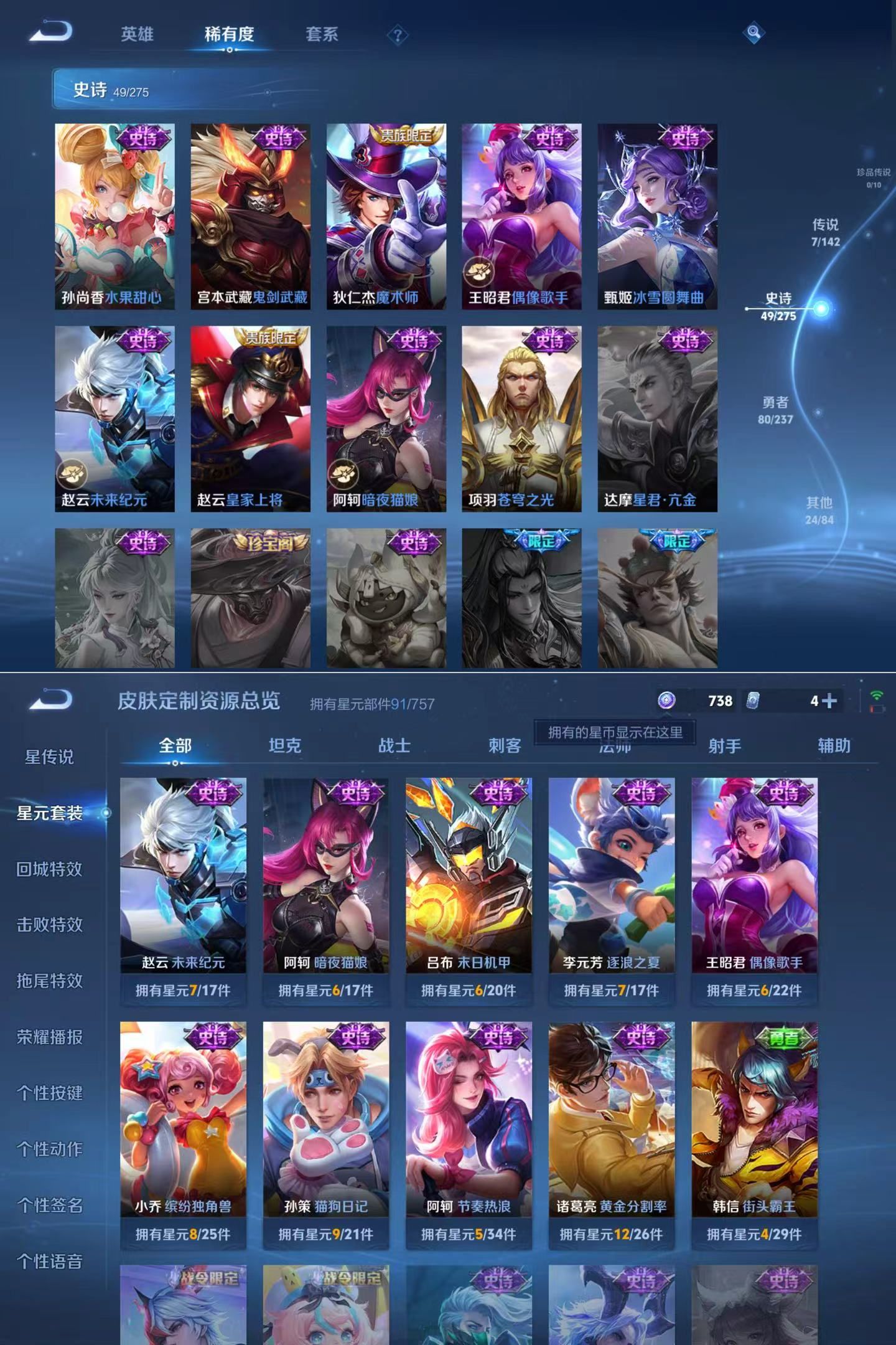 贵族等级:v6皮肤数:160传说品质7 生肖限定2 英雄数:126