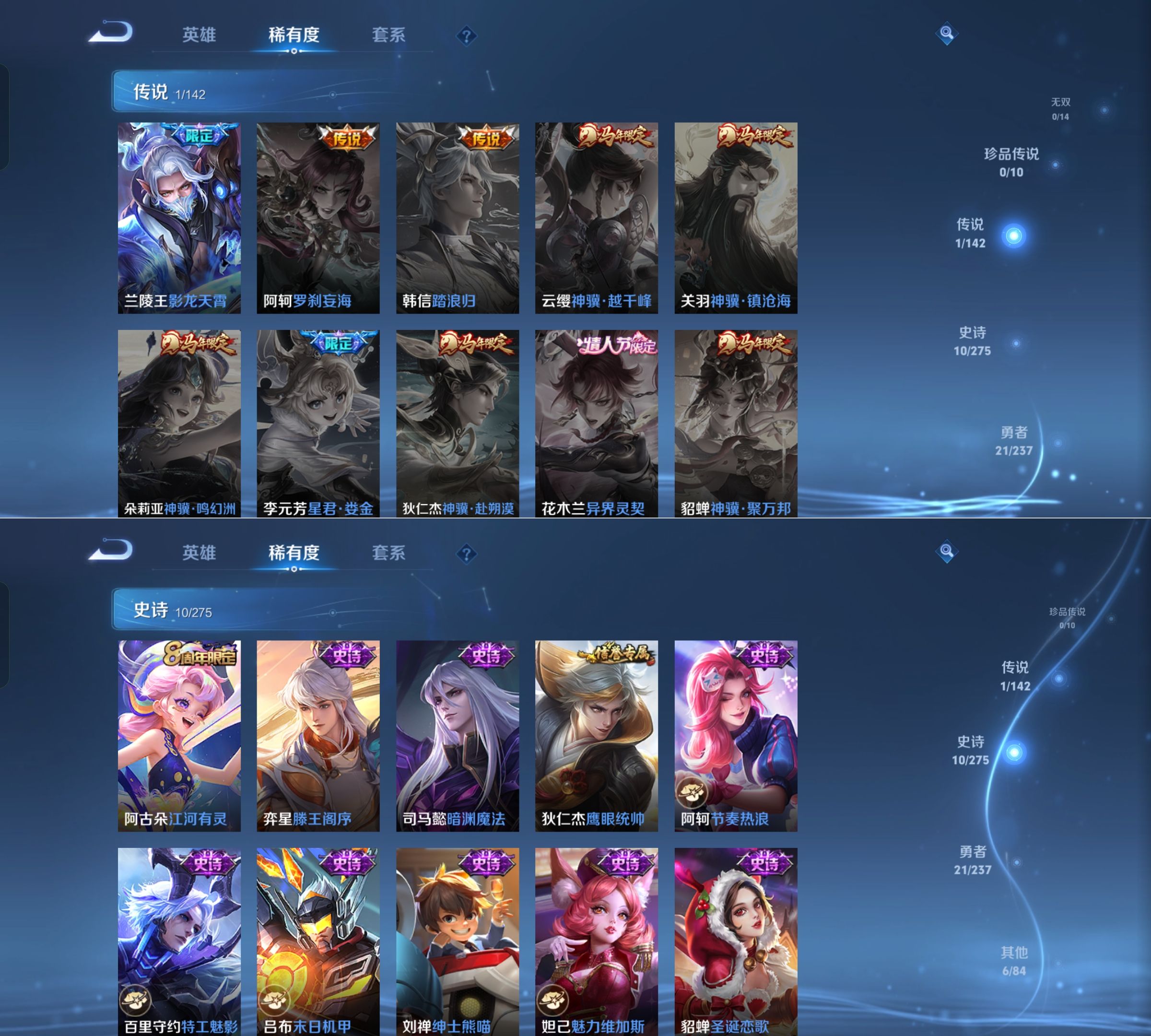 贵族等级:v4皮肤数:38传说品质1 英雄数:64