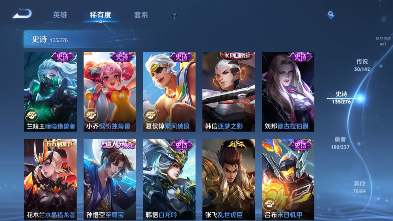 传说品质_后羿_黄金射手座传说品质_后羿_神树通天传说品质_关羽_神骥·镇沧海传说品质_司空震_愿照·山河定传说品质_诸葛亮_时雨天司传说品质_孙悟空_零号·赤焰传说品质_孙悟空_地狱火传说品质_马超_无双飞将传说品质_杨戬_永曜之星传说品质_干将莫邪_久胜战神传说品质_宫本武藏_地狱之眼传说品质_宫本武藏_惊梅引传说品质_元歌_诡秘之主传说品质_花木兰_冠军飞将传说品质_李信_一念神魔传说品质_梦奇_胖达荣荣传说品质_司马懿_九山相柳传说品质_桑启_鸣野蒿传说品质_张良_黄金白羊座传说品质_云缨_幻光神枪传说品质_李白_凤求凰传说品质_曹操_万灵伏威传说品质_大司命_死亡执政官传说品质_曜_云鹰飞将传说品质_曜_李逍遥 传说品质_狄仁杰_超时空战士传说品质_达摩_黄金狮子座传说品质_虞姬_启明星使传说品质_百里玄策_白虎志传说品质_裴擒虎_祥瑞亨通