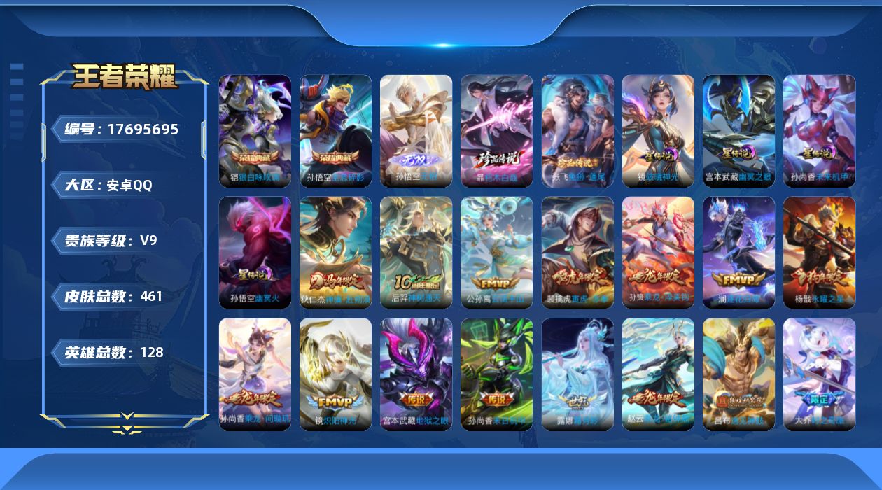 传说品质_后羿_黄金射手座传说品质_后羿_神树通天传说品质_澜_逐花归海传说品质_孙悟空_零号·赤焰传说品质_孙悟空_地狱火传说品质_吕布_曦玄引传说品质_吕布_遇见神鼓传说品质_大乔_时之奇旅传说品质_杨戬_永曜之星传说品质_宫本武藏_地狱之眼传说品质_宫本武藏_惊梅引传说品质_花木兰_冠军飞将传说品质_镜_炽阳神光传说品质_貂蝉_猫影幻舞传说品质_貂蝉_曦玄引传说品质_貂蝉_仲夏夜之梦传说品质_孙尚香_末日机甲传说品质_孙尚香_乘龙·问璇玑传说品质_桑启_鸣野蒿传说品质_露娜_霜月吟传说品质_刘备_时之恋人传说品质_云缨_幻光神枪传说品质_孙膑_小动物乐团传说品质_公孙离_云诺千山传说品质_孙策_乘龙·淬吴钩传说品质_狄仁杰_超时空战士传说品质_狄仁杰_神骥·赴朔漠传说品质_铠_琥珀纪元传说品质_虞姬_启明星使传说品质_赵云_乘龙·铭钟鼎传说品质_赵云_淬星耀世传说品质_裴擒虎_寅虎·赤拳