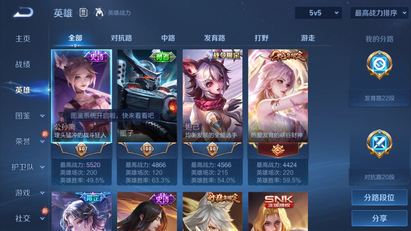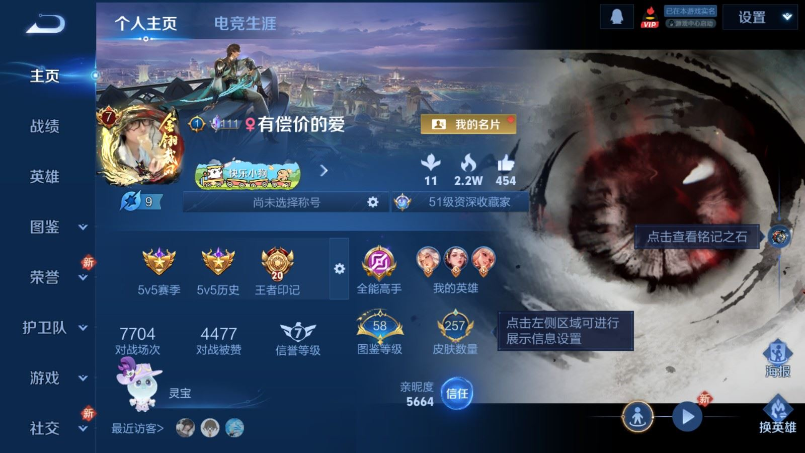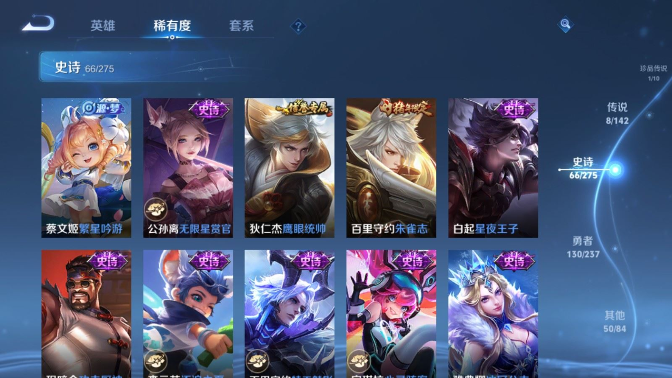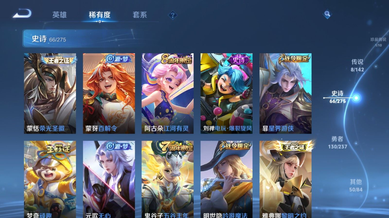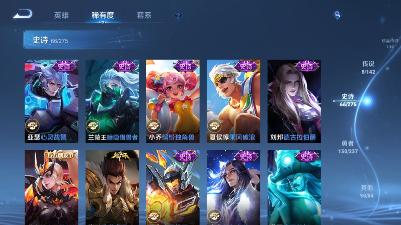 贵族等级:v7皮肤数:259传说品质8 荣耀典藏1 生肖限定3 无双1 珍品传说1 英雄数:128