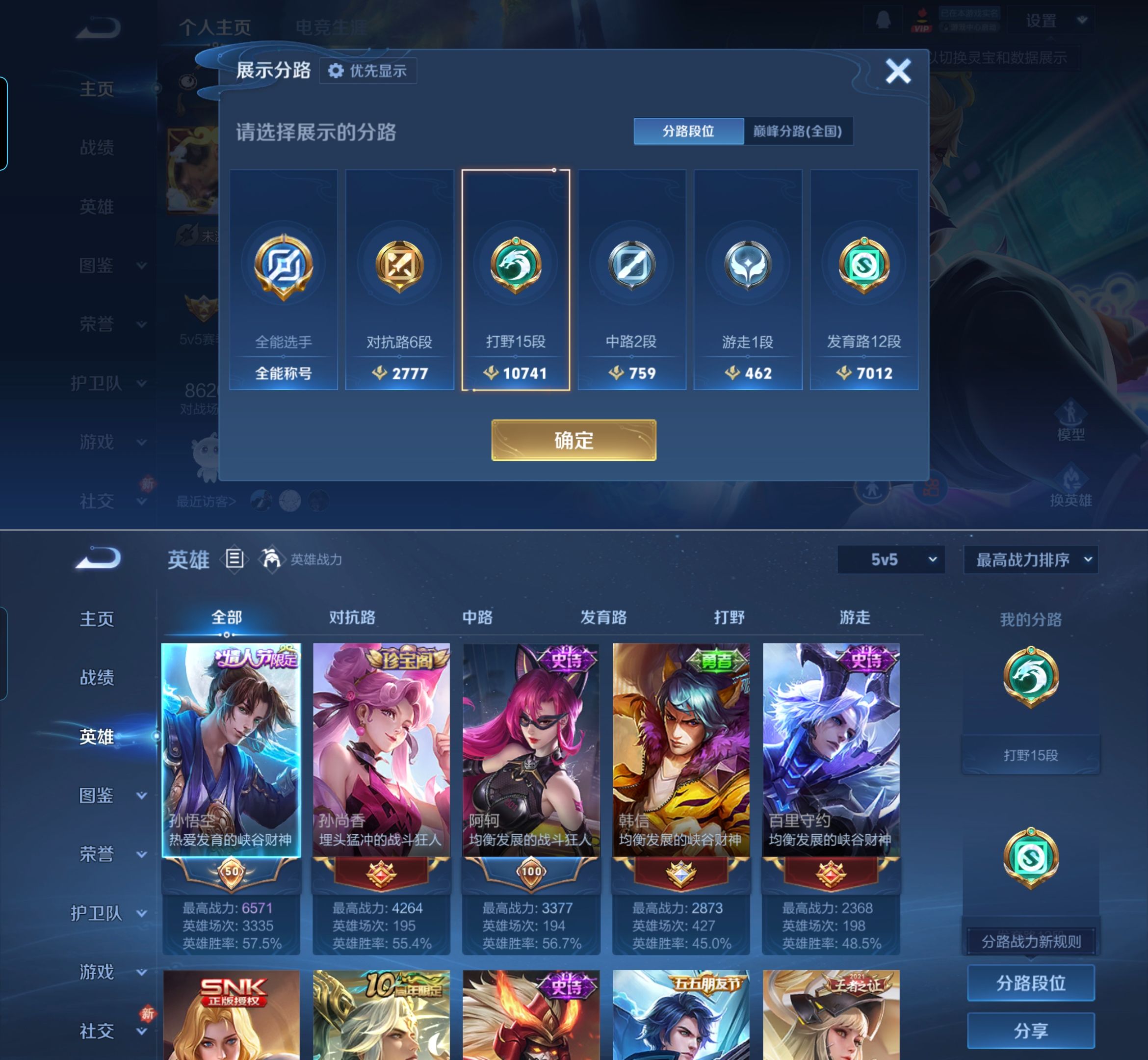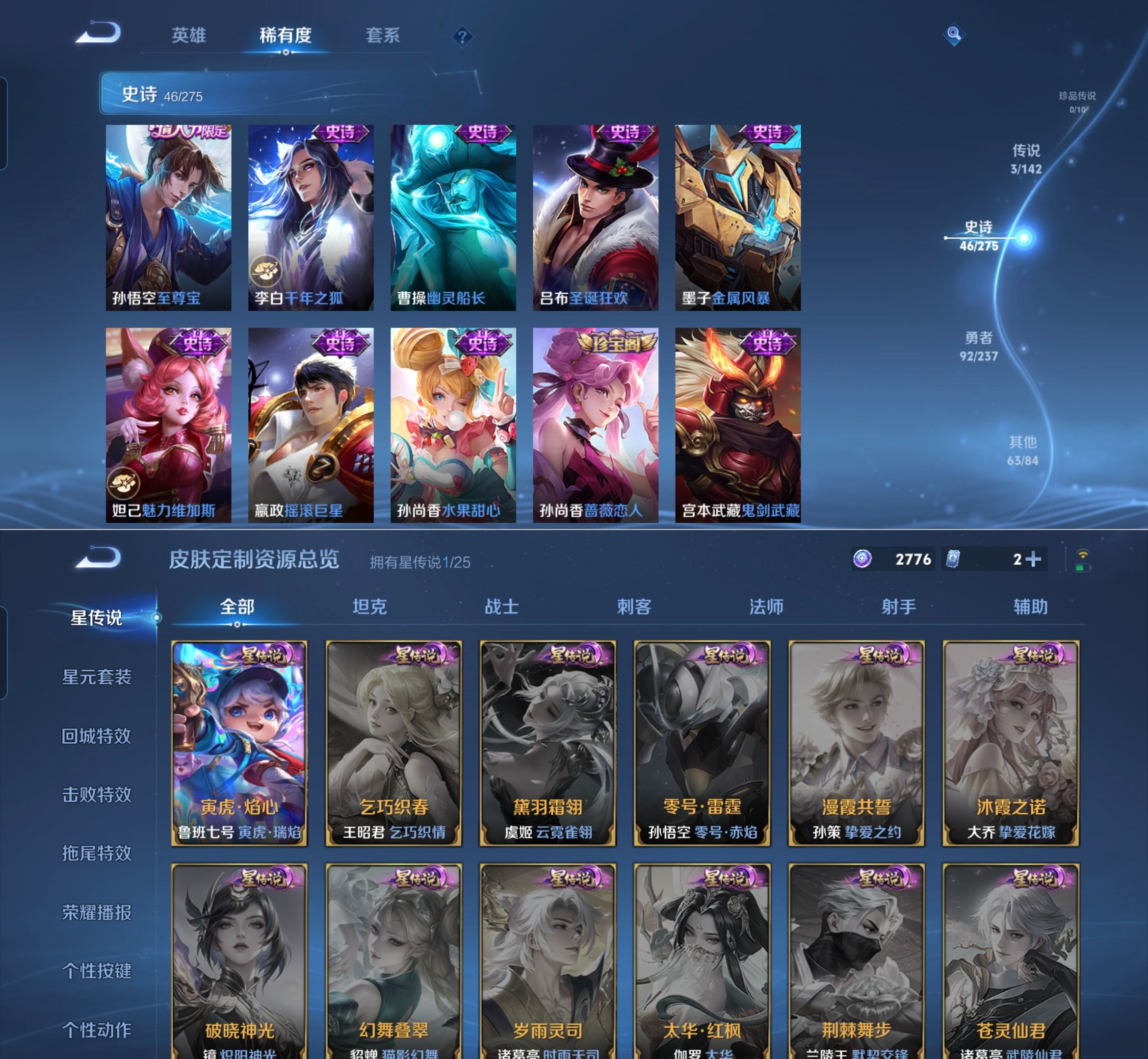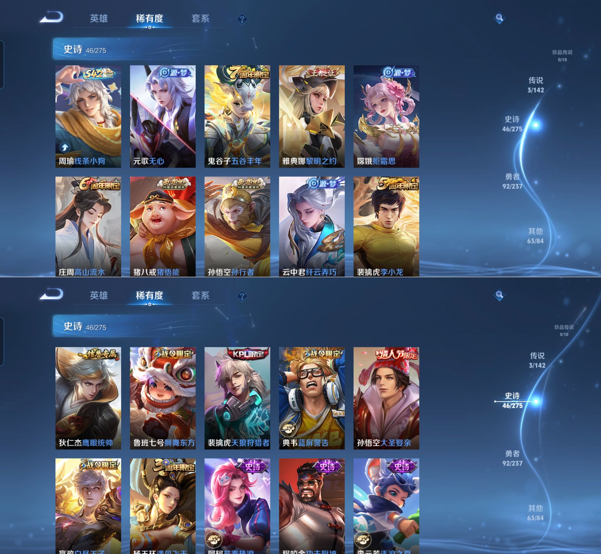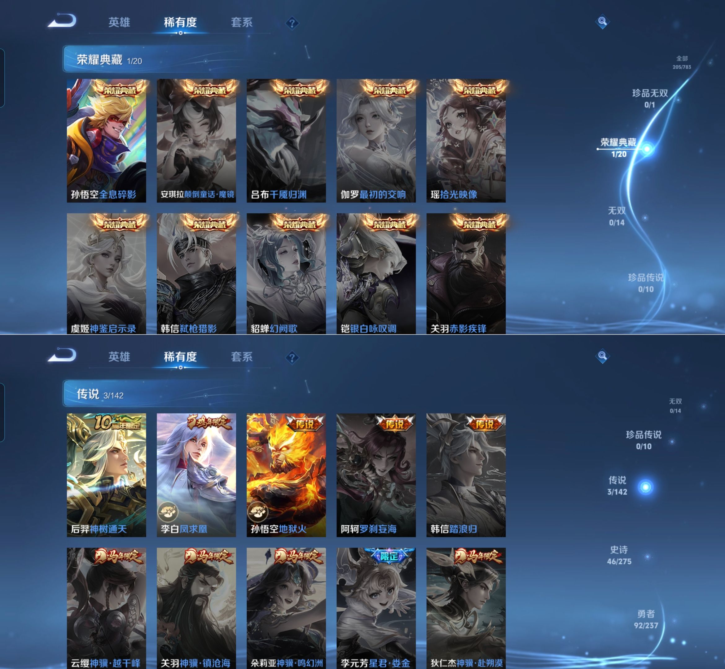 贵族等级:v7皮肤数:205传说品质3 情人节限定2 荣耀典藏1 生肖限定1 英雄数:125