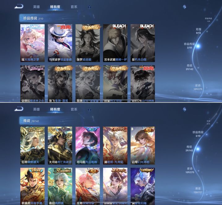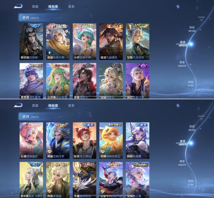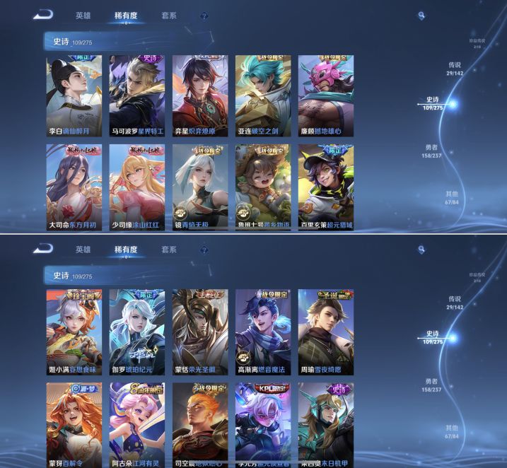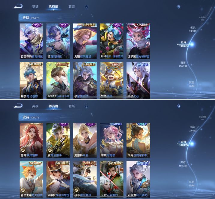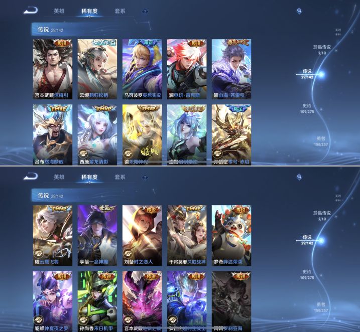 传说品质_后羿_神树通天传说品质_澜_电玩·雷克斯传说品质_澜_逐花归海传说品质_澜_愿照·九州拓传说品质_孙悟空_零号·赤焰传说品质_吕布_怒海麟威传说品质_干将莫邪_久胜战神传说品质_宫本武藏_地狱之眼传说品质_宫本武藏_惊梅引传说品质_西施_游龙清影传说品质_镜_炽阳神光传说品质_貂蝉_仲夏夜之梦传说品质_李信_一念神魔传说品质_孙尚香_末日机甲传说品质_孙尚香_乘龙·问璇玑传说品质_庄周_牧神诗旅传说品质_梦奇_胖达荣荣传说品质_司马懿_九山相柳传说品质_桑启_鸣野蒿传说品质_刘备_时之恋人传说品质_马可波罗_妄想实况传说品质_云缨_鹤归松栖传说品质_云缨_幻光神枪传说品质_大司命_死亡执政官传说品质_曜_云鹰飞将传说品质_曜_山海·苍雷引传说品质_狄仁杰_超时空战士传说品质_虞姬_启明星使传说品质_裴擒虎_祥瑞亨通